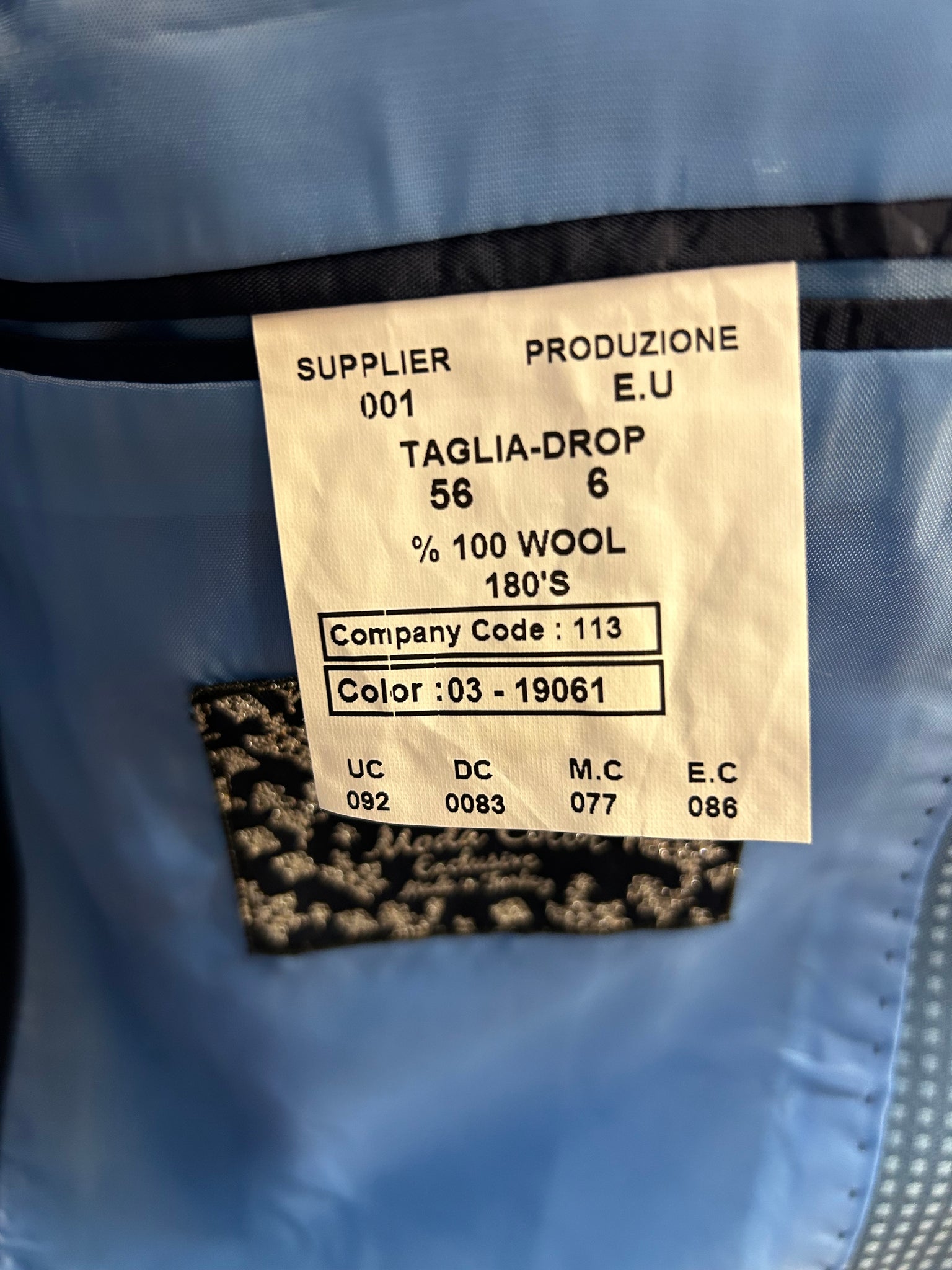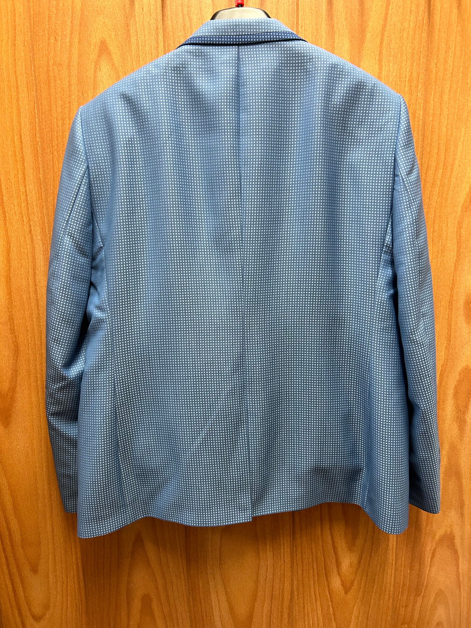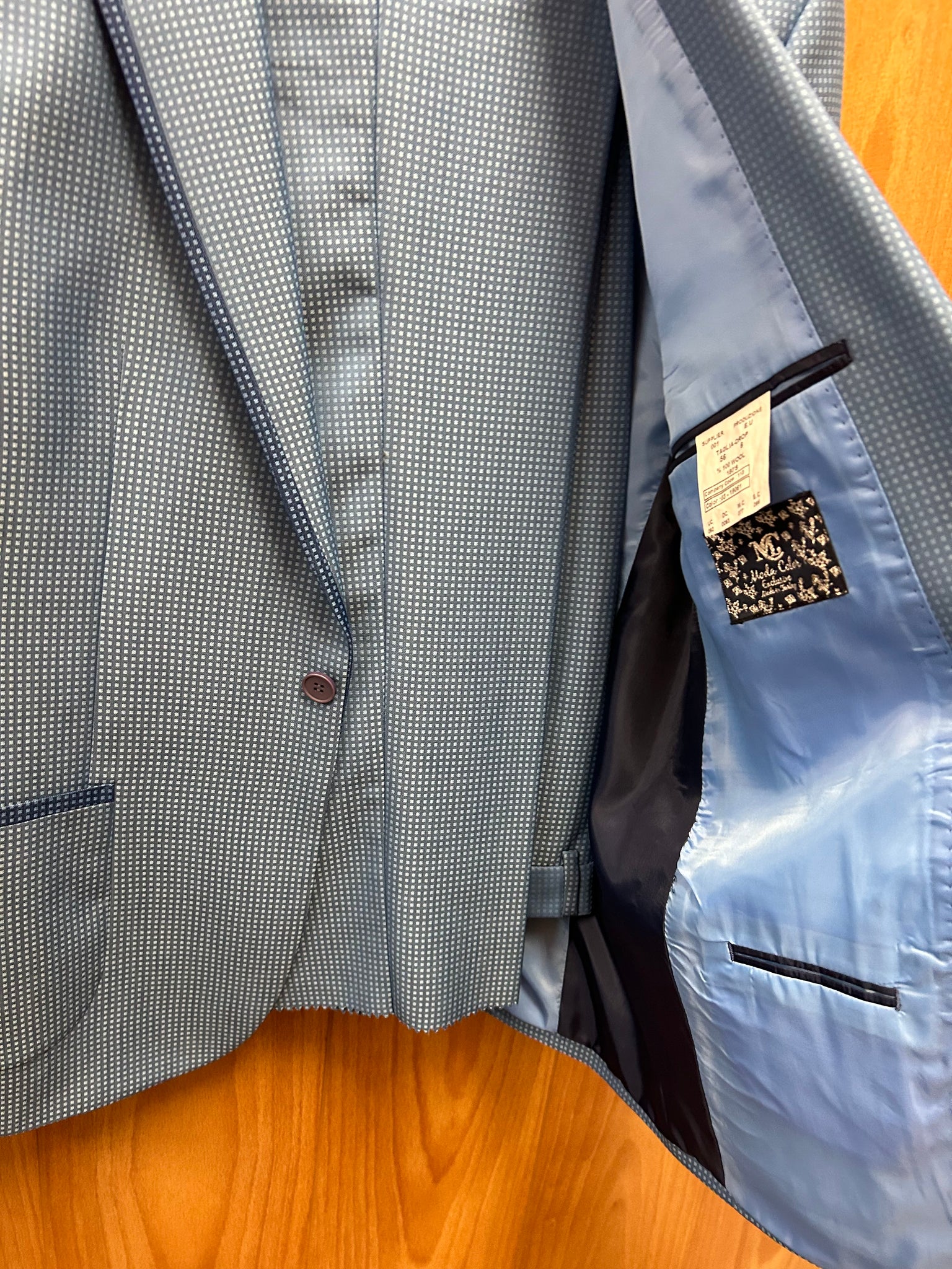 Introducing Moda Color Exclusive Light Blue Houndstooth 1-Button 100% Wool 2-Piece Turkish Suit. Crafted with expert precision and attention to detail, this made in Turkey 100% wool slim fit suit features a stylish light blue houndstooth pattern, complemented by dark blue contrast trimming, and patch pockets. The notch lapel and center vent add a touch of sophistication, while the matching slim fit pants ensure a sleek and modern look. Upgrade your wardrobe with this timeless collection.