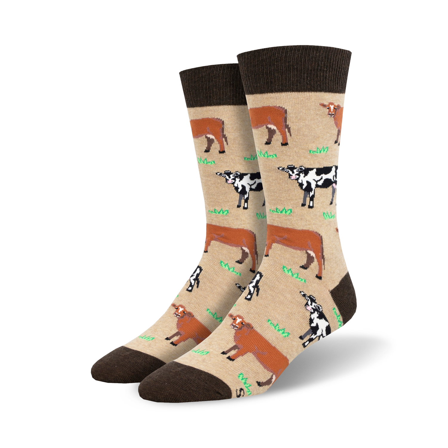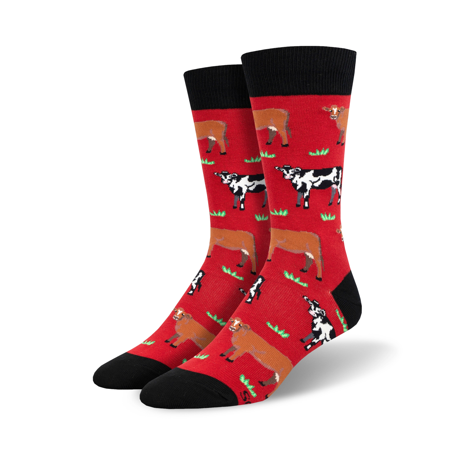 Mooove Over with these fun and sassy Cow socks! These crew length socks are splashed with brown and white cows standing among green grass. Perfect for any cow lover, these socks are so cute and so comfy you'll want to wear them every day. Available in sizes for men you're sure to make a statement with these socks. Fun fact: Did you know that cows are social animals and live in herds? Just like the herd of cows on your feet!