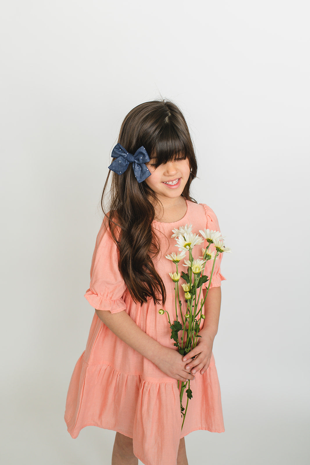 • Load image into Gallery viewer, Navy Dot Petite Hair Bow