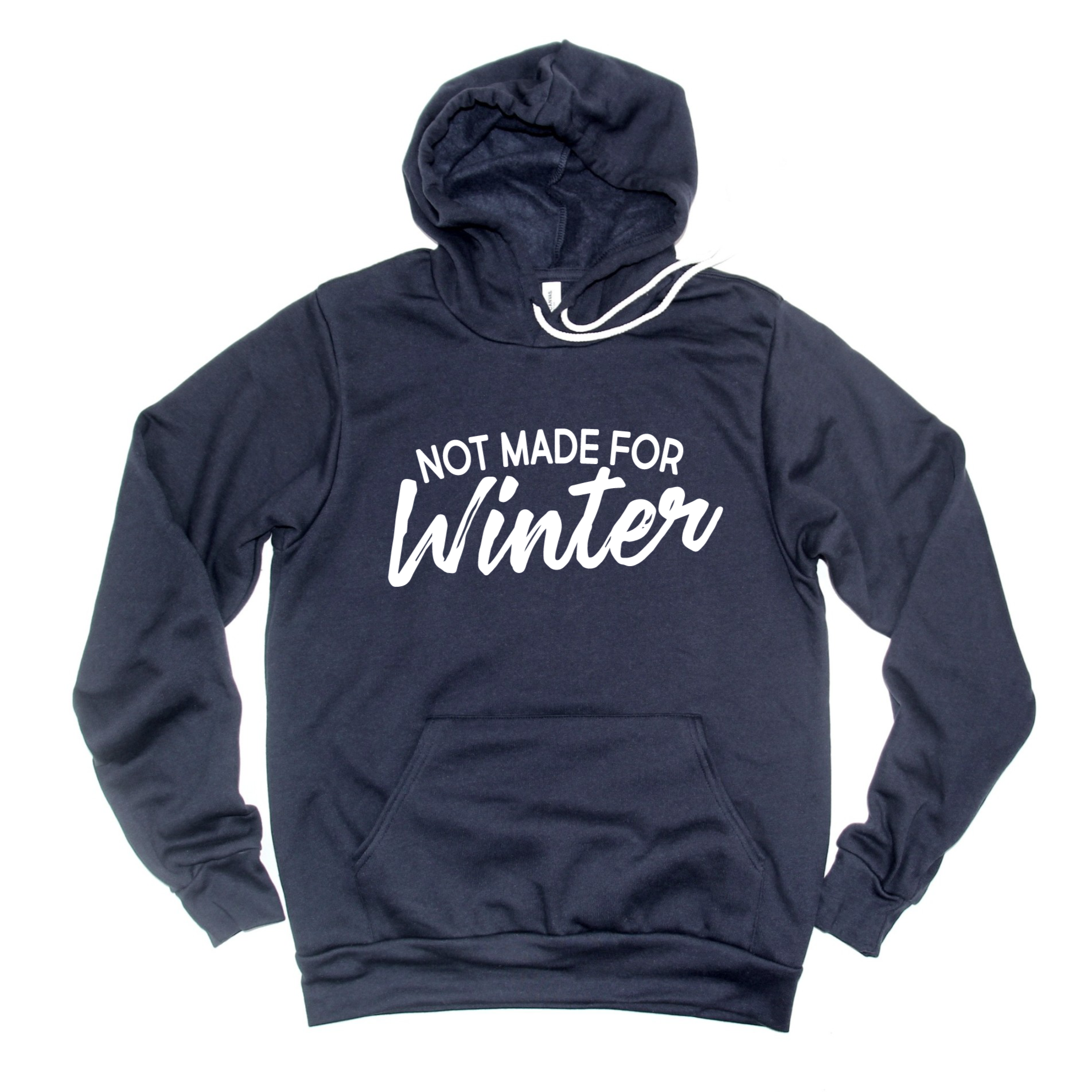 Stay cozy this winter with this navy sponge fleece sweatshirt with the phrase "Not Made for Winter" in white.