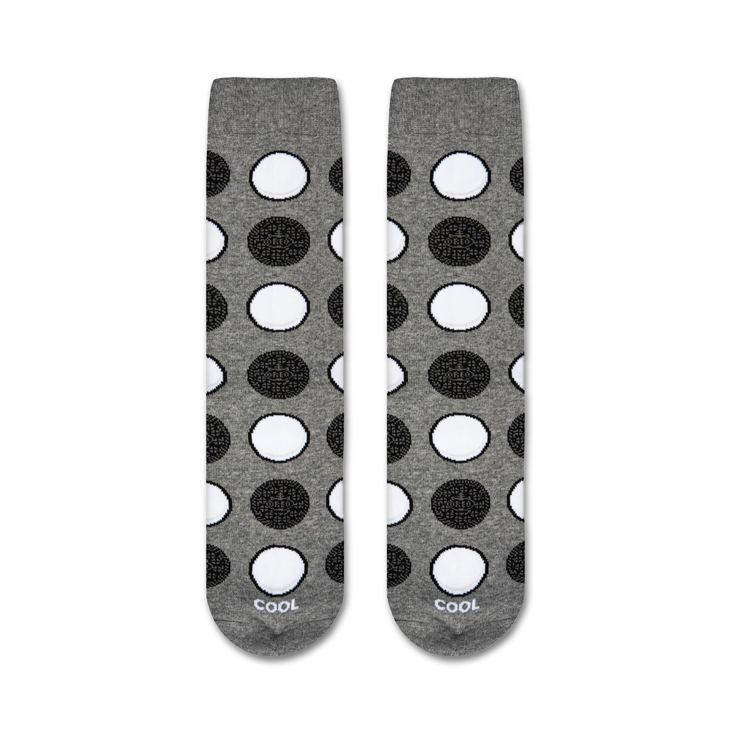 Feast your feet on our Oreo Cookies Heather Socks! These socks are a cookie craving come true, with a grayish base and a fun pattern of white circles with black centers. Whether you're rocking them with a casual outfit or your finest dessert-themed attire, these Oreo-inspired socks will make you the life of the party without adding extra calories! (Disclaimer: Do not eat these socks.)