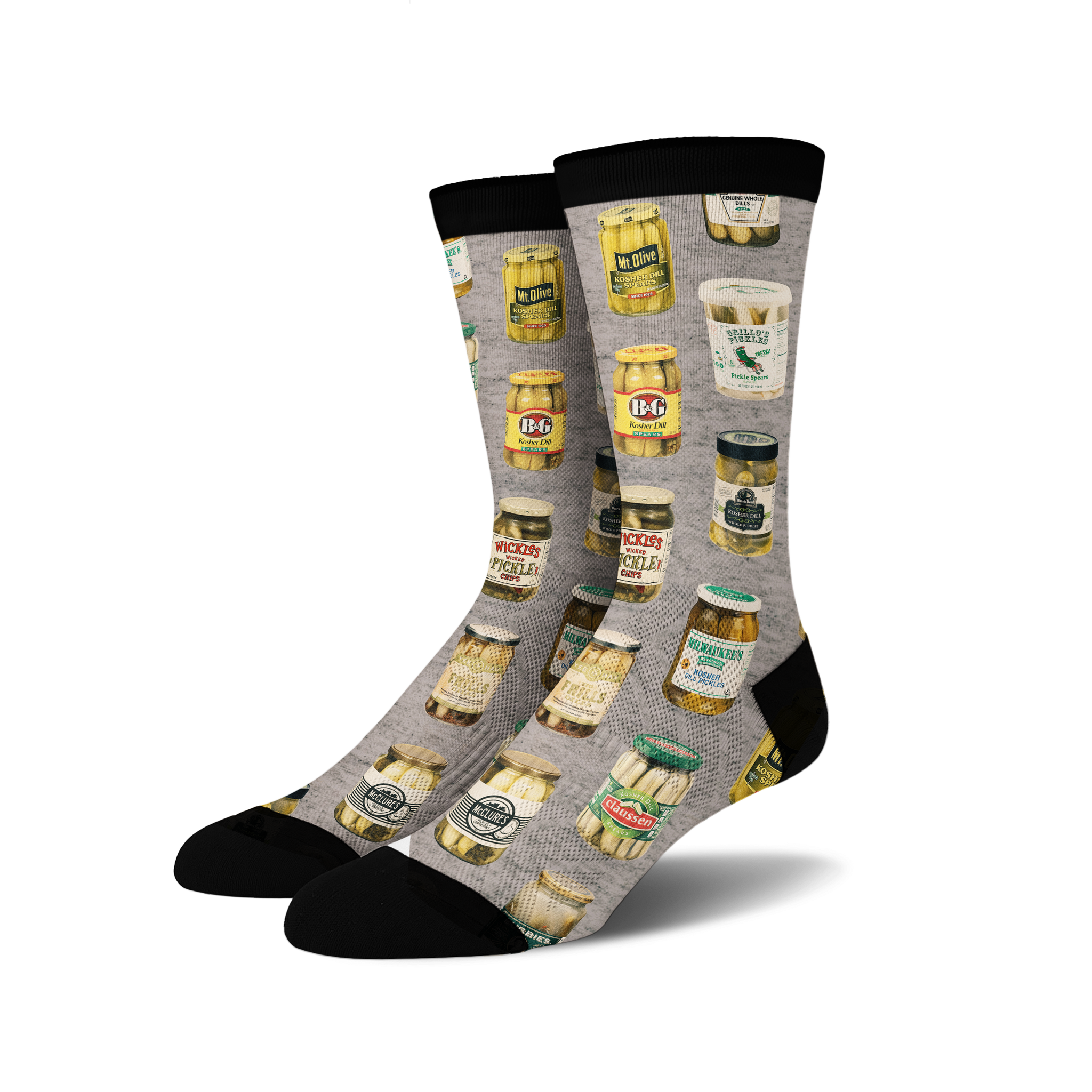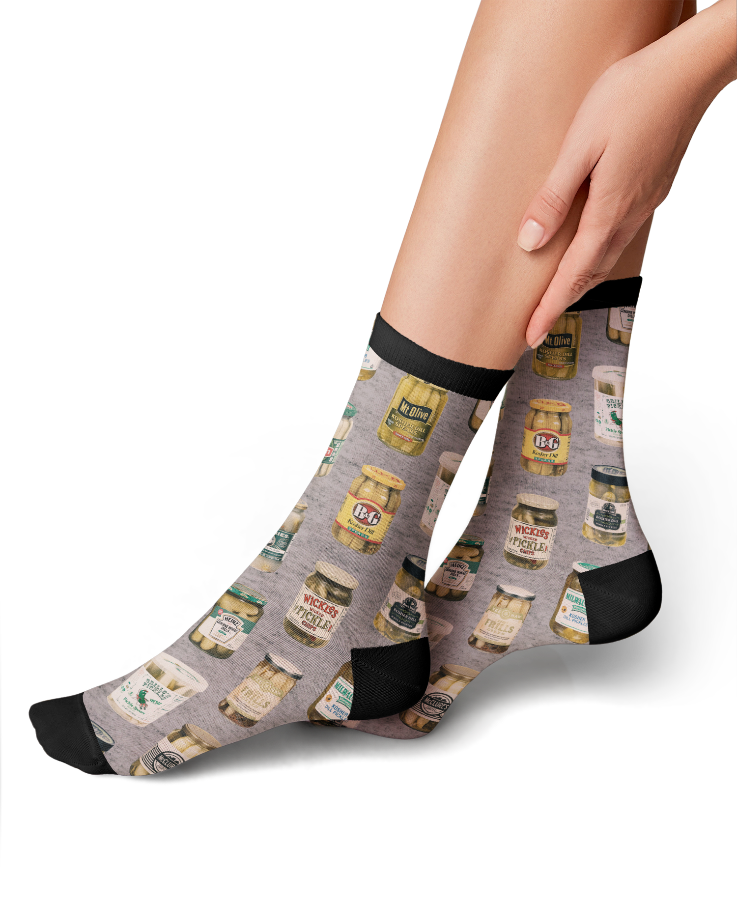 Grab a jar of pickles and slide into these Pickle Jar Socks! With a unique pattern of pickle jars, these socks are sure to spark a conversation. Whether you're chowing down a jar of pickles or showing off your feet, you'll pickle' everyone's fancy.