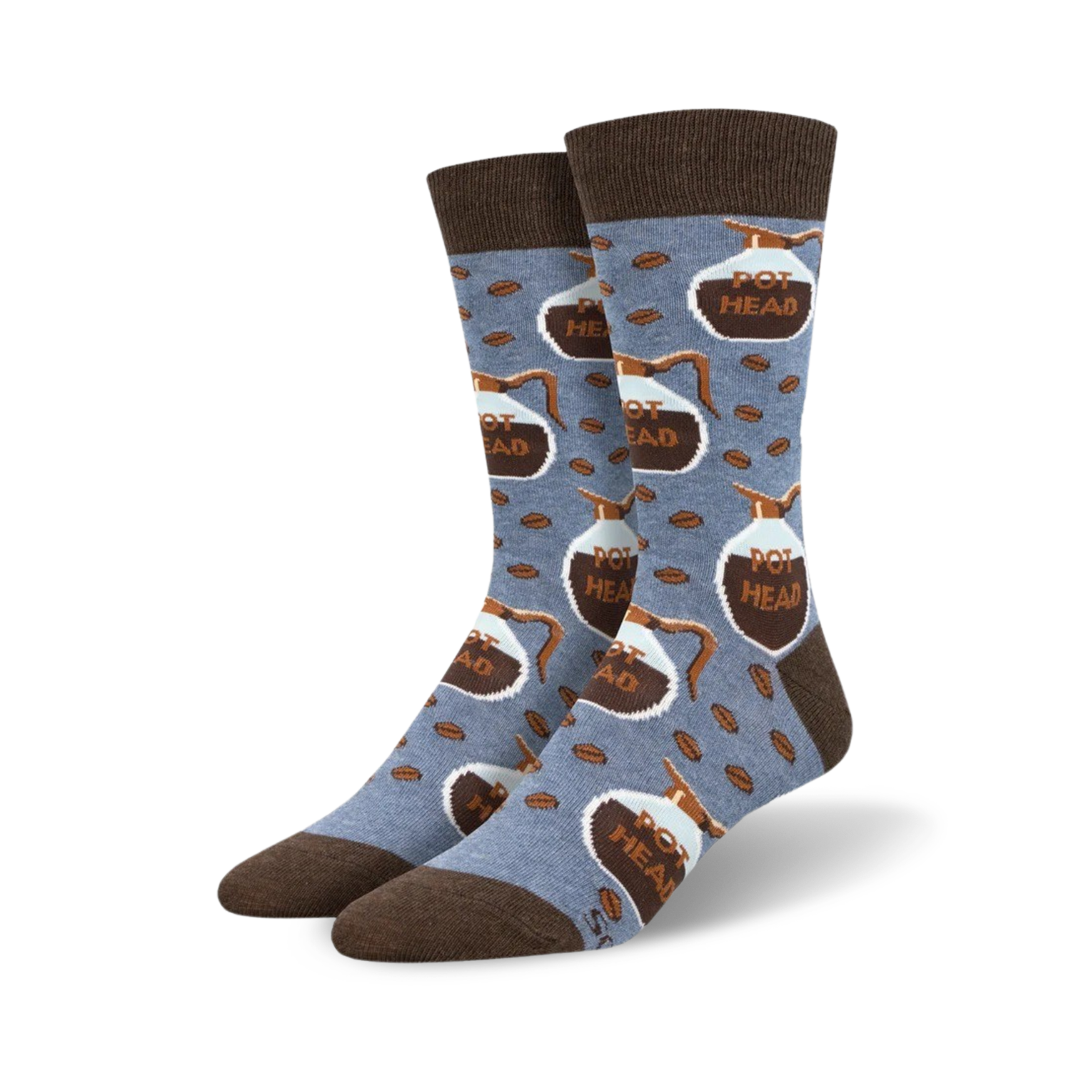Calling all Coffee Aficionados! Knock your morning cuppa joe out of the park with these snazzy "Pot Head" socks. Featuring a perky pattern of coffee pots and beans on a cool blue background, these socks will make you the life of the coffee klatch. And with the cheeky "Pot Head" slogan, you'll feel like a true connoisseur as you sip your morning brew. Brew-tiful!