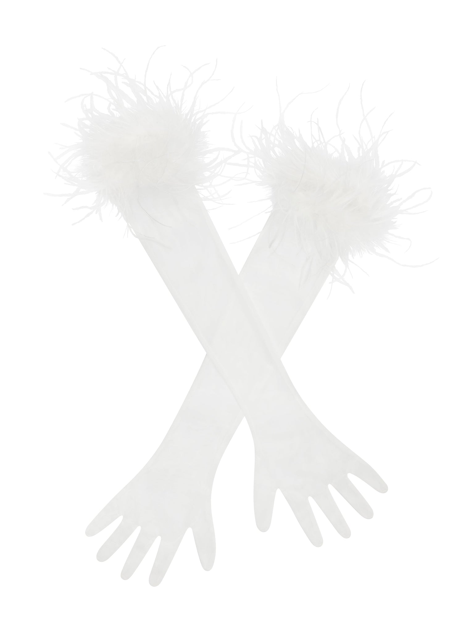 Elevate your ensemble with our Quinn Feather Trimmed Opera-Length Gloves, crafted from soft stretch mesh. These gloves gracefully extend to enhance any outfit, offering a touch of refined elegance. Perfect for formal occasions, weddings, or a chic night out, the semi-sheer fabric adds a subtle allure. Embrace timeless sophistication with these gloves, the ideal accessory for making a statement with grace and style. Perfectly matches with our Quinci dress. To find your glove size, go to our size chart: https://misscircle.com/pages/size-guide