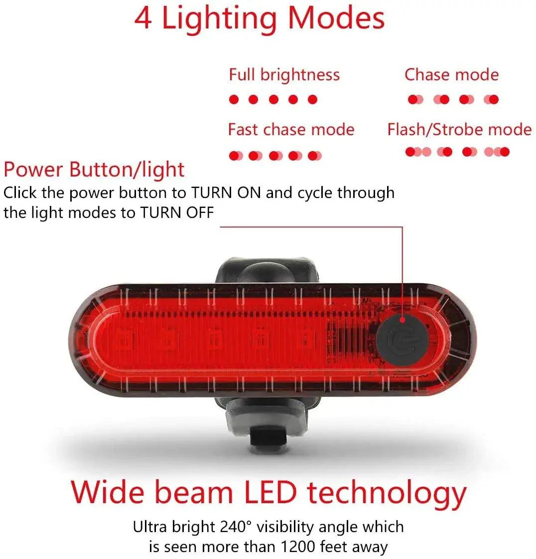 Illuminate your rides and enhance your safety with our Rear Bike Tail Light! Designed for cycling enthusiasts, this ultra-bright taillight ensures you're visible to motorists and pedestrians alike, making your biking experience not just safer but more enjoyable. Say goodbye to worries during your evening rides and hello to confidence, knowing you're well-lit and protected!