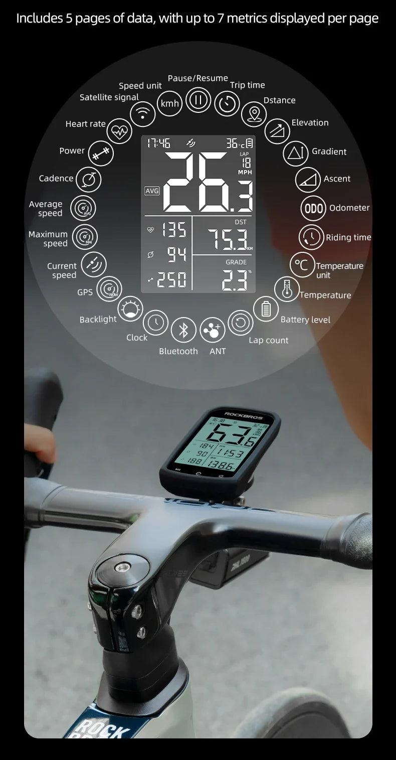 - 📊 25 Cycling Data Metrics: Customizable display with up to 7 metrics per page, providing comprehensive insights into your performance.
