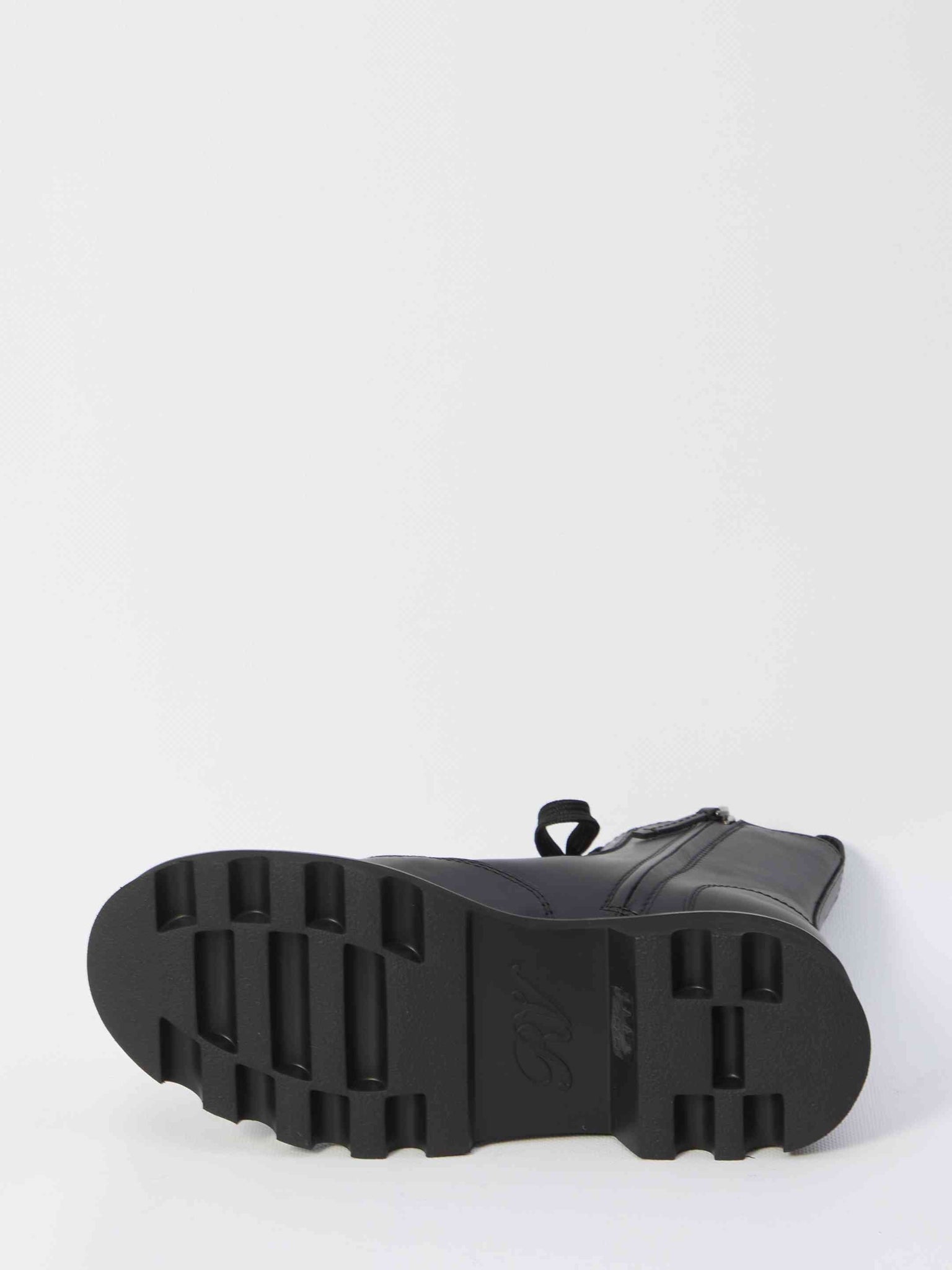 Black leather boots. Featuring front lacing, side strap with iconic buckle and RV signature, side zip closure, rear pull tab. Dustbag included. Any leather imperfections are not to be considered manufacturing defects, but a characteristic of the material.