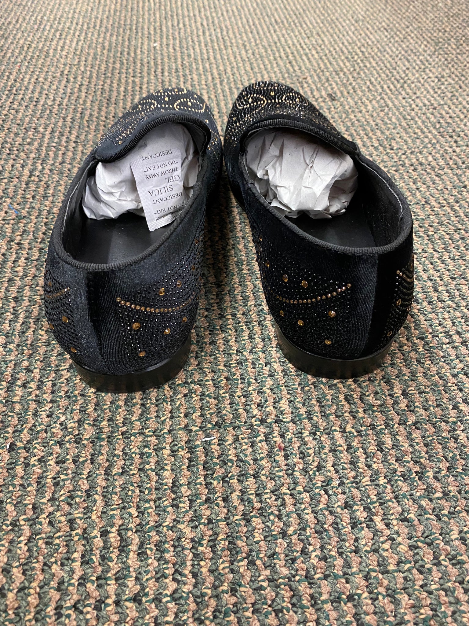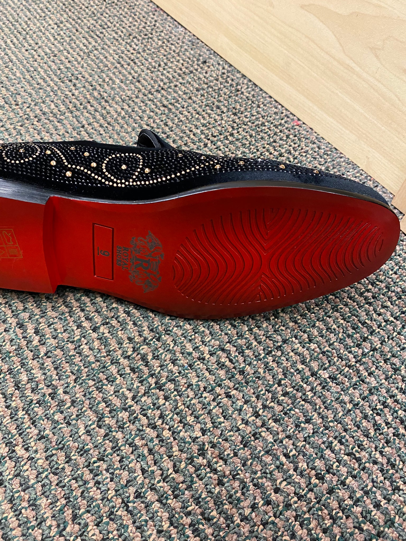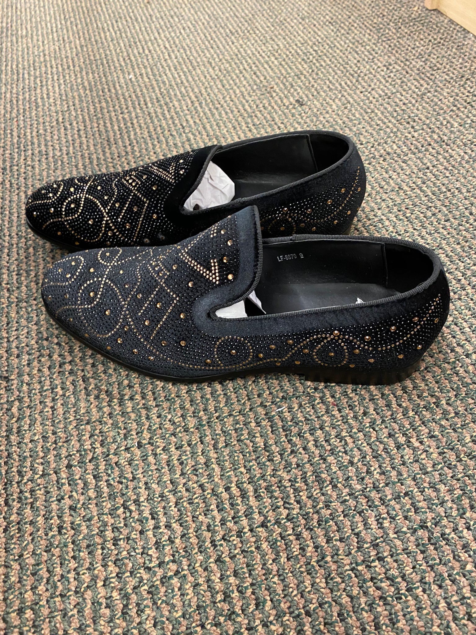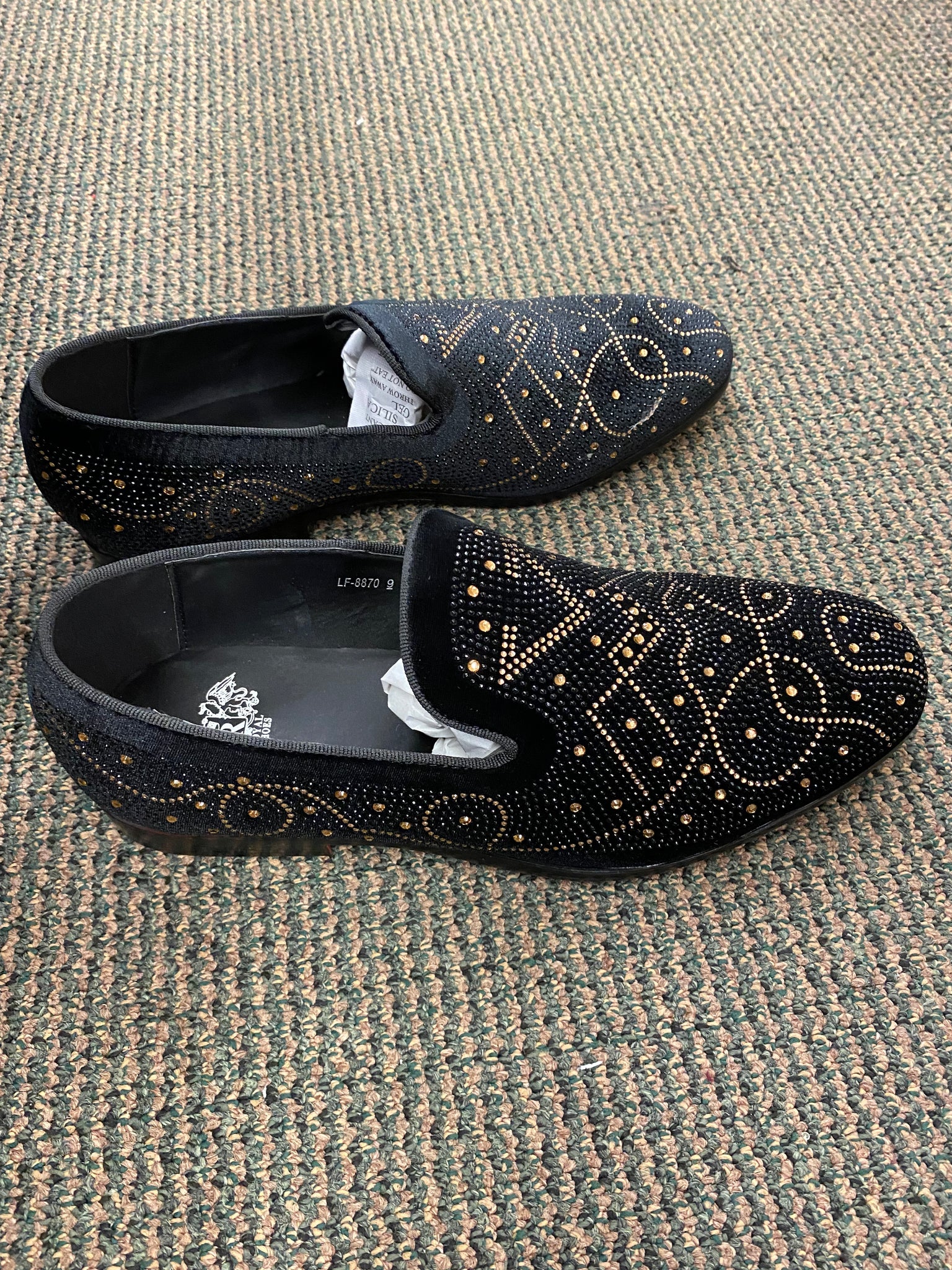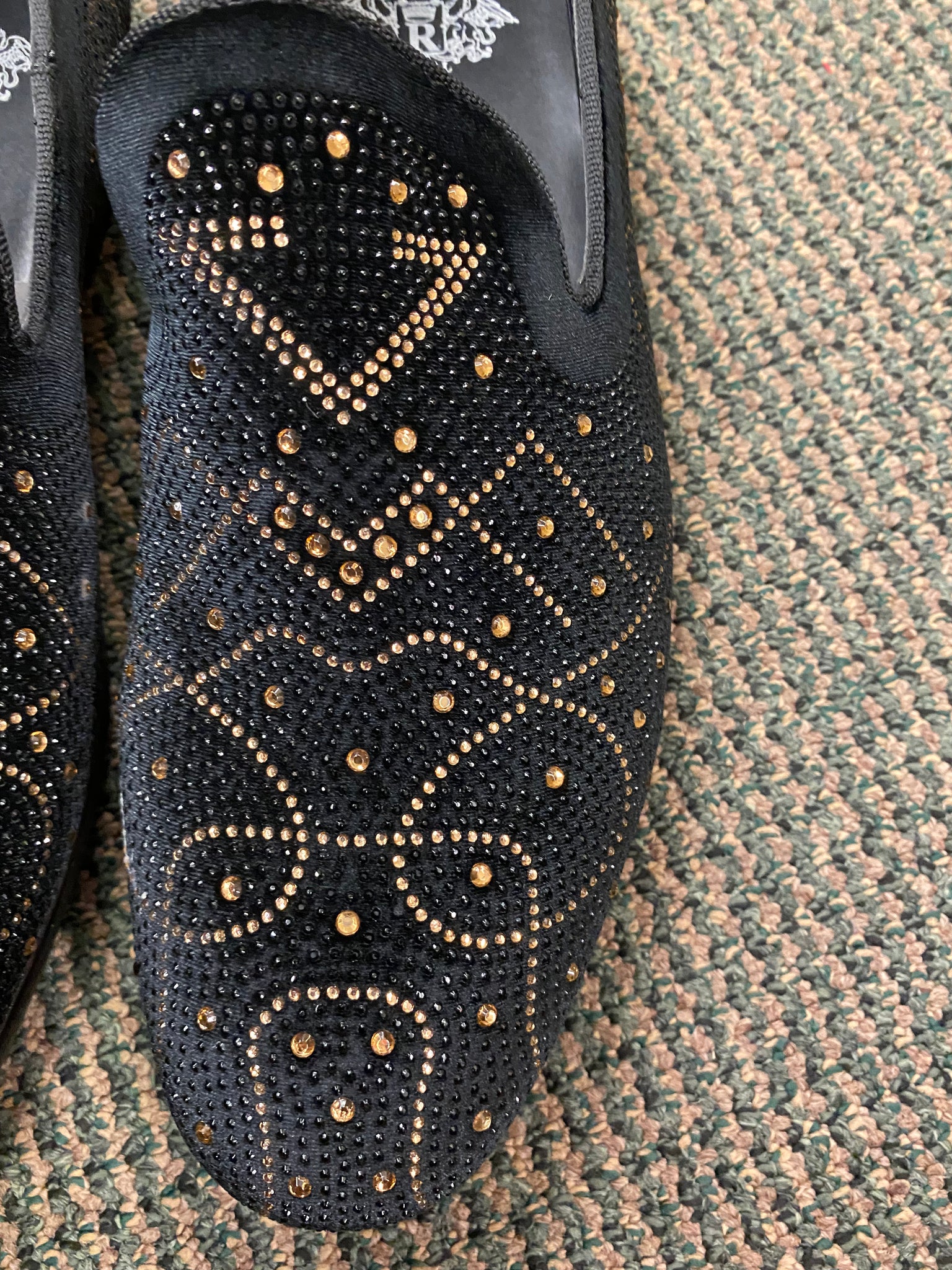 Royal Shoes Black/Gold Rhinestones Smoking Slip-on Red Bottom Men’s Dress Shoes LF-8870 Sizes 8-13