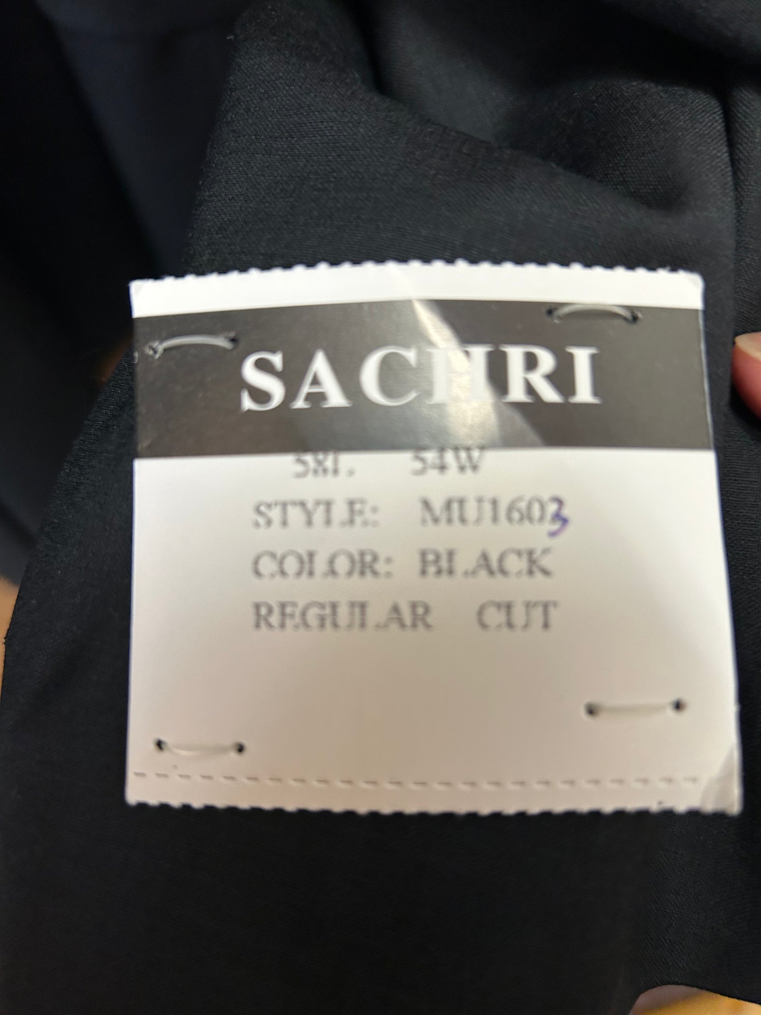 This black Sachri blazer is expertly crafted from 100% wool with a Super 150's thread count. It features a peak lapel, double breasted design, side vents, and a fully lined interior. The regular cut makes for a classic and sophisticated look.