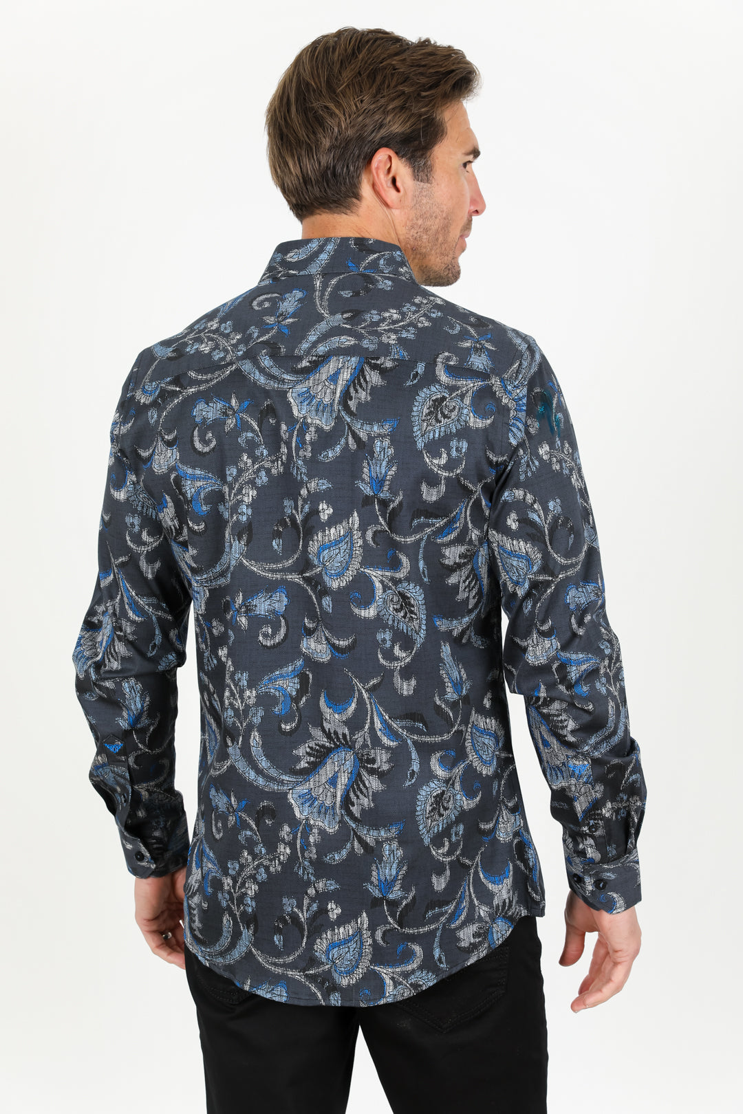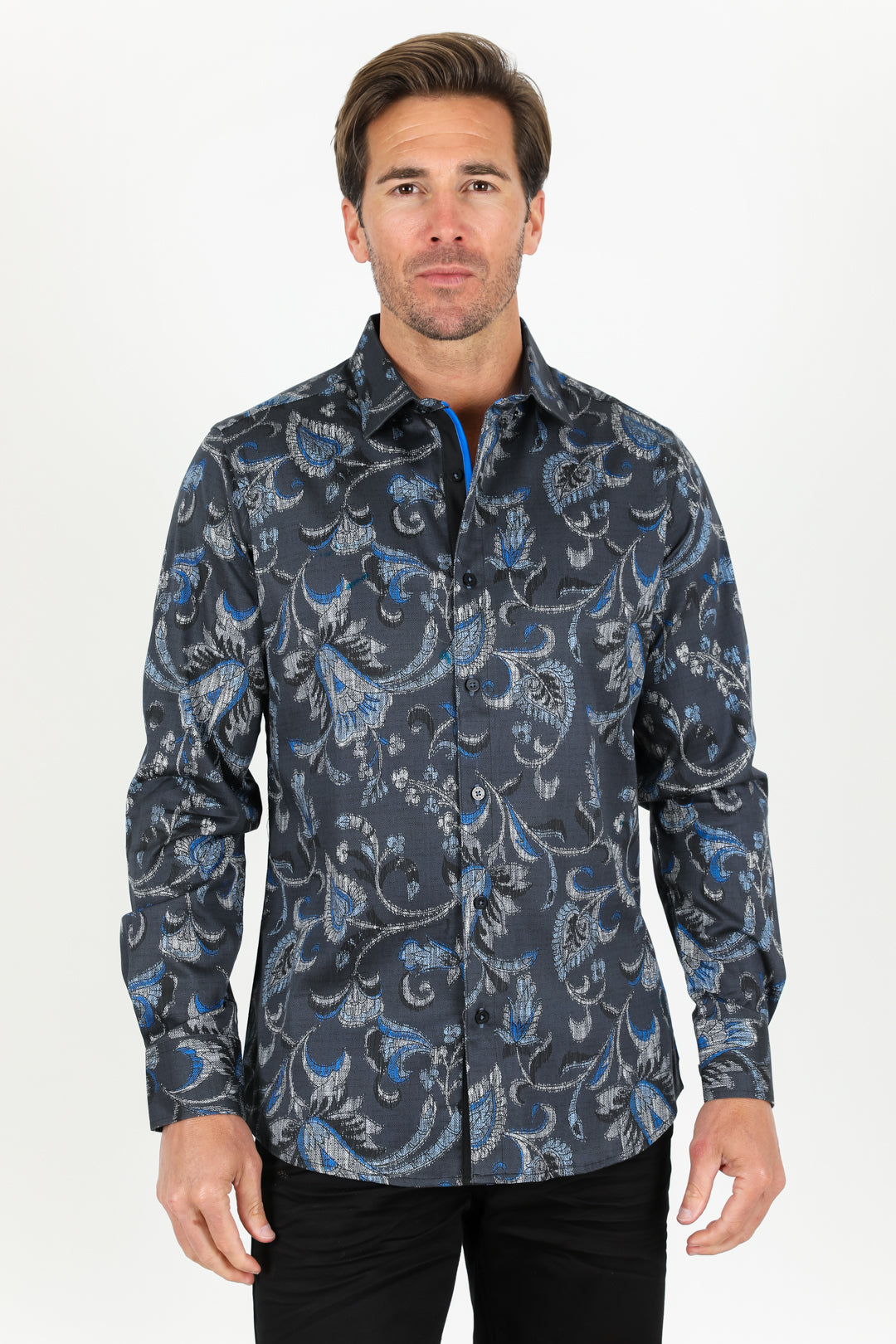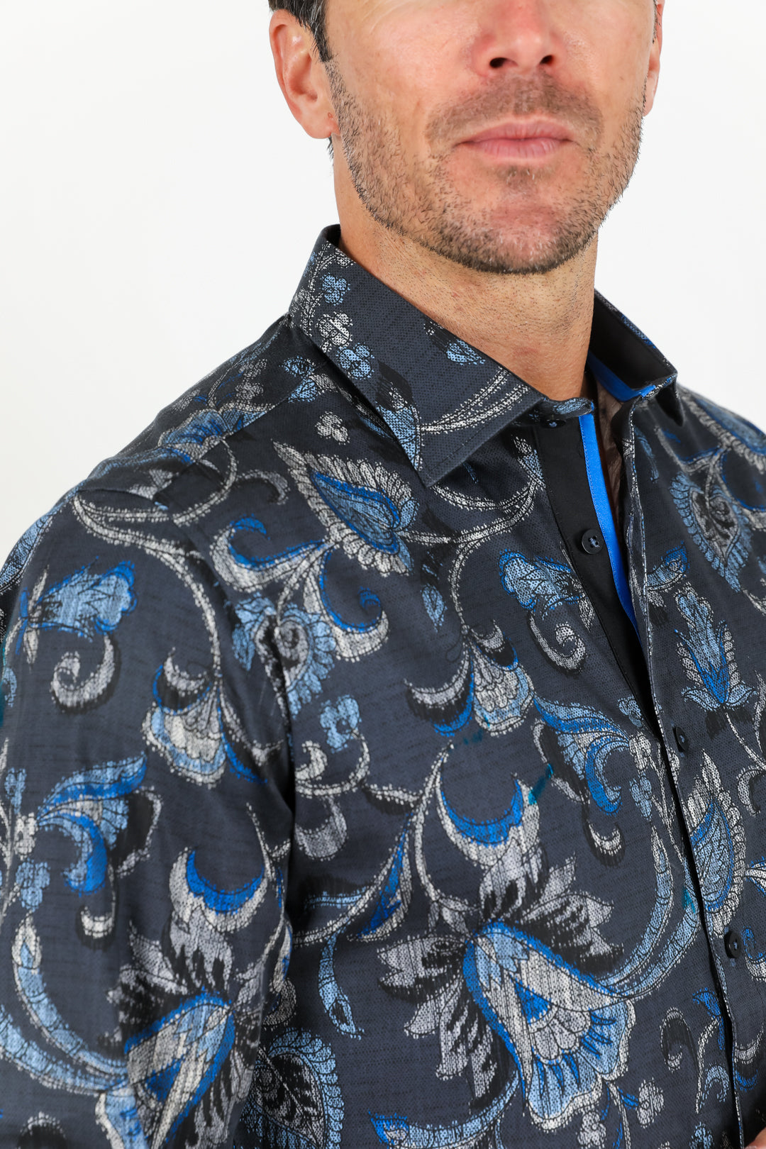 Description: Elevate your wardrobe with our Satin Cotton/Spandex Long Sleeve Shirt – a blend of sophistication and style. These shirts feature captivating prints, and when you roll up the sleeves, a solid color detail adds a touch of flair.