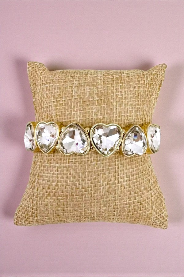 This elastic bracelet features radiant heart-shaped zircon stones set in polished alloy metal for an eye-catching, elegant look. The stretchy design makes it easy to slip on and comfortable to wear all day, while the clear zircon stones add just the right amount of shine. Perfect worn alone or stacked for extra glam—this bracelet effortlessly dresses up any outfit.