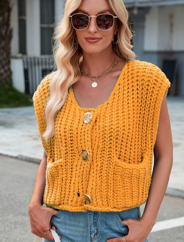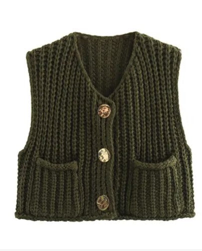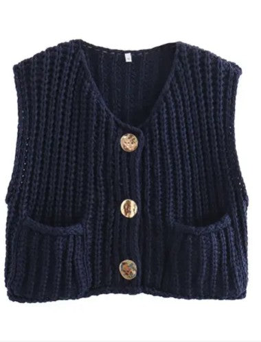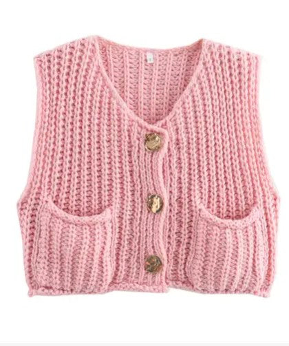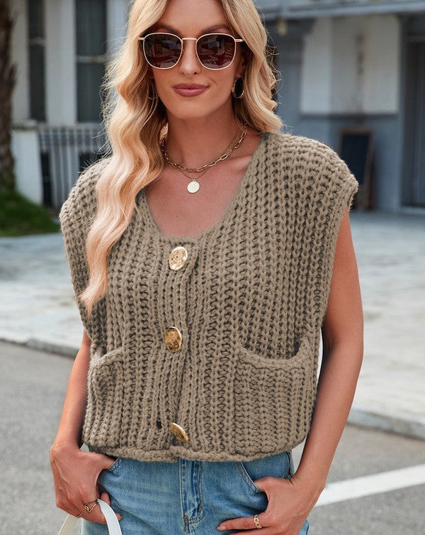 Sleeveless knit cardigan vest