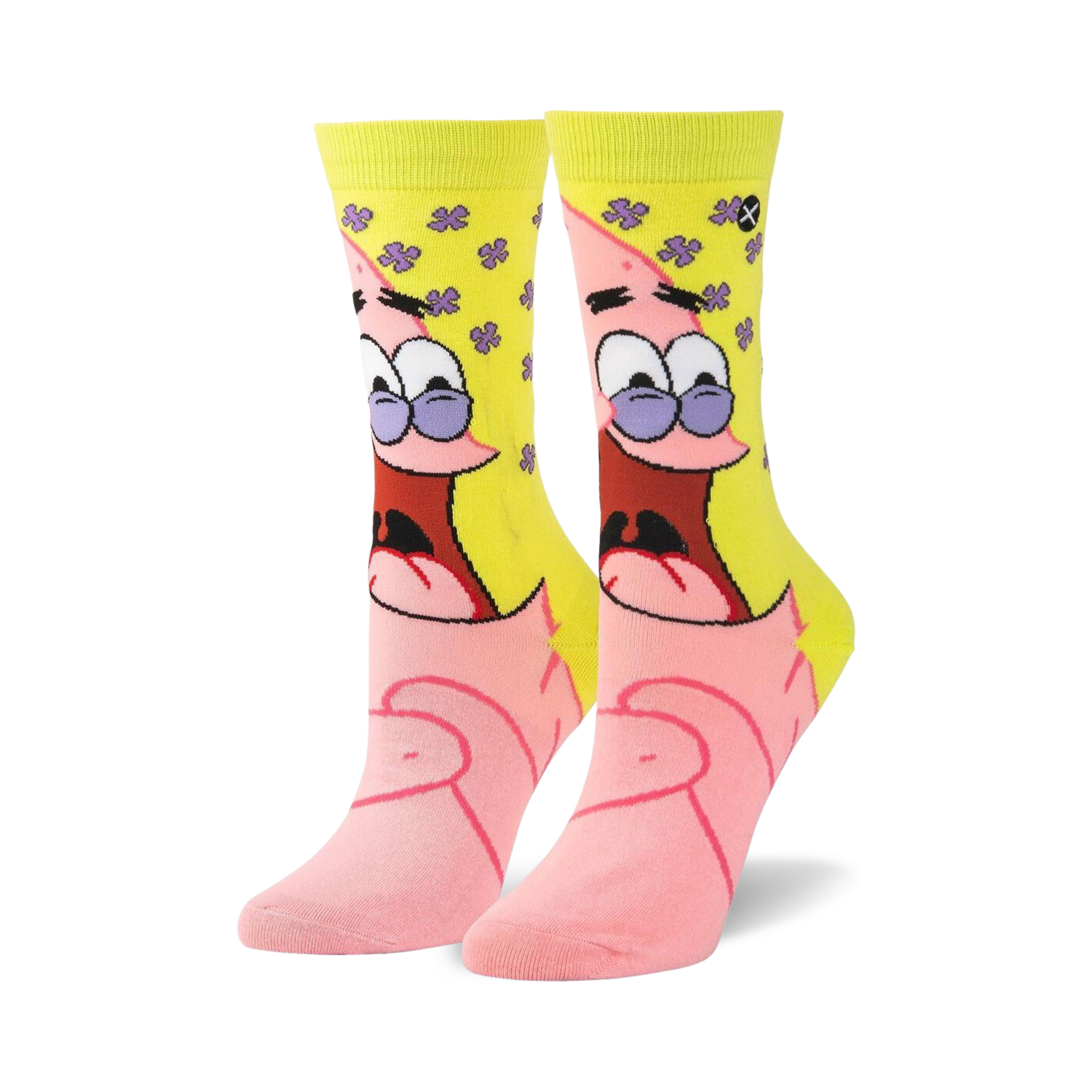 Dive into the world of Bikini Bottom and show off your love for SpongeBob SquarePants with these lively Spongebob Squarepants Big Patrick socks! When you slip on these bright yellow crew socks with their light purple toe and heel, you'll be sure to turn heads and bring a smile to everyone's face. Featuring a vibrant pattern of Patrick Star himself in all his pink and purple glory, these socks are an eye-catching way to add some fun and whimsy to your everyday wardrobe. So why wait? Put on a pair of Spongebob Squarepants Big Patrick socks today and let the cartoon come to life!
