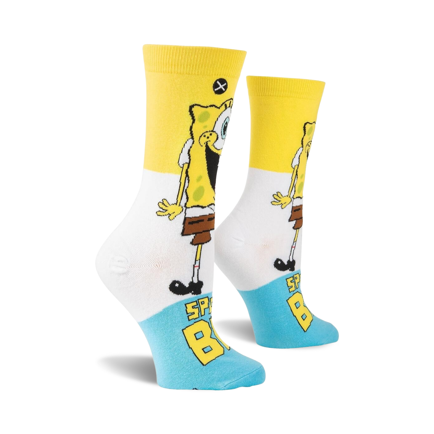 And now, a fashion statement that's about as absorbent and cheerful as SpongeBob himself! Say hello to your new favorite pair of socks: The Spongebob Squarepants Smilepants. These white and yellow crew socks feature the iconic sea sponge himself, grinning from ear to ear, with the words "Sponge" and "Bob" emblazoned on each sock. Put on a pair and let SpongeBob's relentless optimism brighten up your day wherever you go!