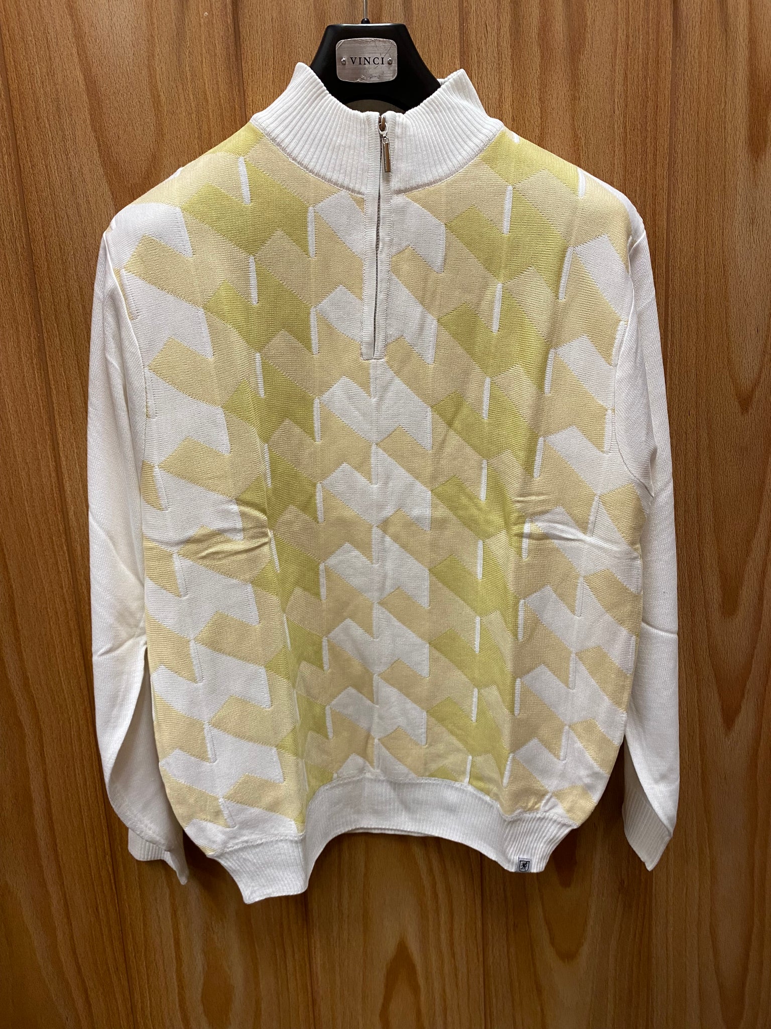 Stacy Adams 5104 Yellow/White Geometric Print Sweater | Quarter Zip