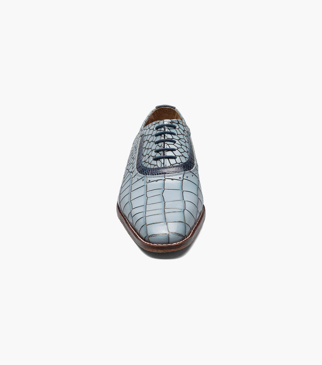 Take a walk on the wild side with the Stacy Adams Riccardi Plain Toe Oxford. Featuring a unique mix of croco and lizard print leather and a modern stacked heel, whether it’s worn with your best suit or favorite jeans, the Riccardi is designed to get noticed.
