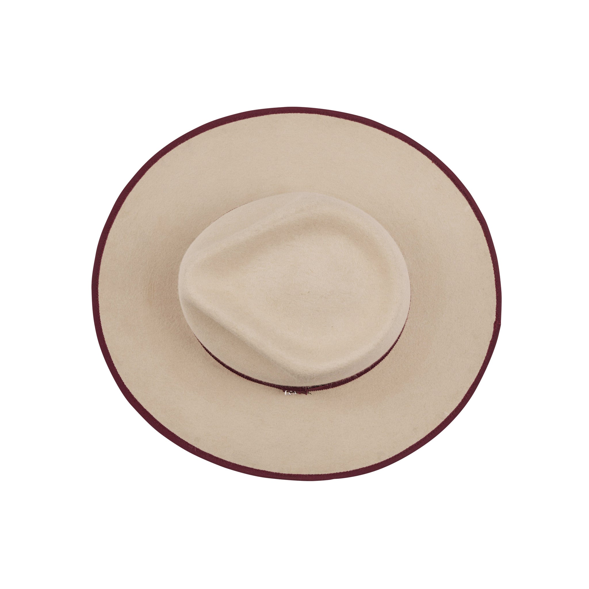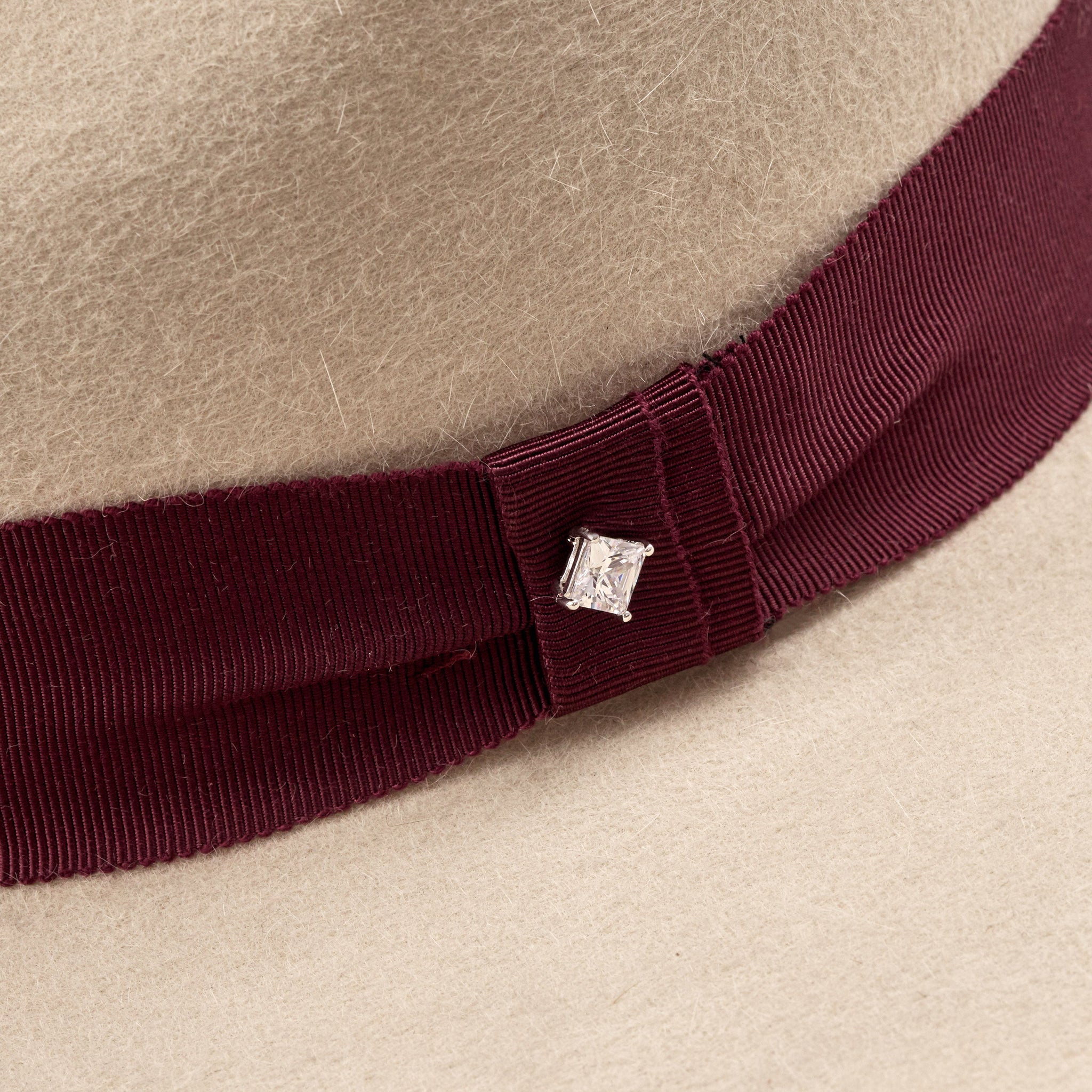 Unlike most fedoras that use rabbit fur-felt, the Stud is made from 100% American beaver. Not only does this make it a rare find, but it also ensures a very comfortable and stylish fit. The tall, telescopic crown is complemented by a wide, flat brim with burgundy edges. However, the stud accent in the middle of the band really steals the show, as it is like wearing an extra piece of stunning jewelry on your head!