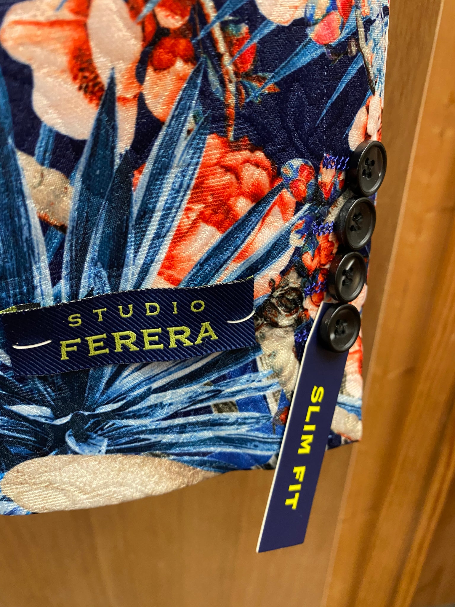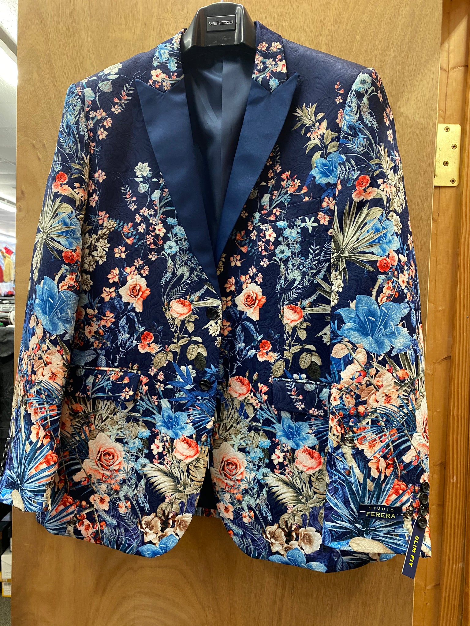 • Load image into Gallery viewer, Studio Ferera Navy Flower Print Blazer
