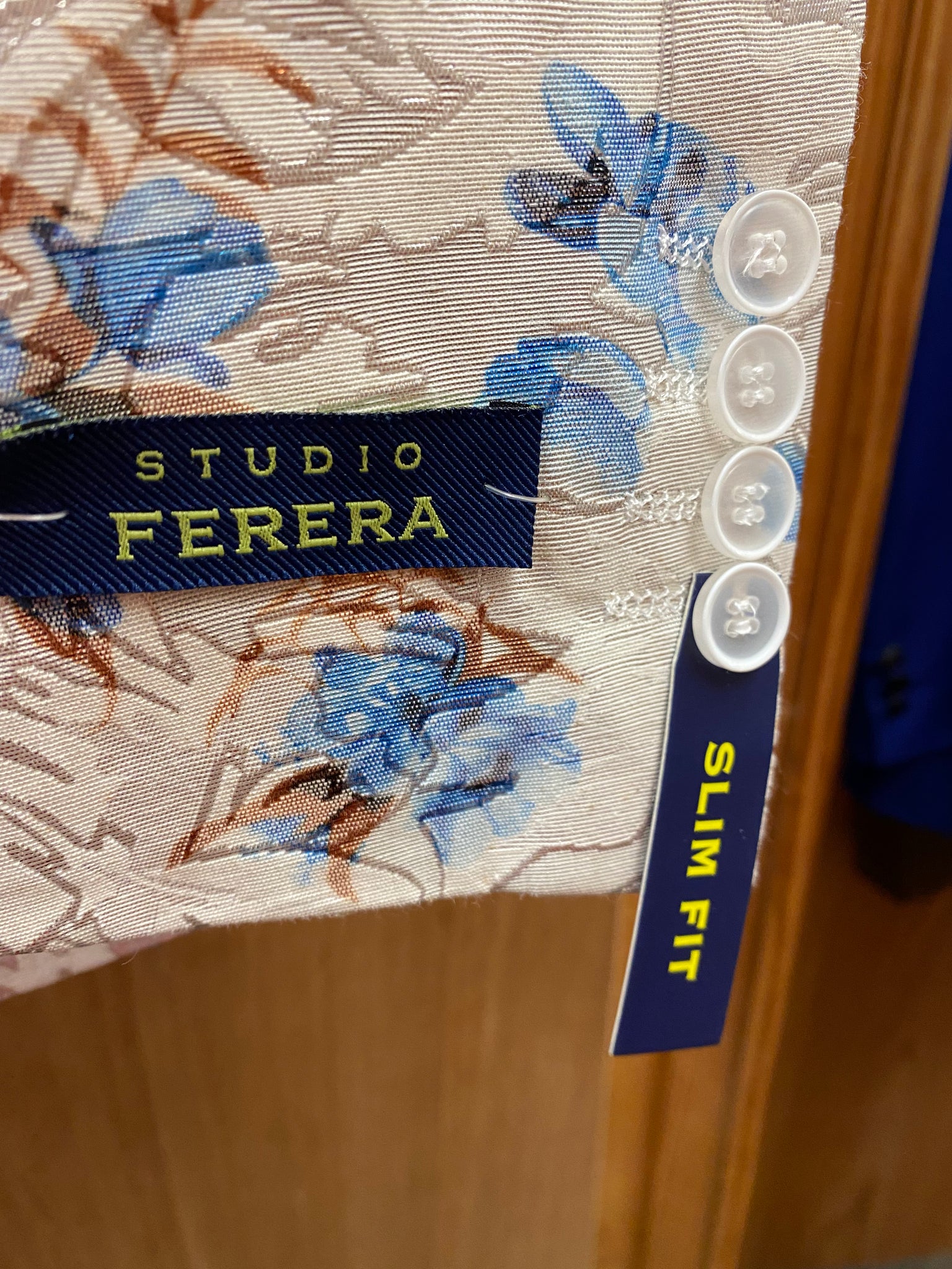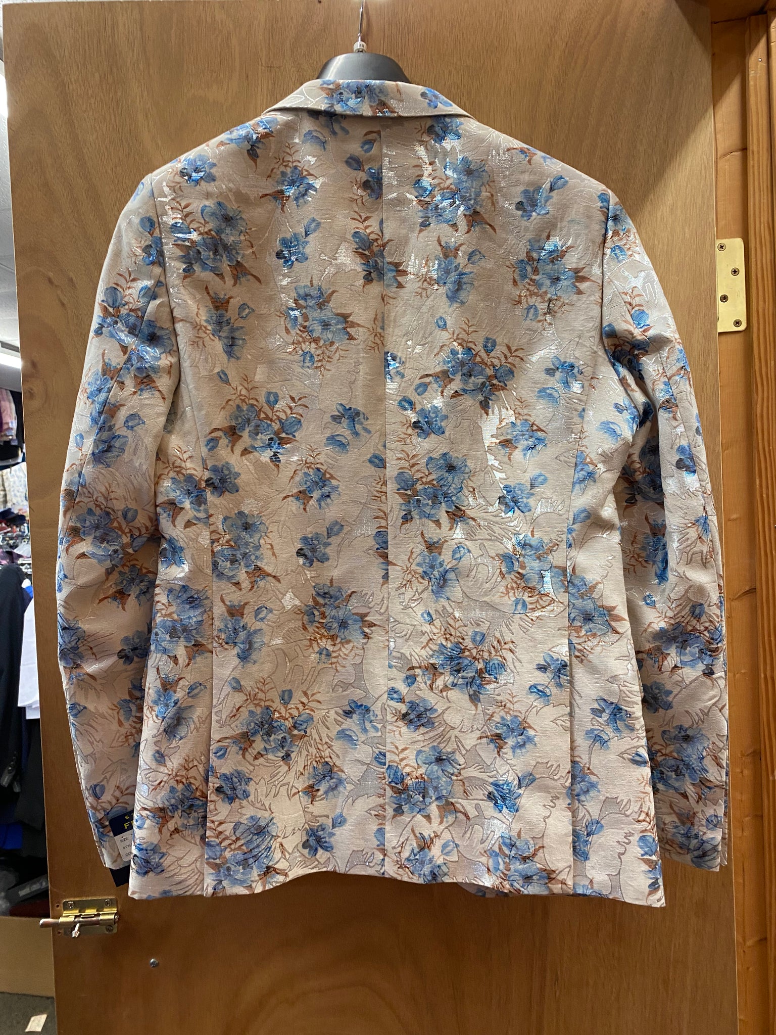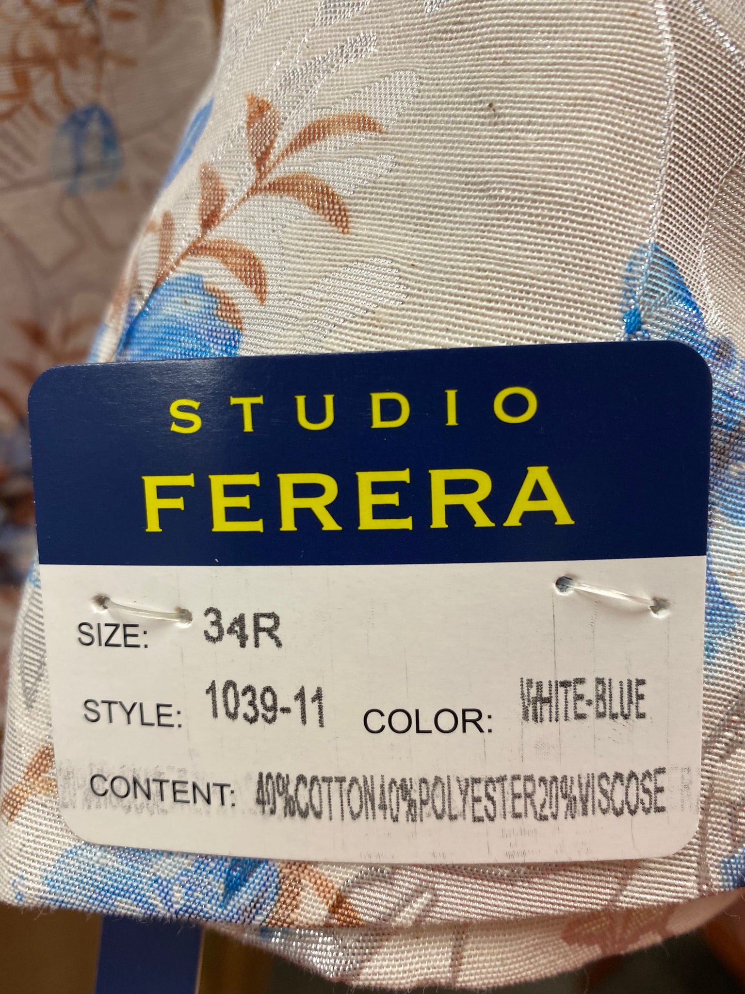 Studio Ferera White-Blue Multicolored Floral/Flower Print Slim Fit Blazer