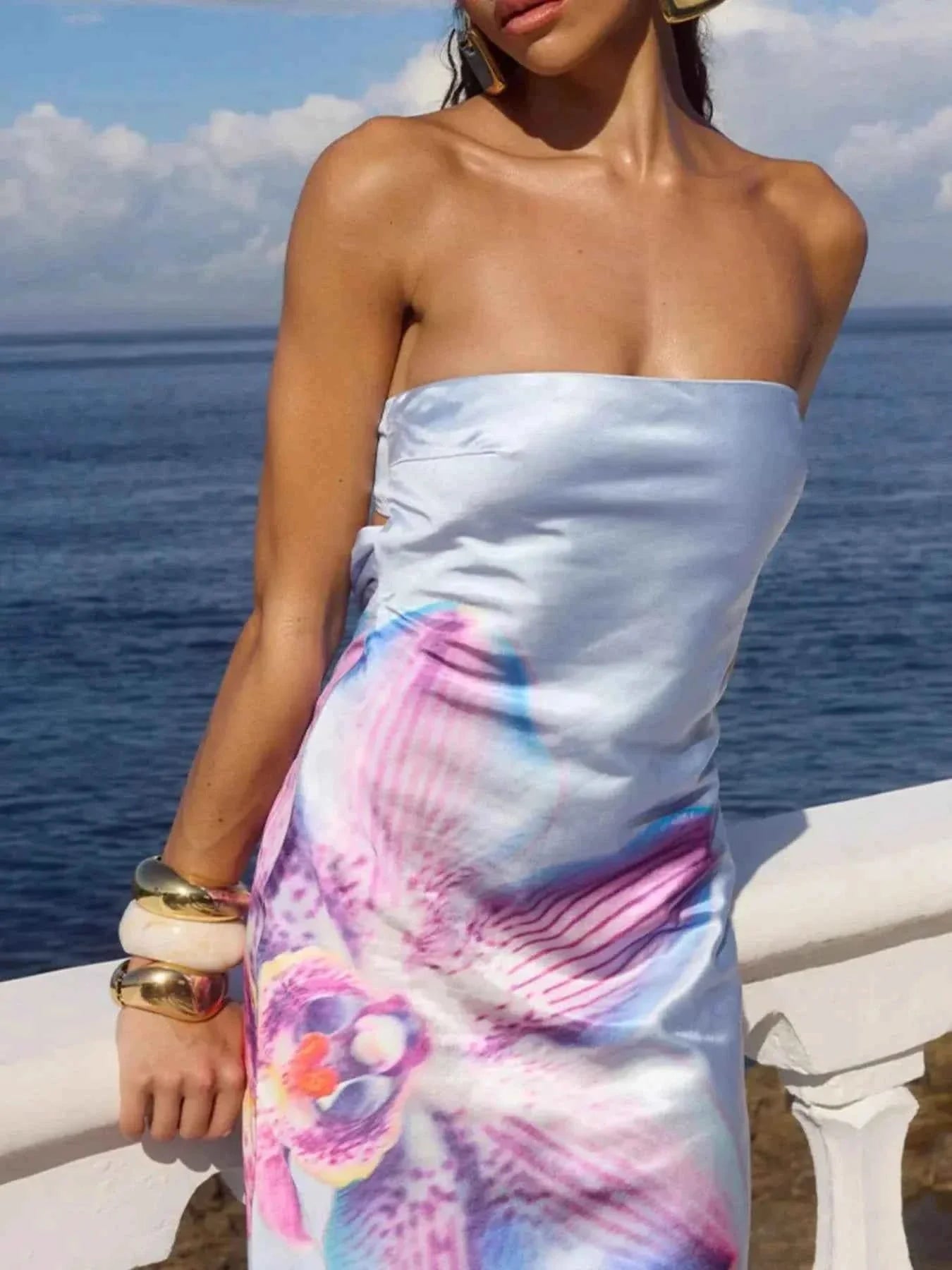 This stylish printed tube maxi dress is made from a lightweight fabric that is perfect for all-day wear. The breathable material will keep you cool and comfortable in any setting, whether you're at the beach or out for a day of shopping with friends.