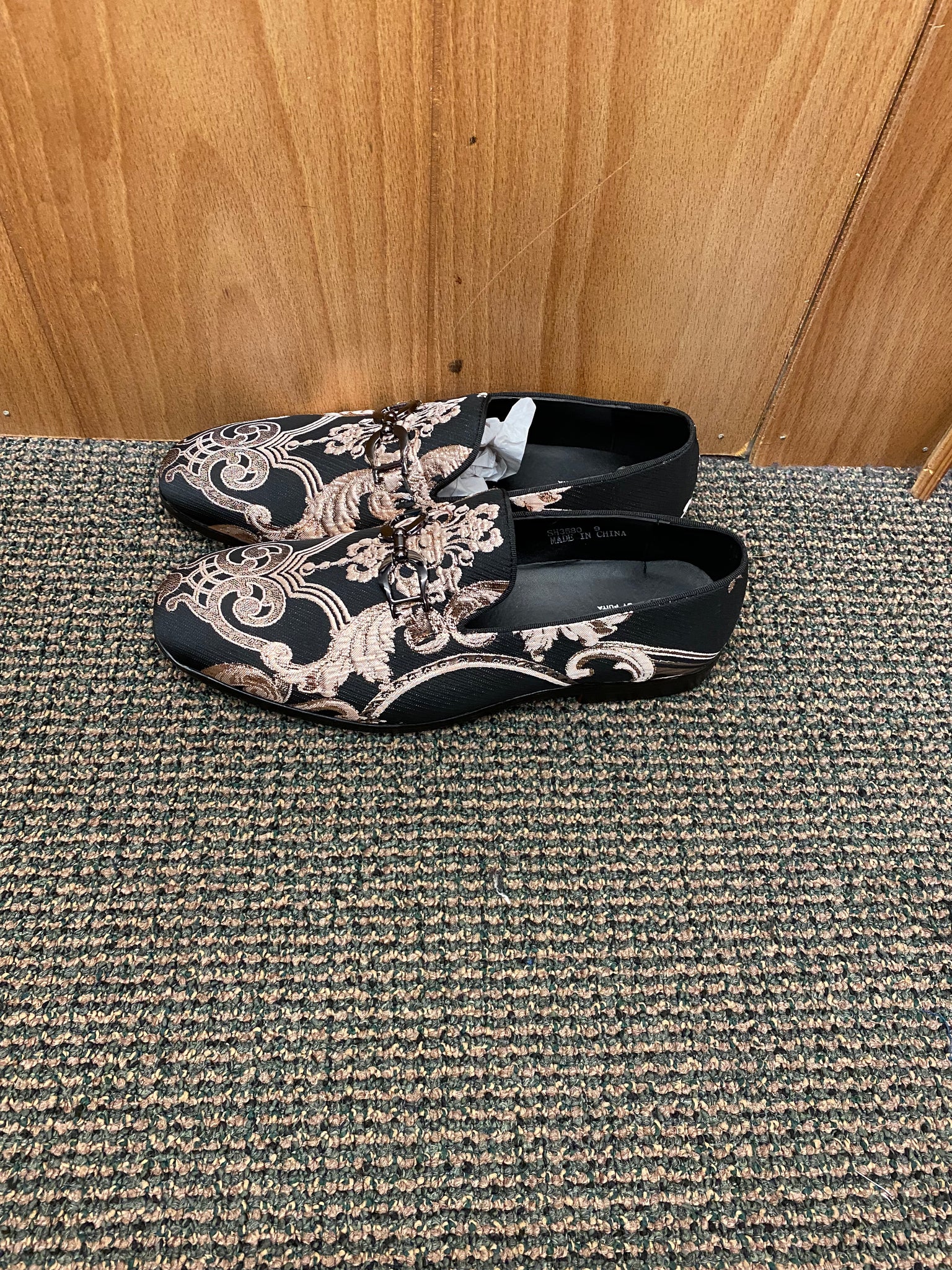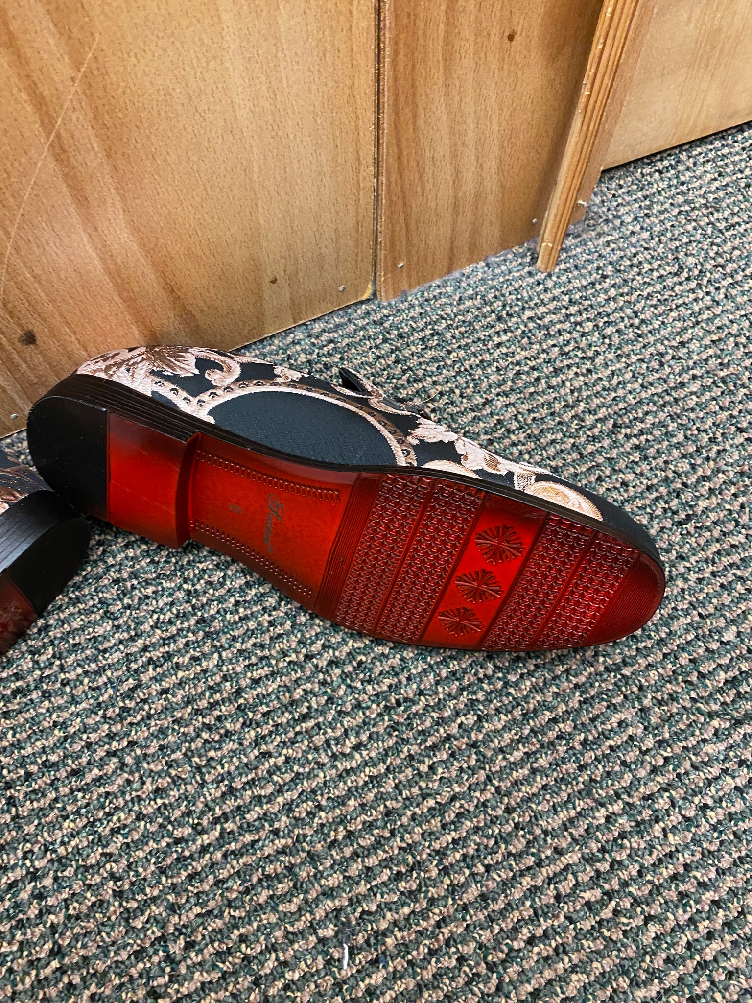 Successos Black/Rose Gold Men’s Smoking Red Bottom Slip-on Dress Shoes