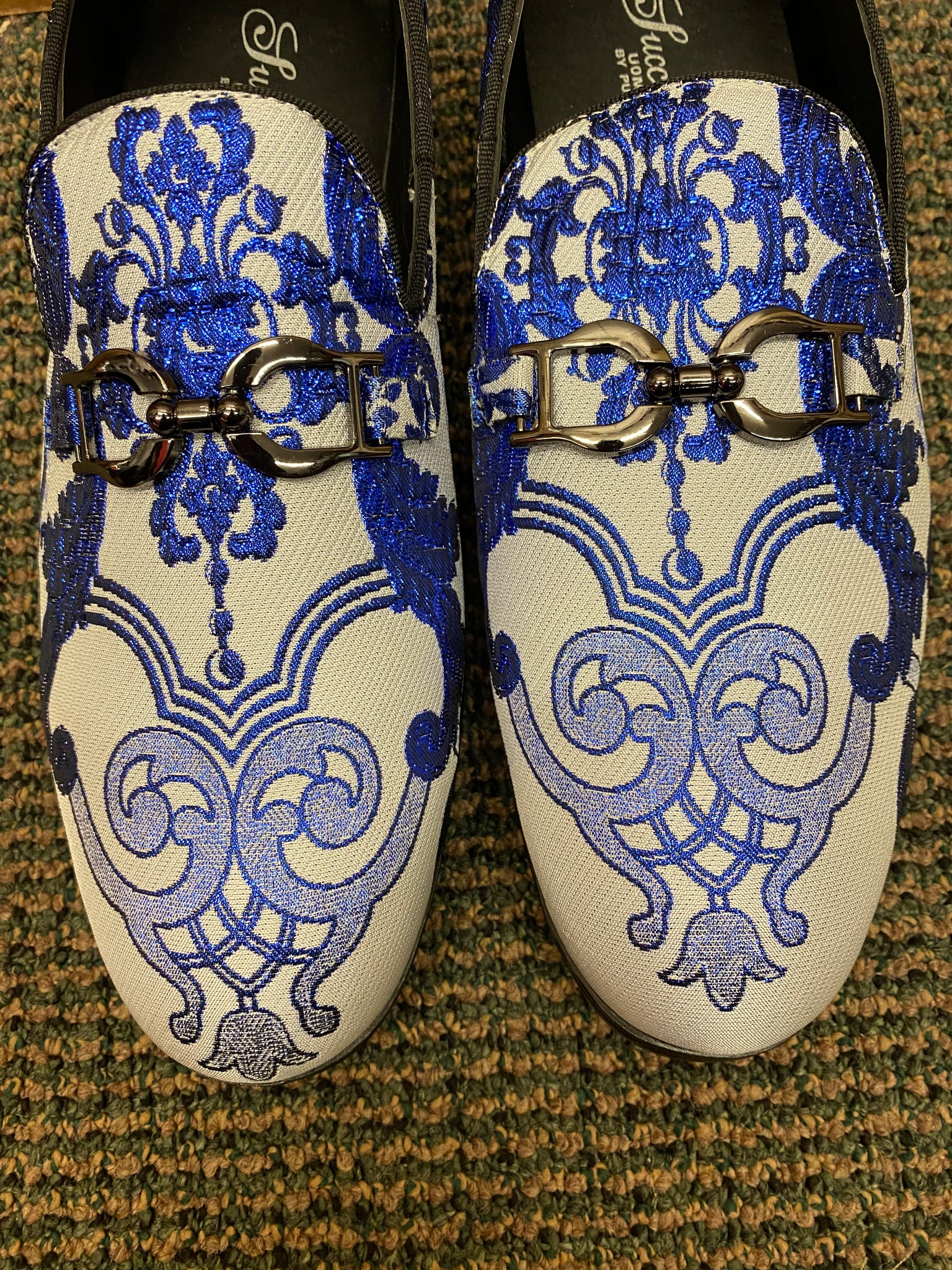 Successos Blue/White Smoking Slippers/Mens dress shoes SH3580