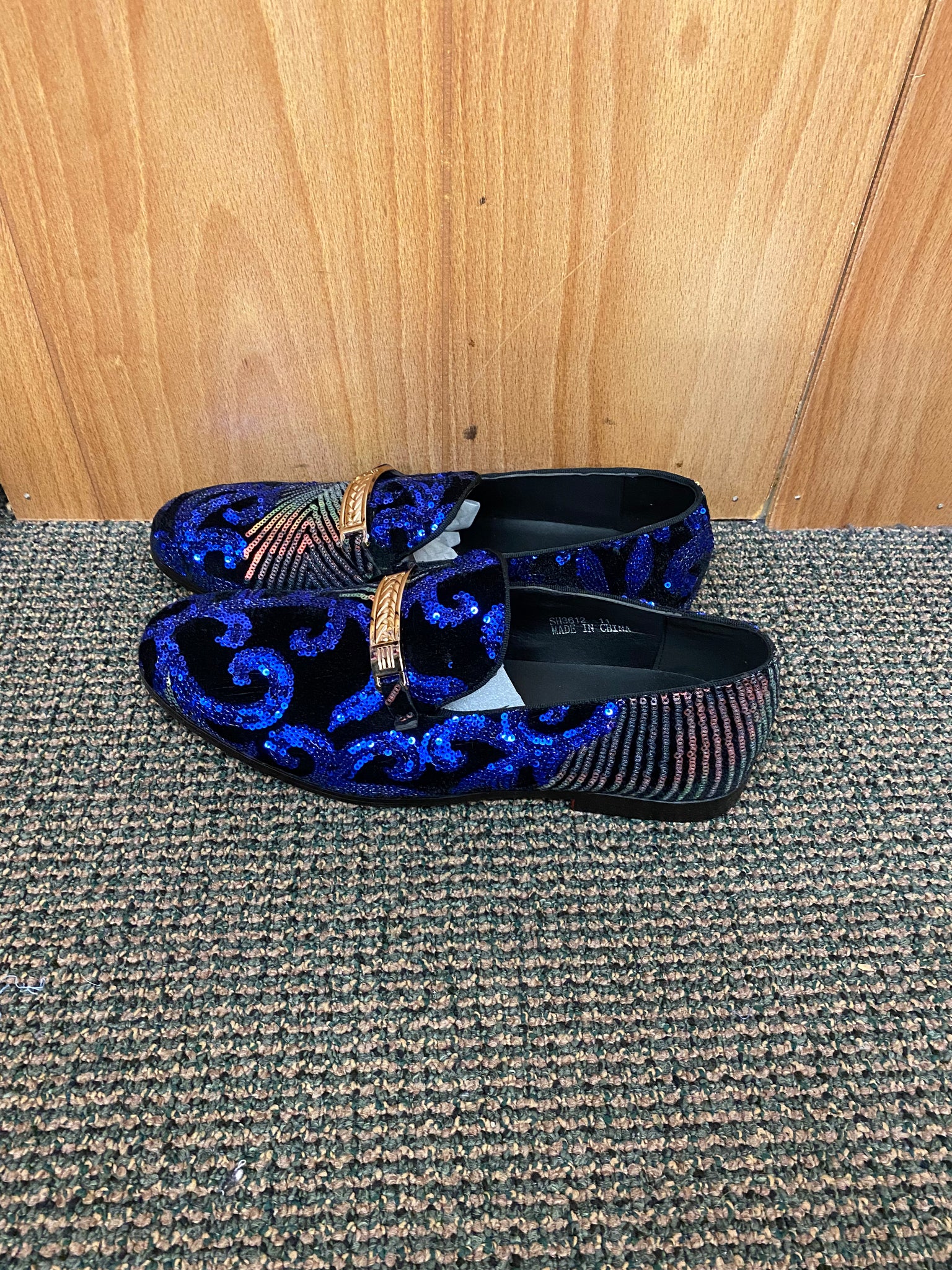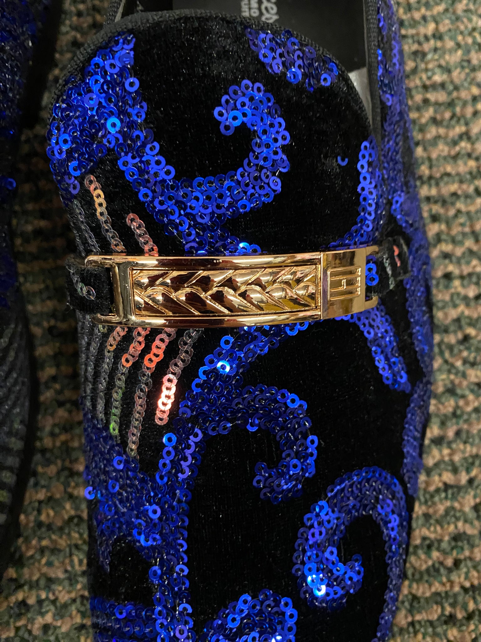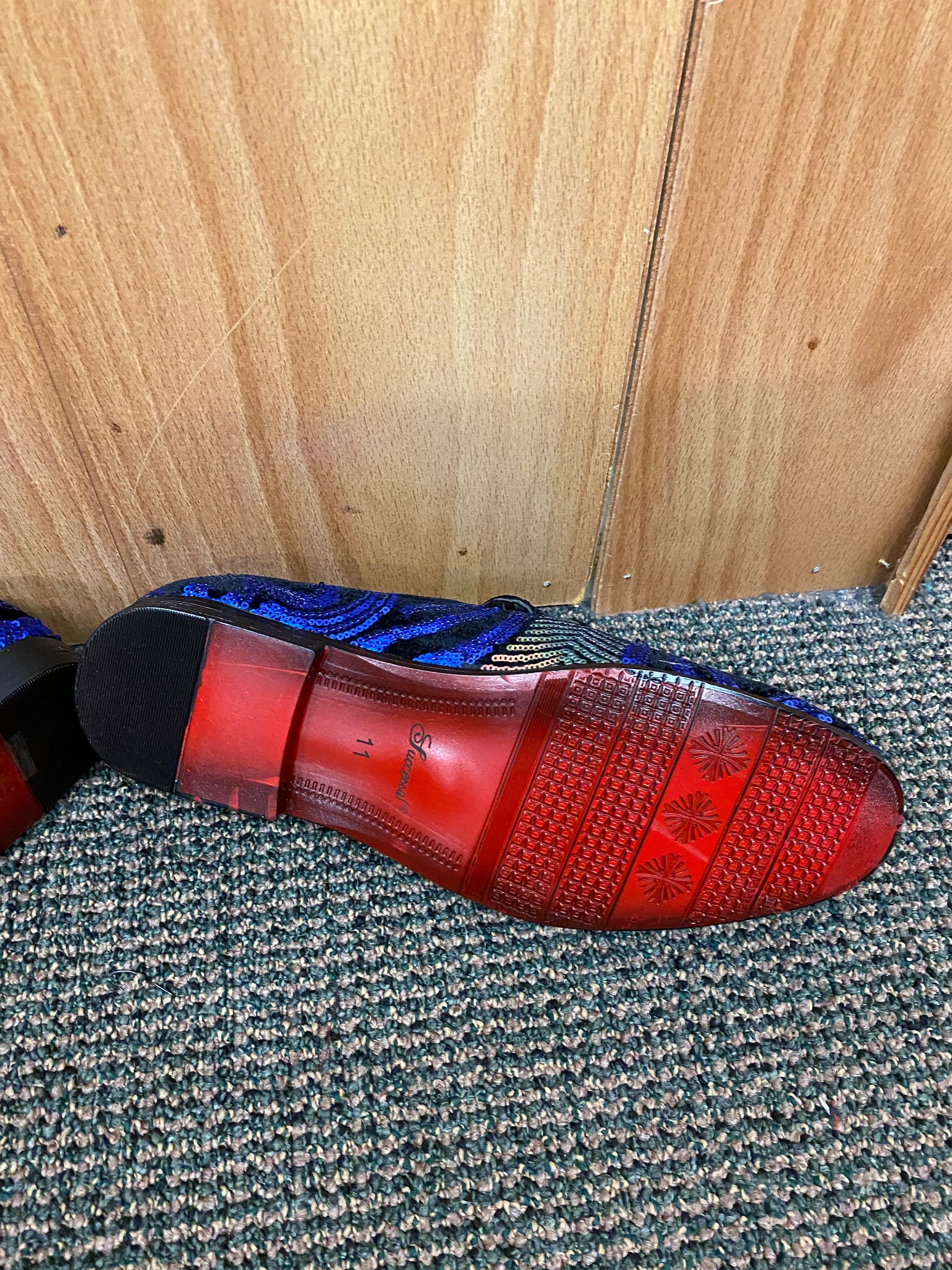 Successos SH3612 Blue Sequins Men’s Red Bottom Dress Shoes Sizes 7-15