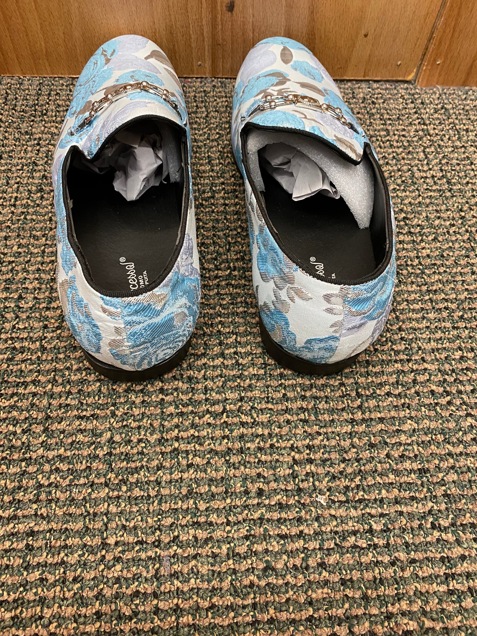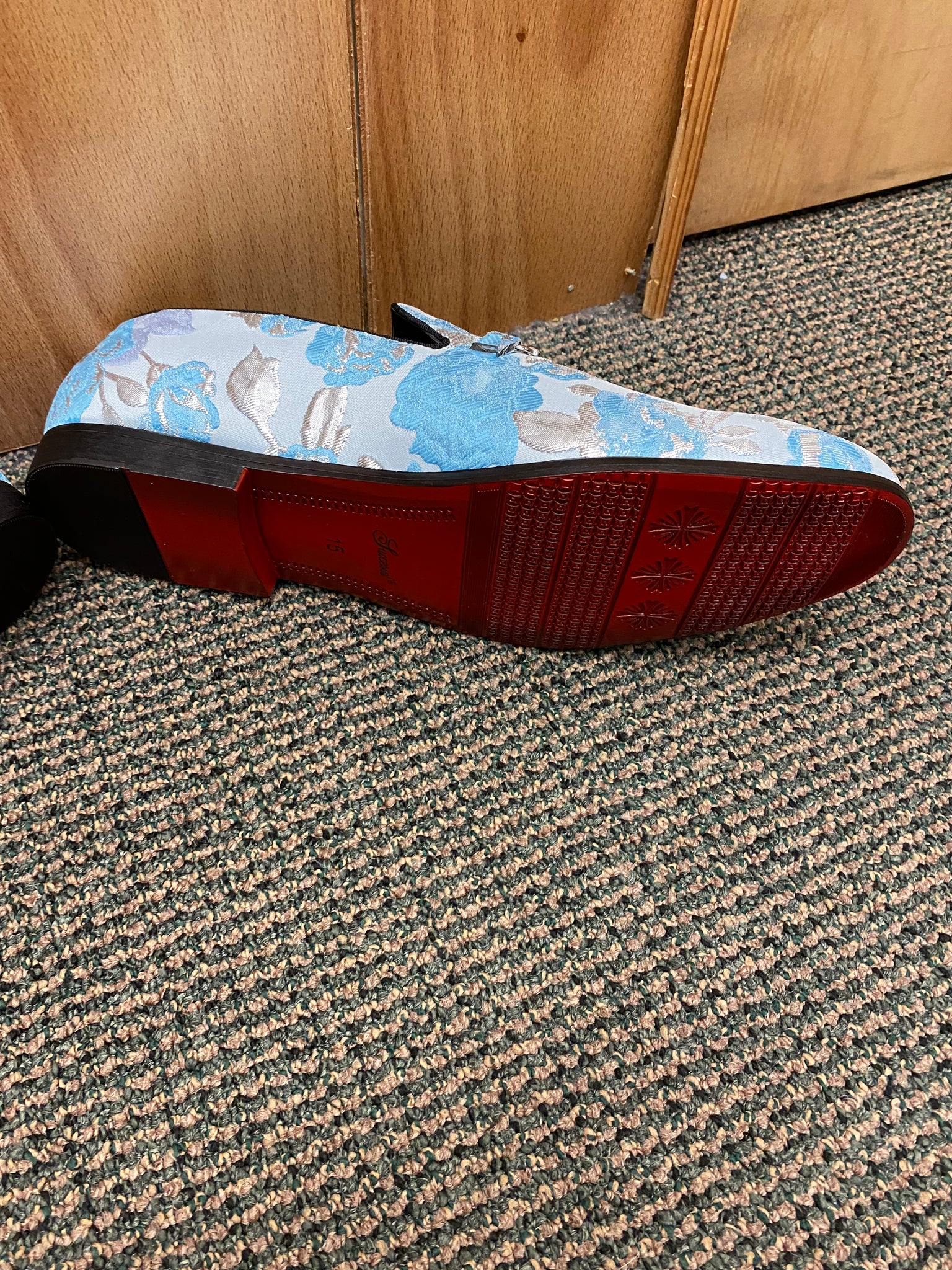 Successos Sky Blue Floral print red bottom slip-on dress shoes sizes 7-15