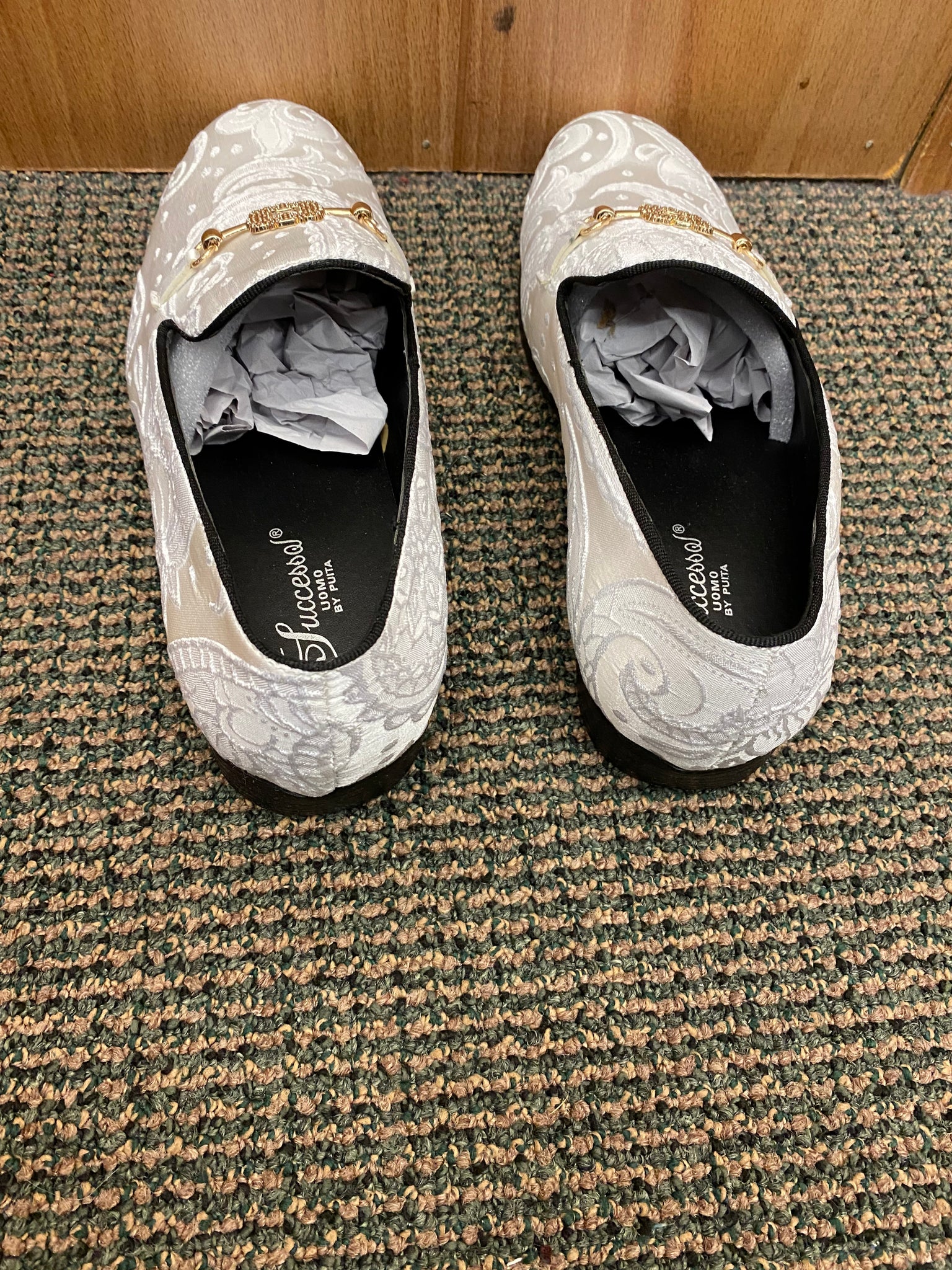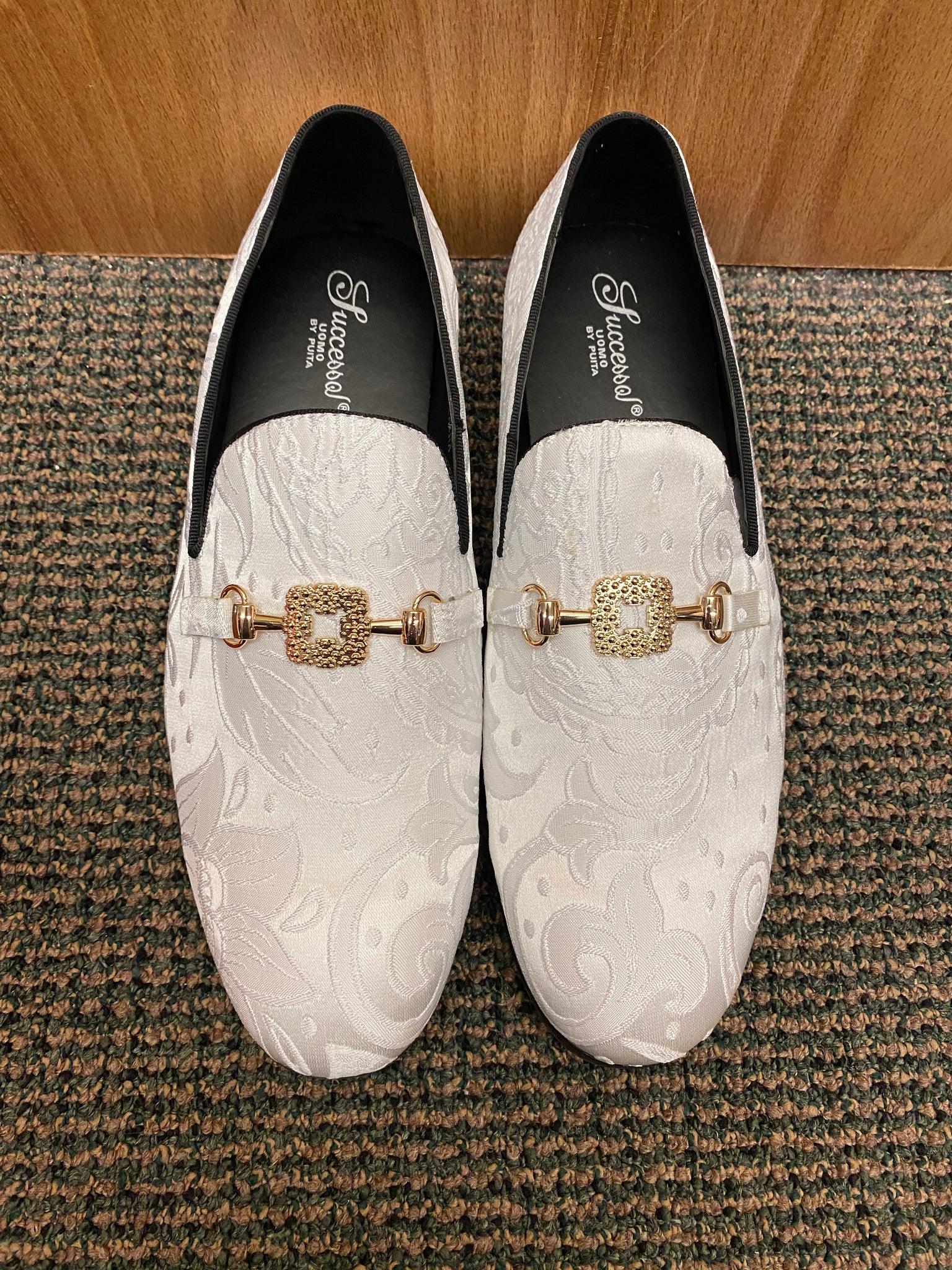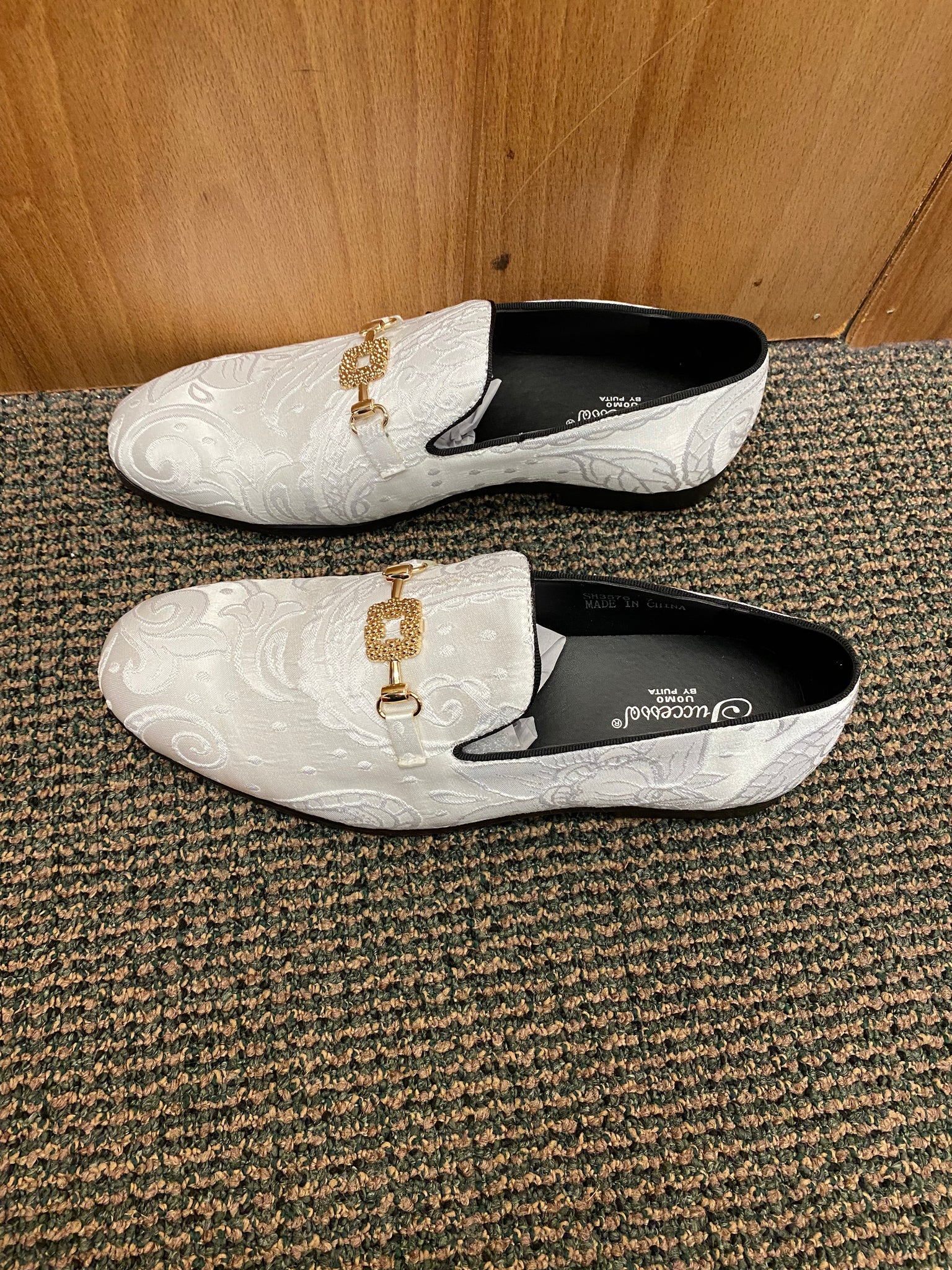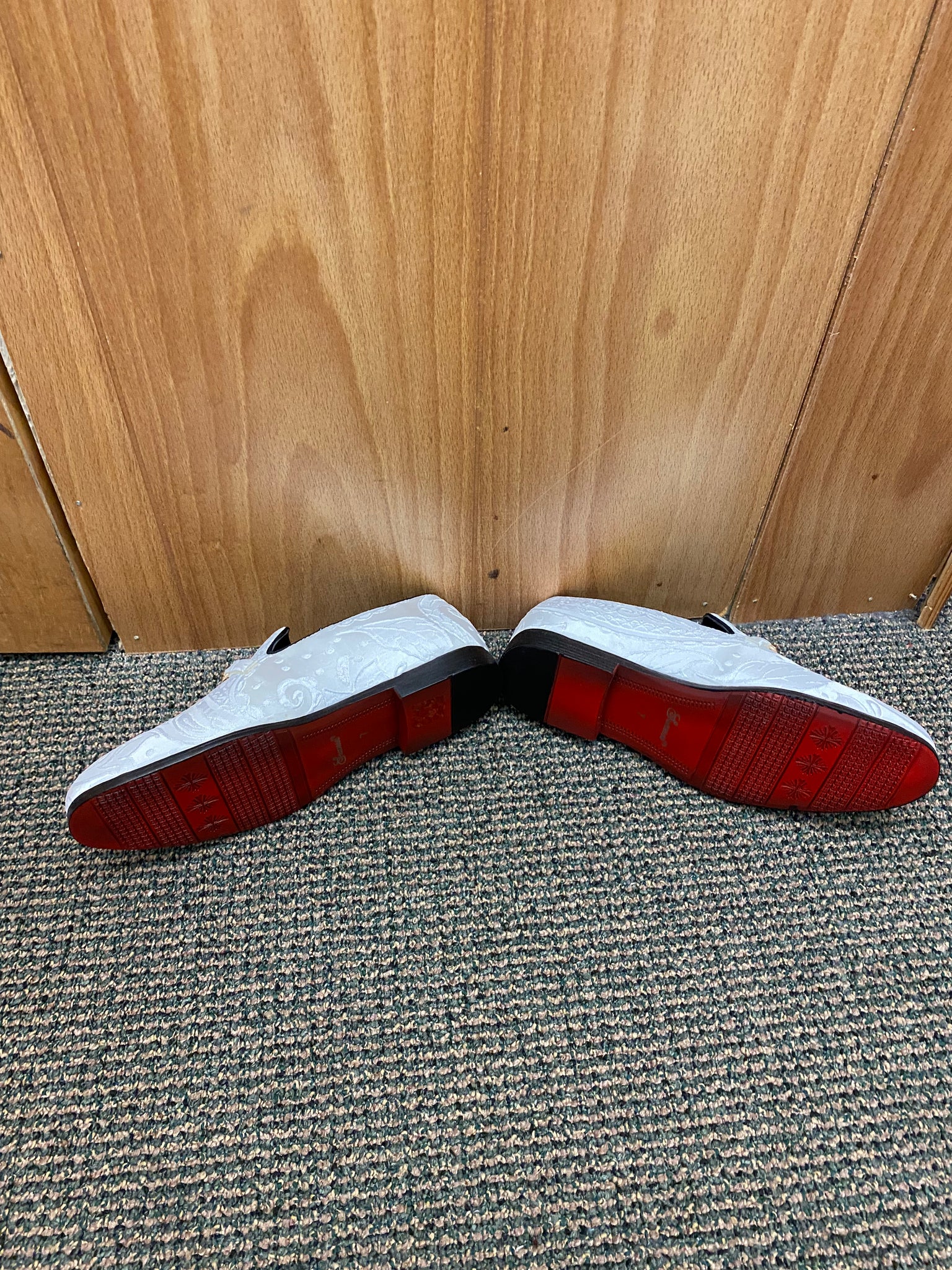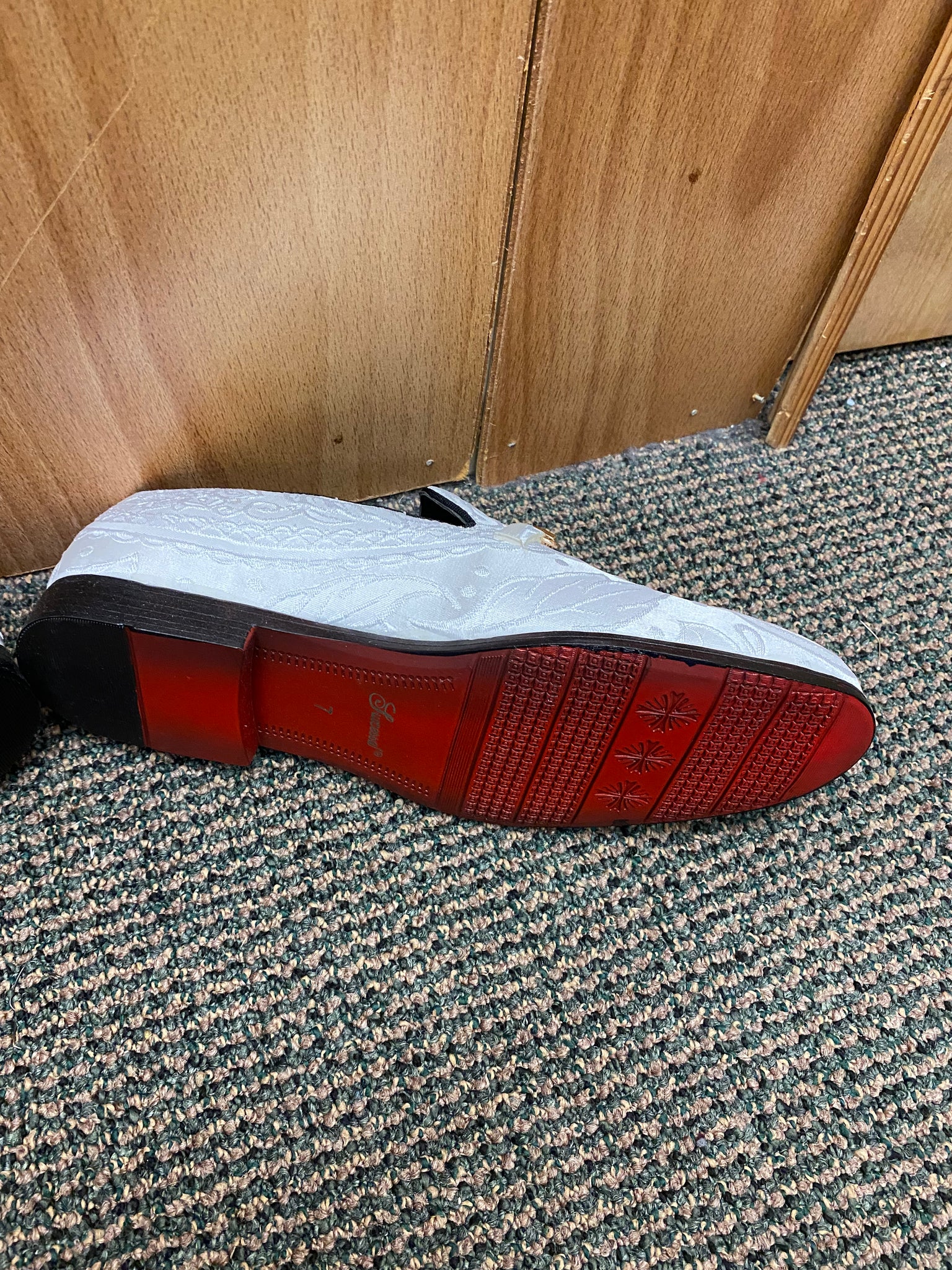 Successos White Floral/Paisley Print with gold buckle Slip-on Men's Red Bottom Dress Shoes Size 7-15