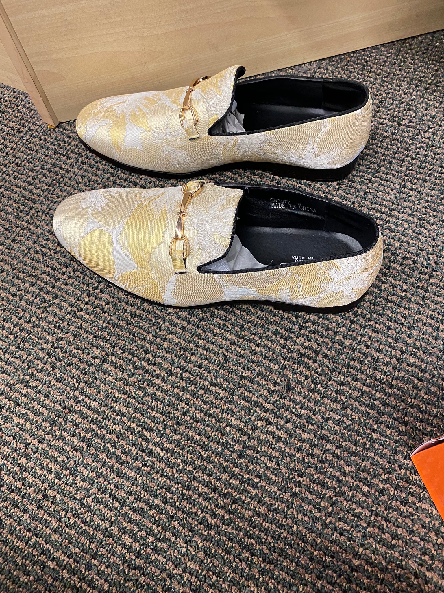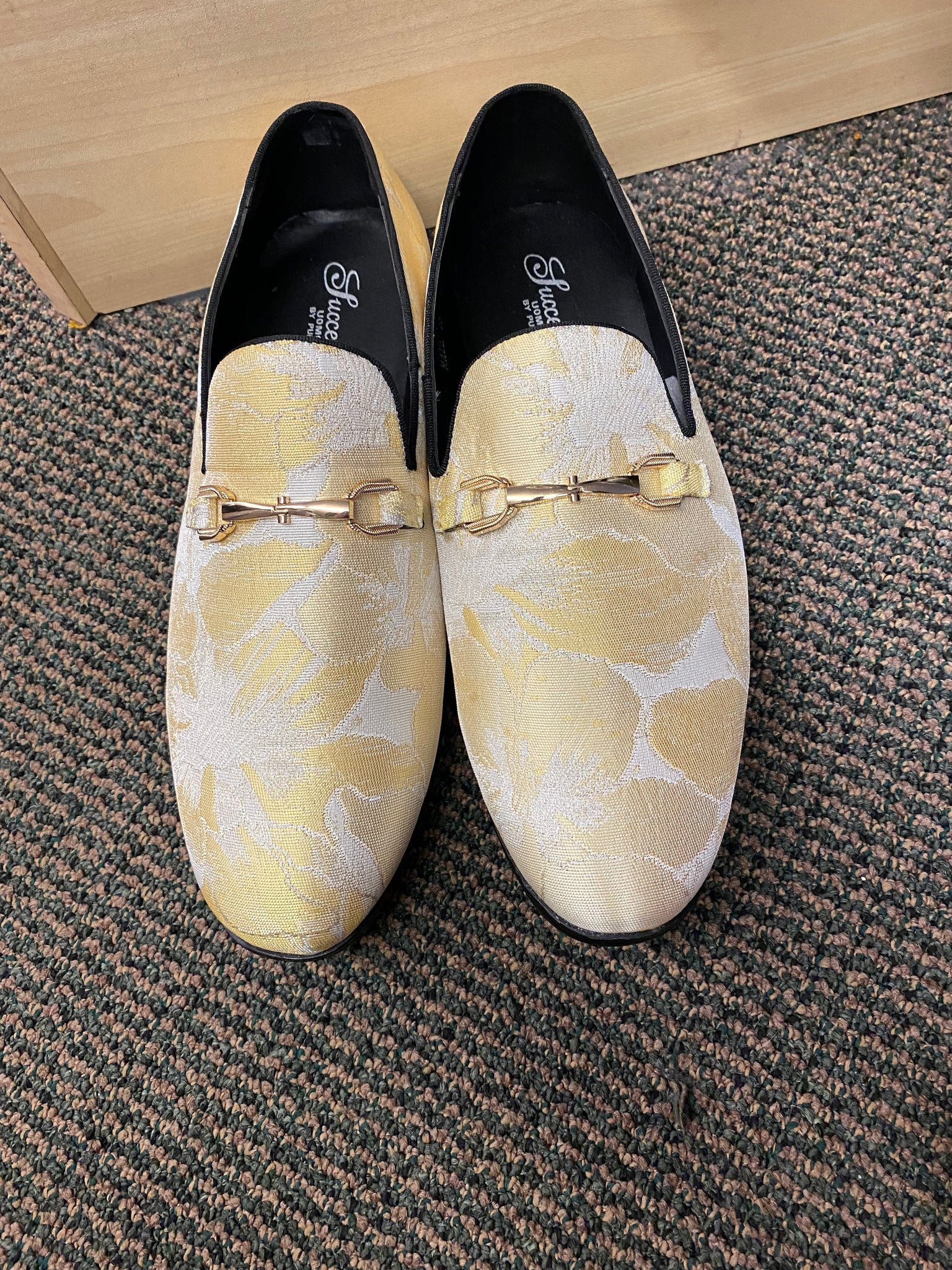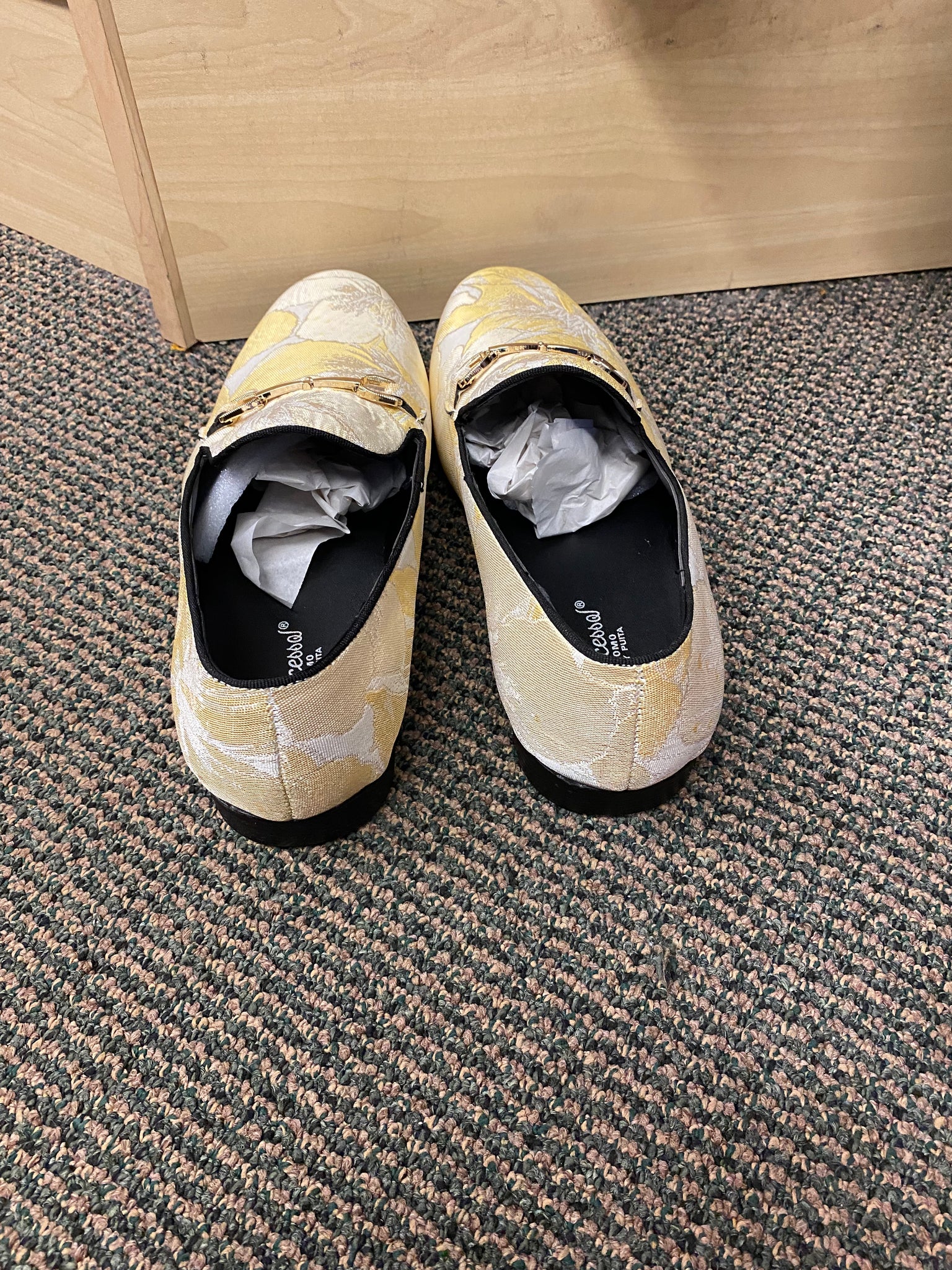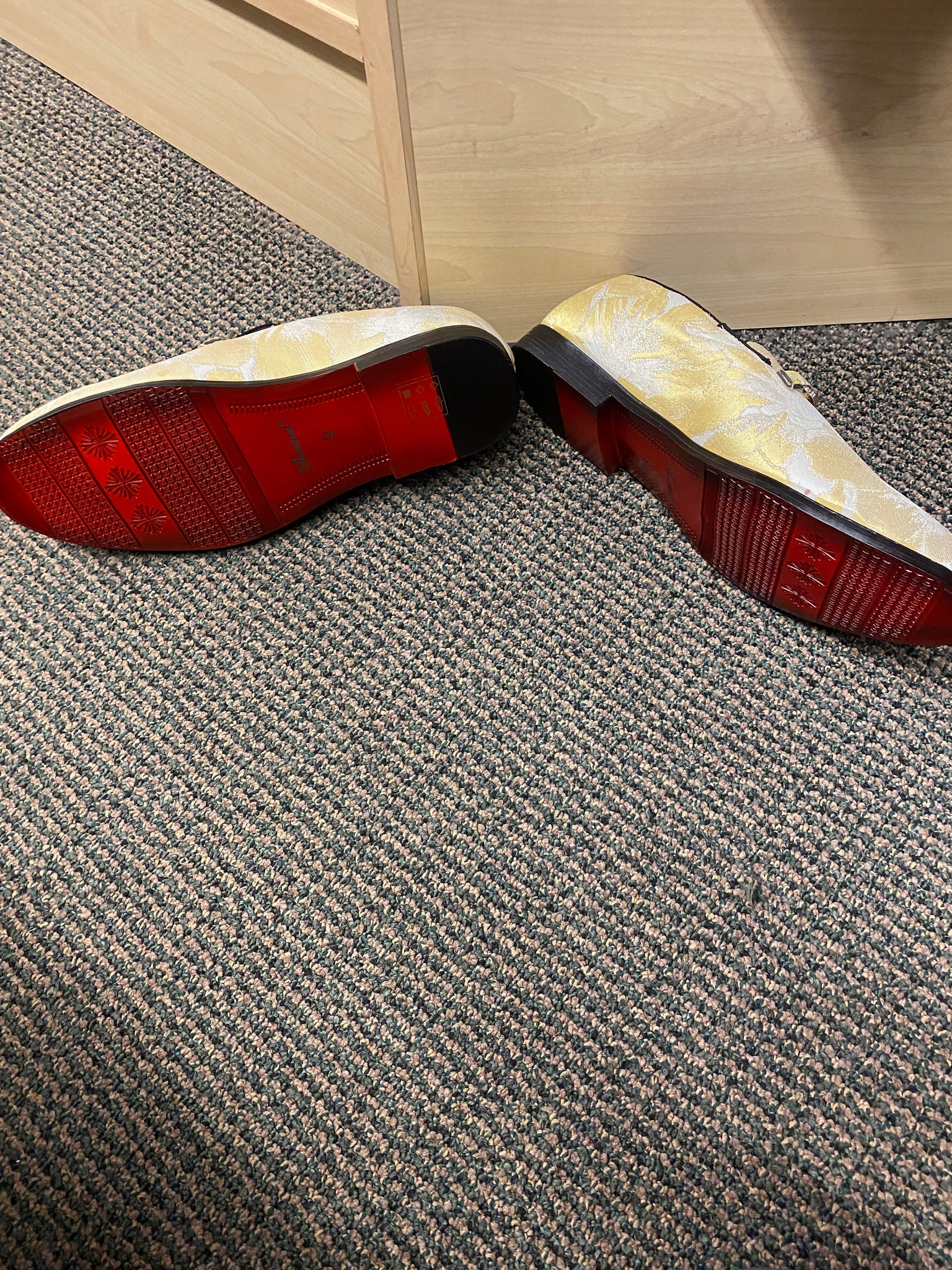 Successos Yellow fancy print red bottom slip-on dress shoes sizes 7-15
