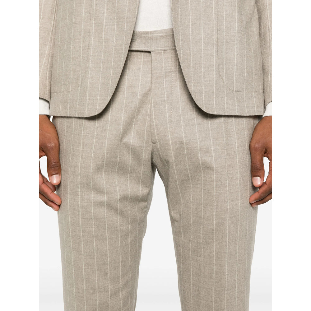 light beige front button fastening concealed fly and button fastening two side slit pockets two rear button-fastening jetted pockets