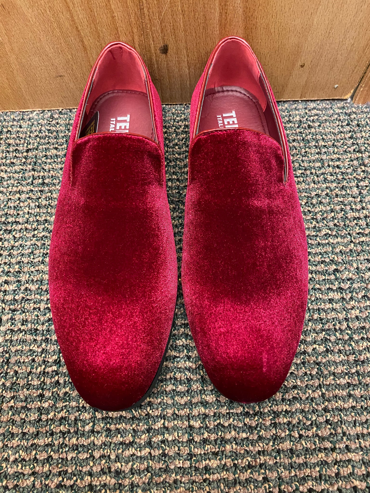 Terroni Italian Design Burgundy Suede-like Smoking Slip-on Men’s Dress Shoes