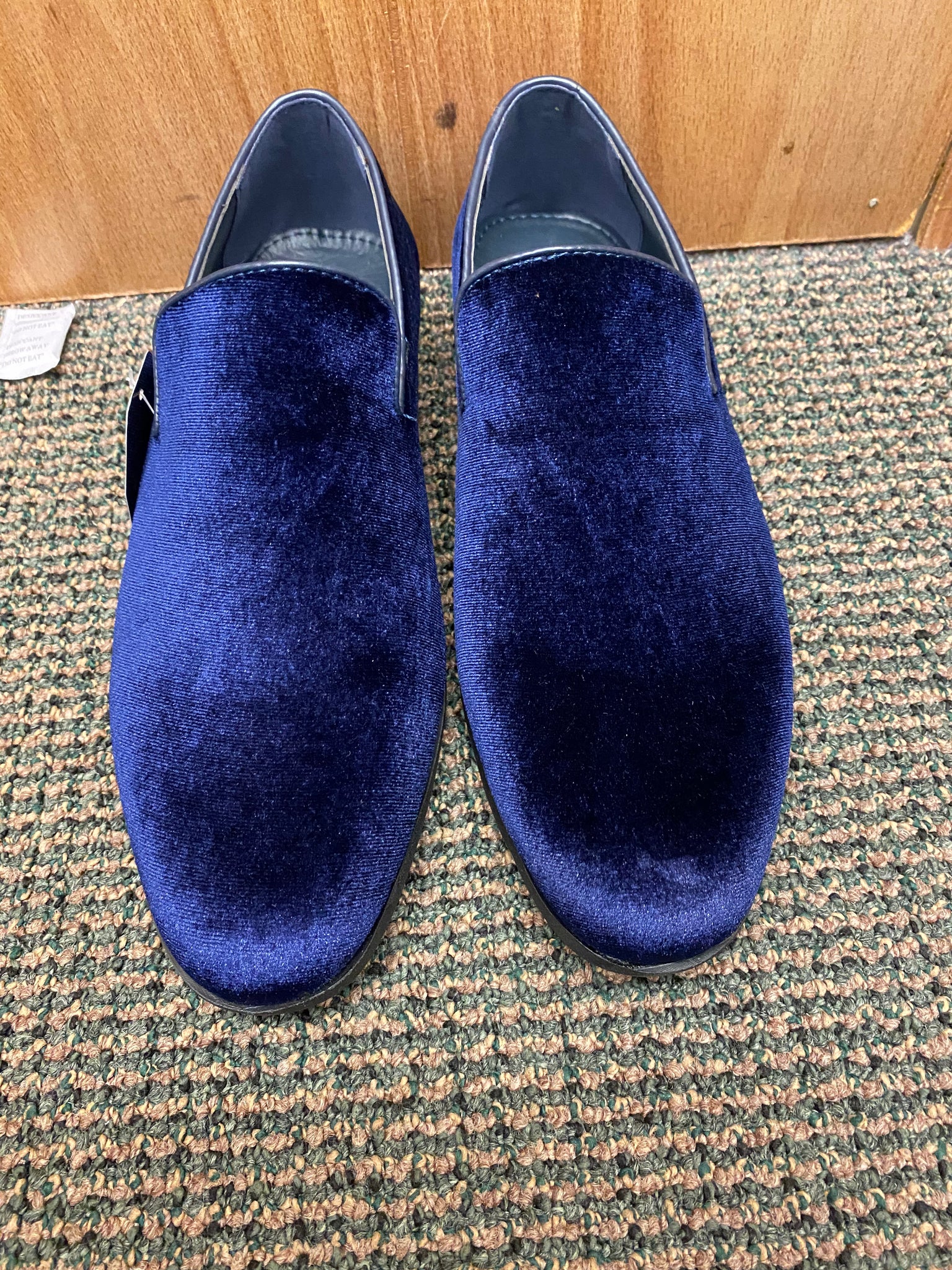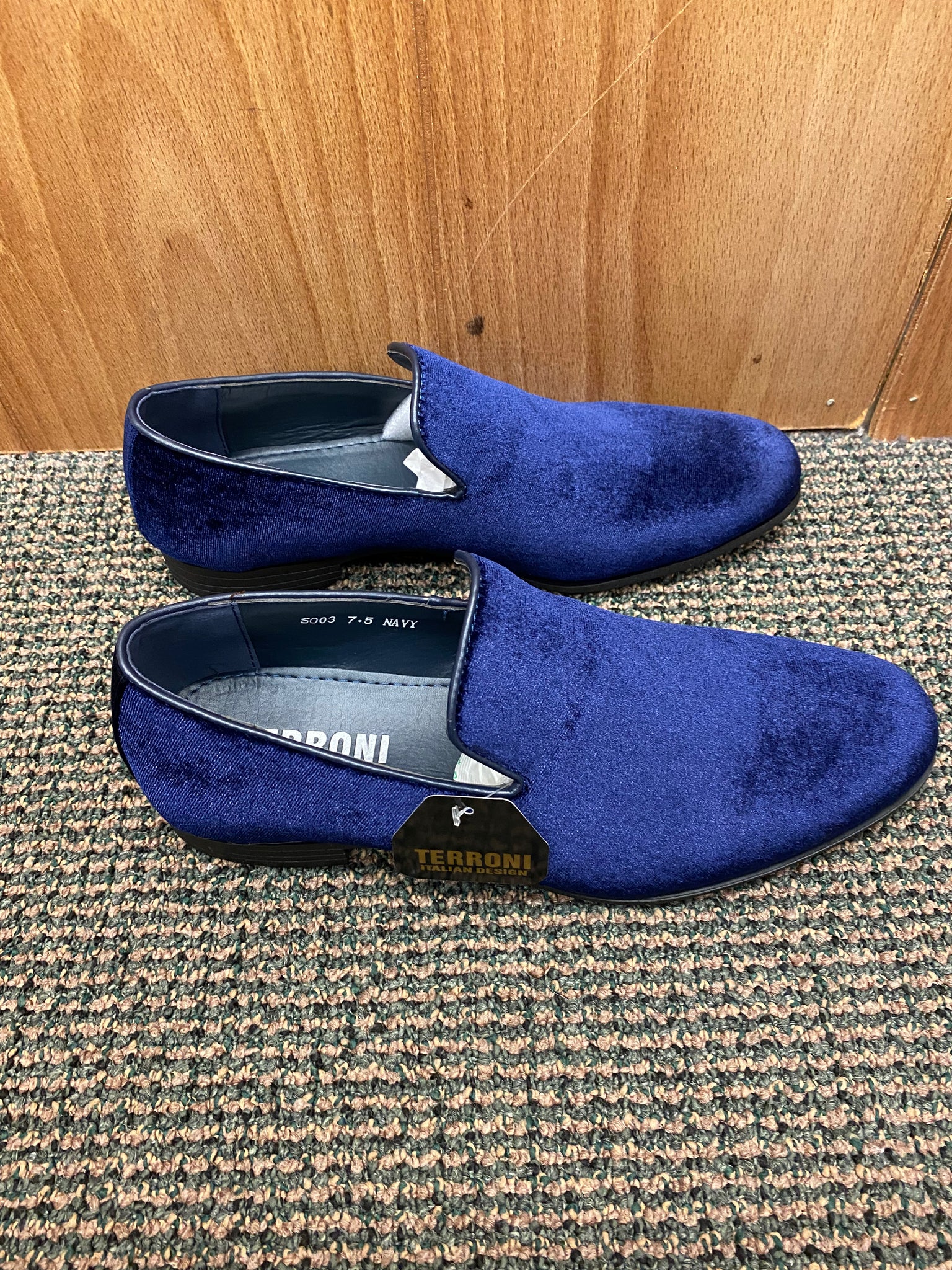 Terroni Italian Design Navy Blue Suede-like Smoking Slip-on Men’s Dress Shoes