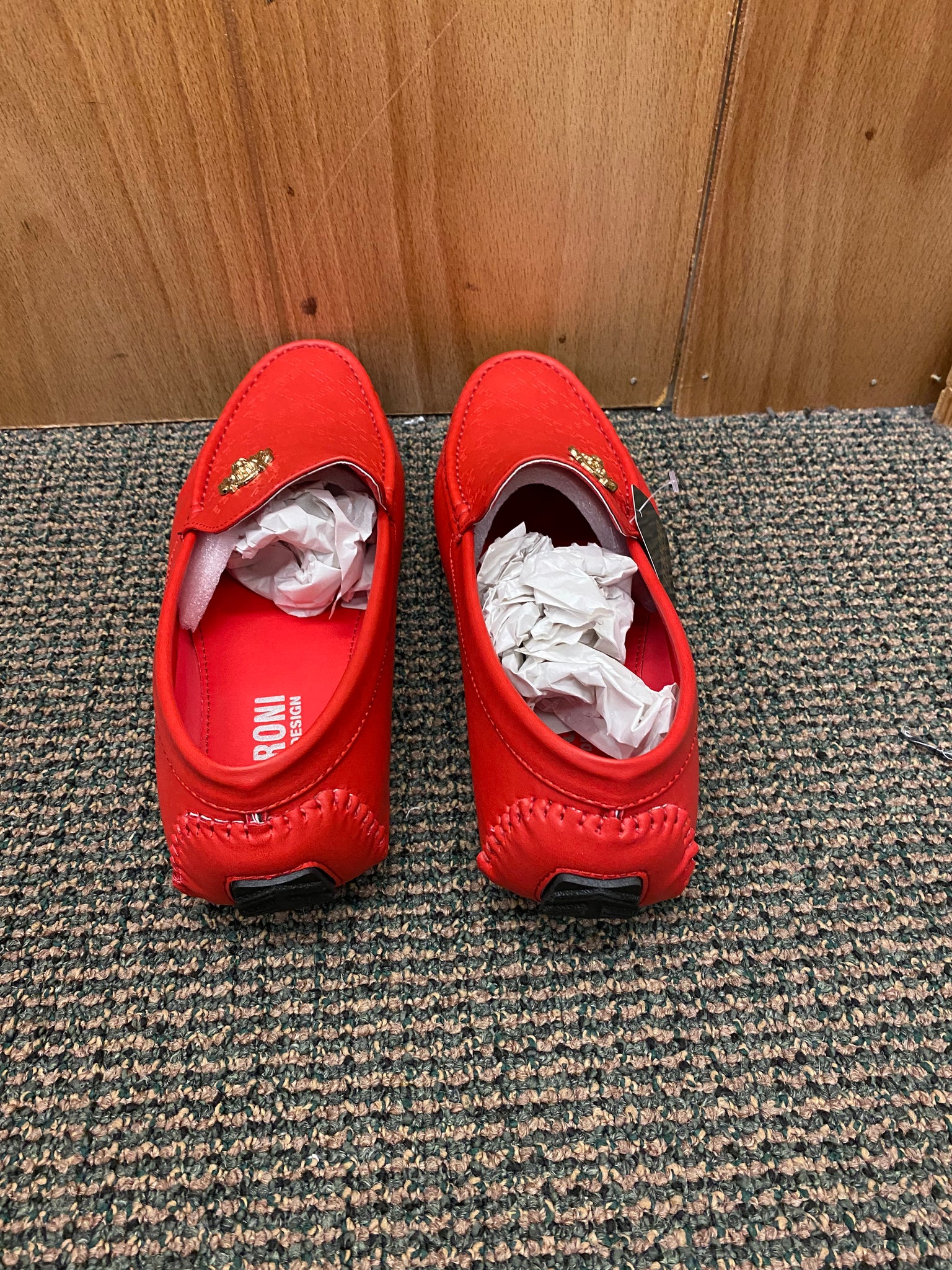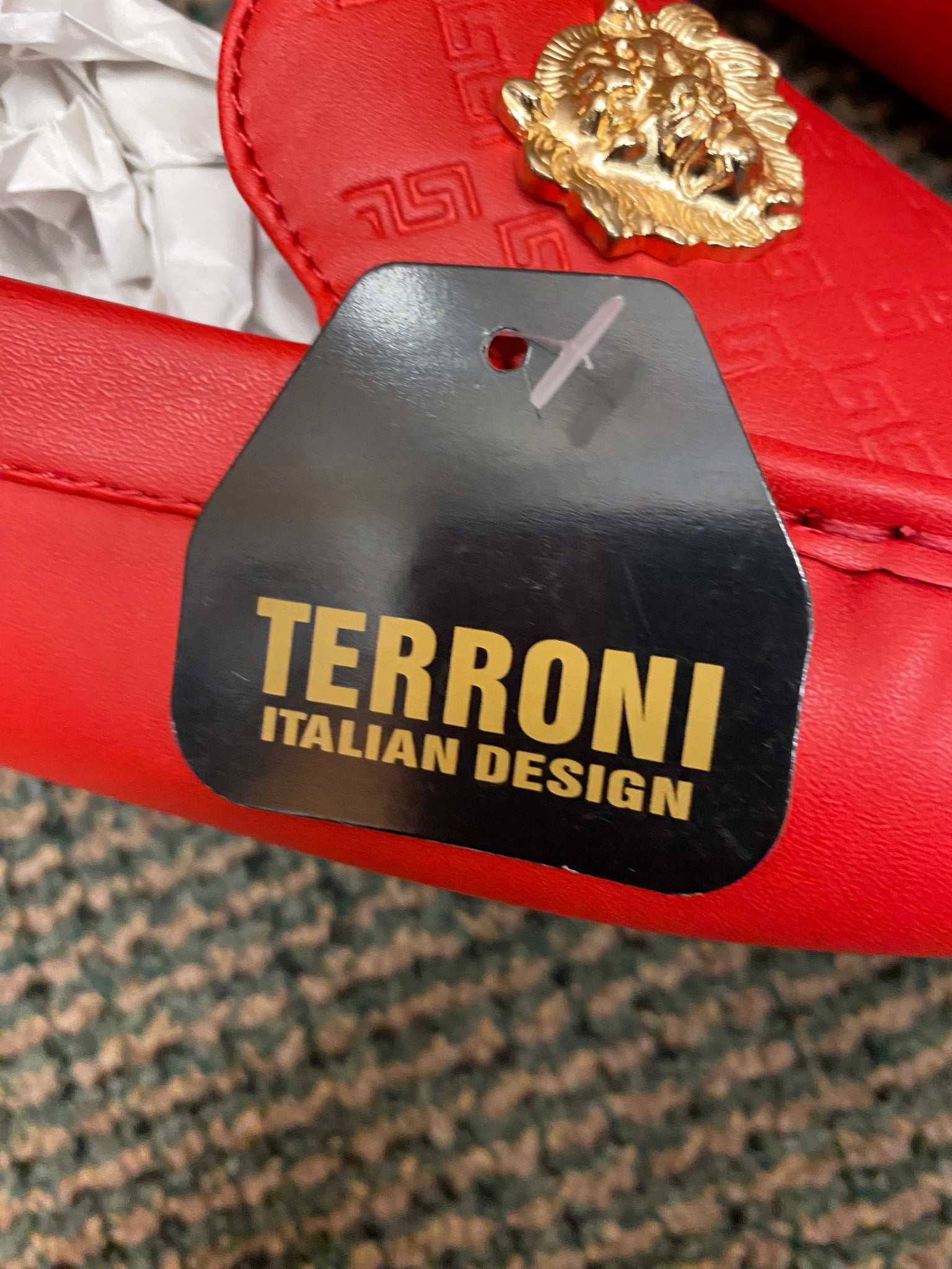 Terroni Italian Design Red Men's Slip-on Dress/Driver Shoe with Gold Lionhead