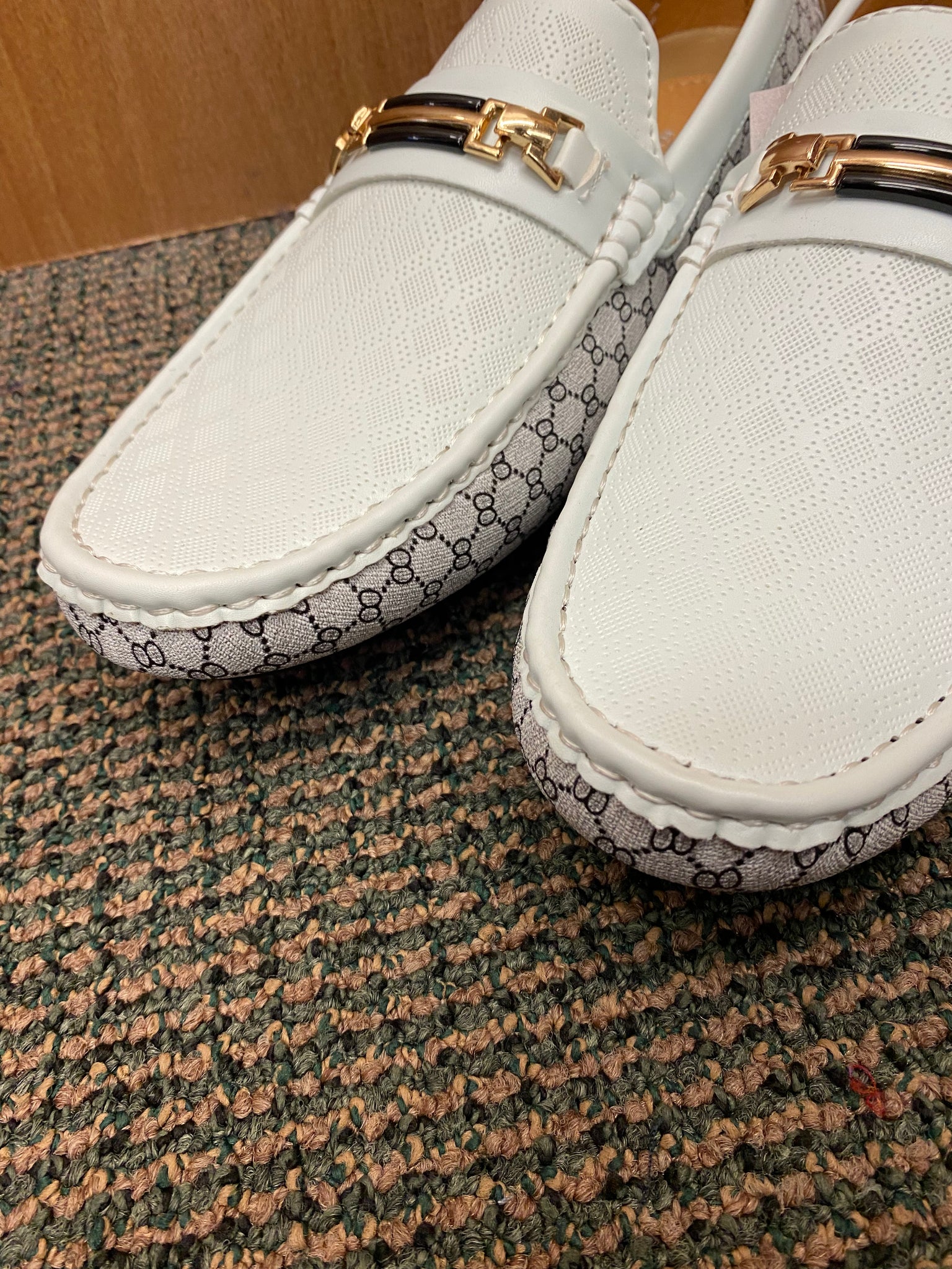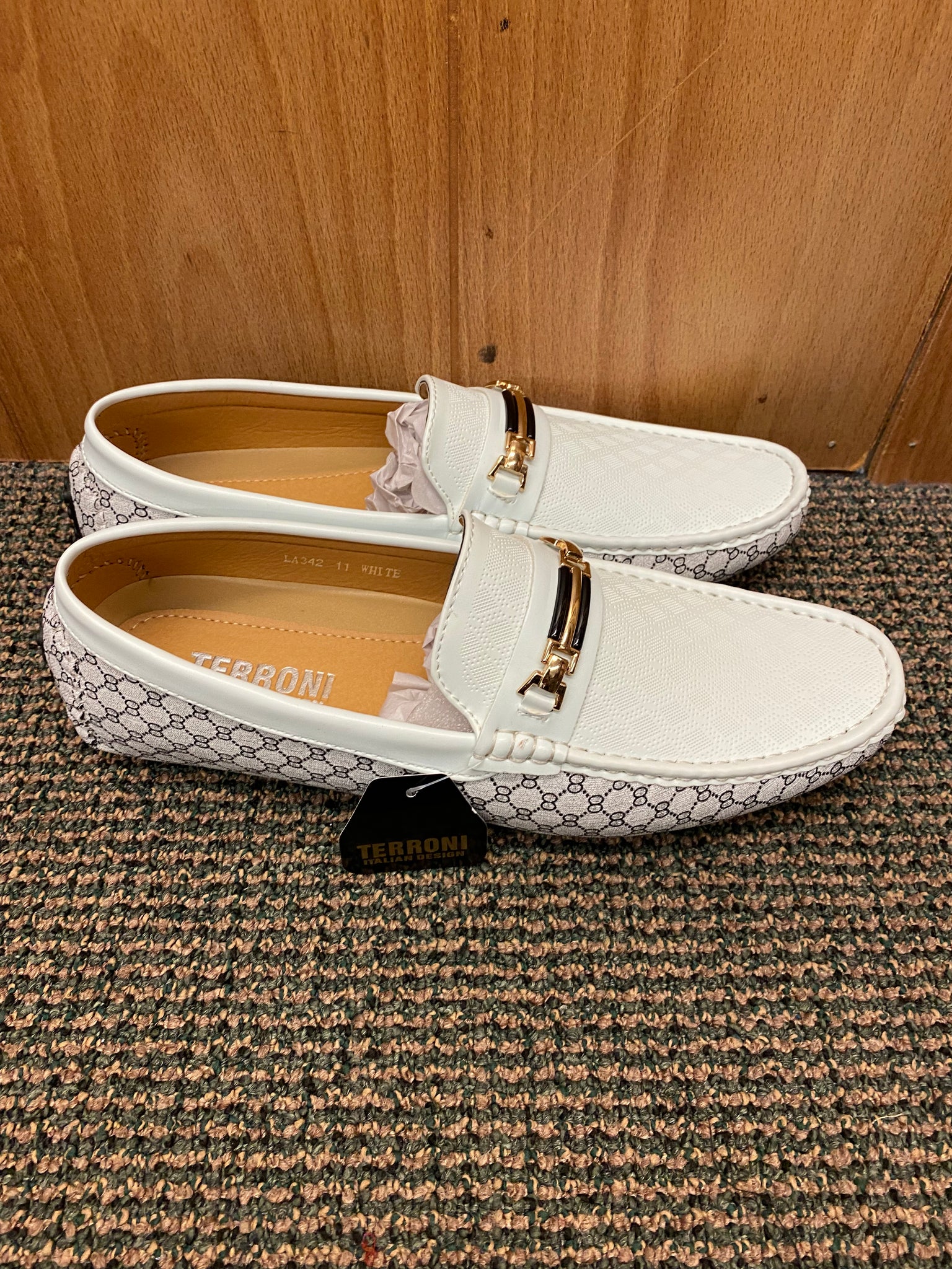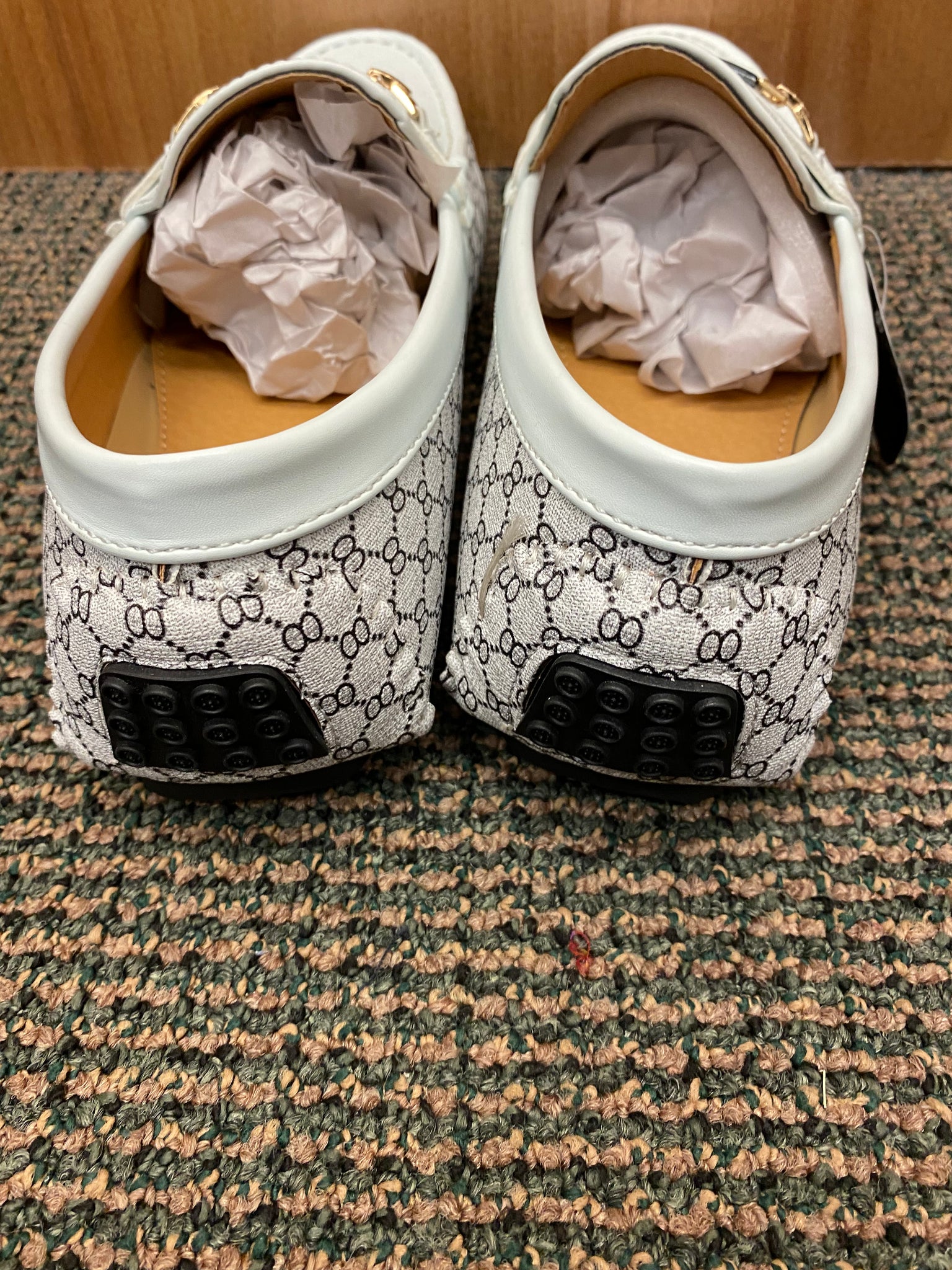 Terroni Italian Design White Gucci Print Smoking Men's Slip-on Dress/Driver Shoe