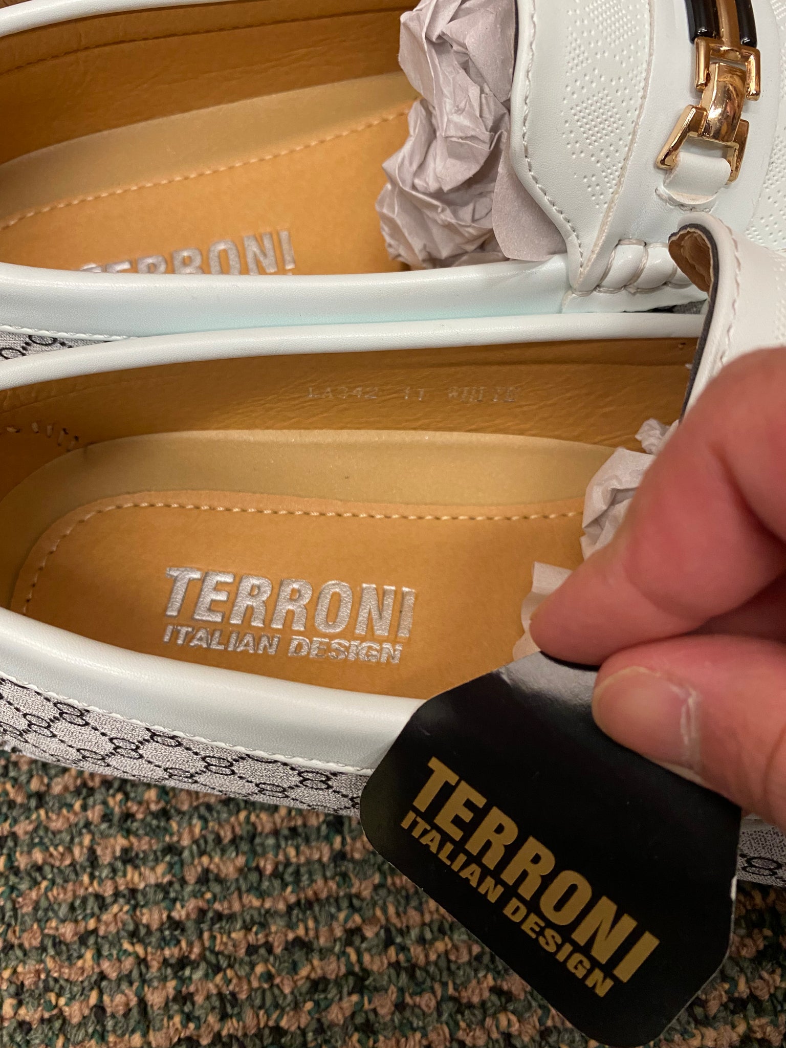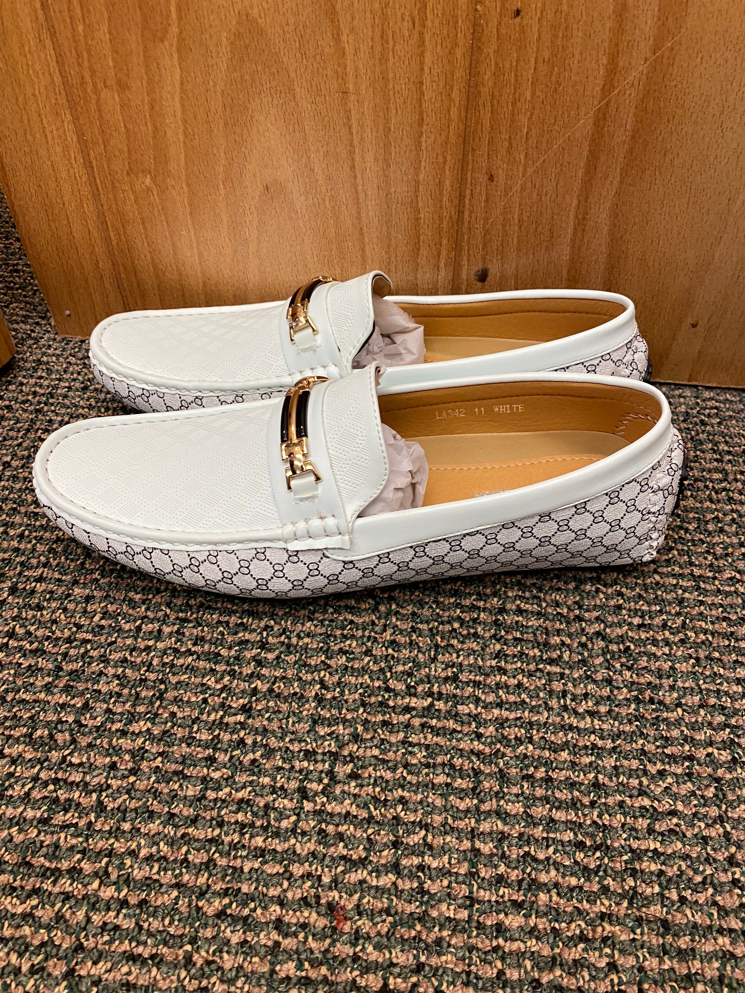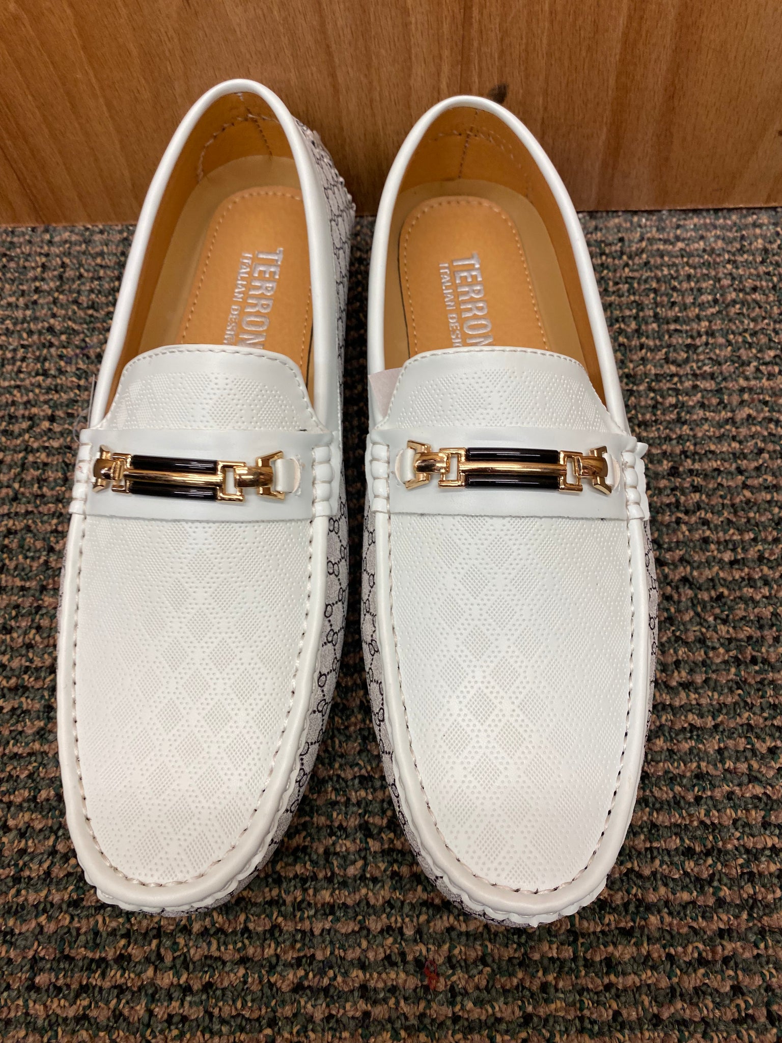 Terroni Italian Design White Gucci Print Smoking Men's Slip-on Dress/Driver Shoe