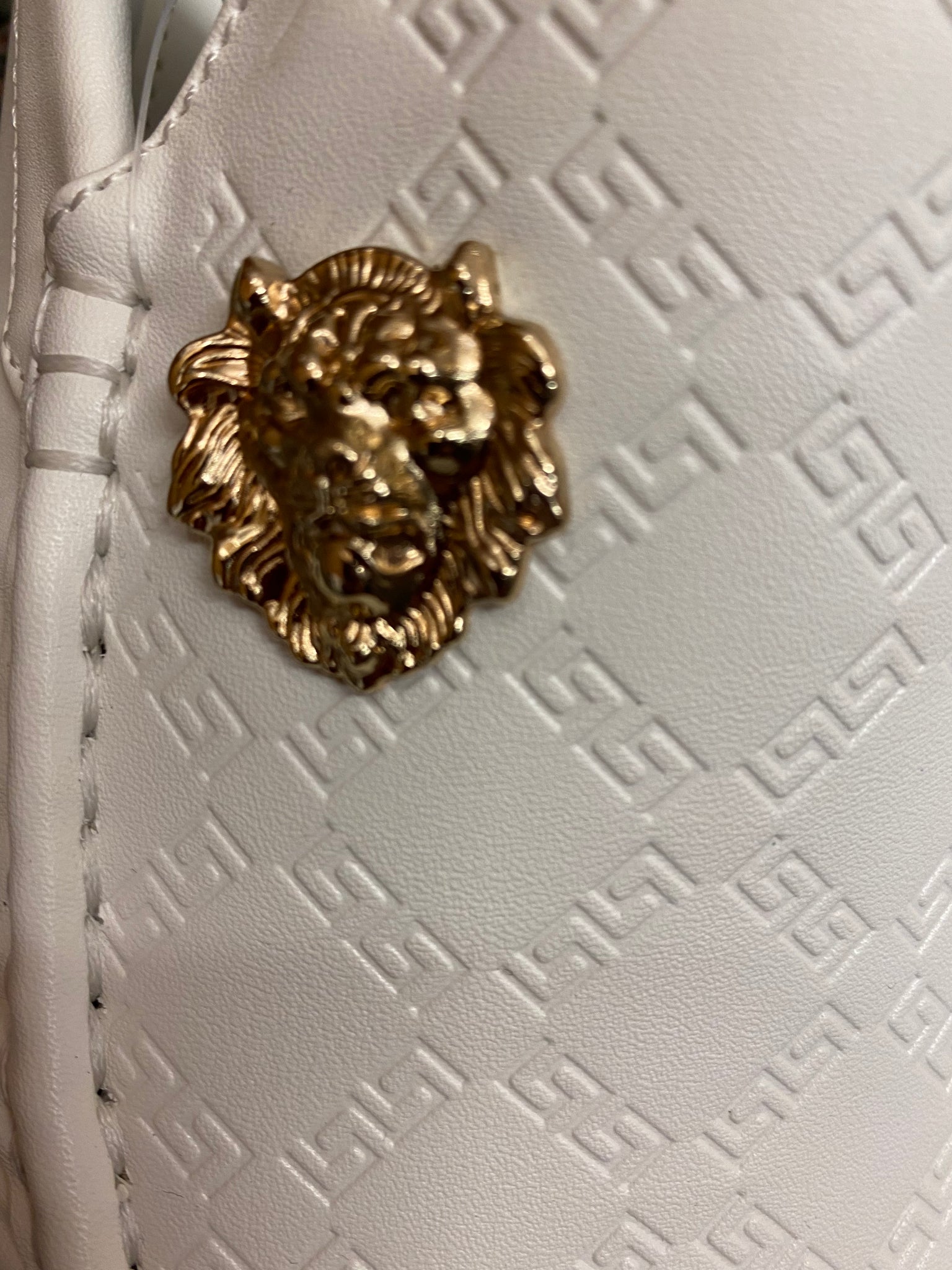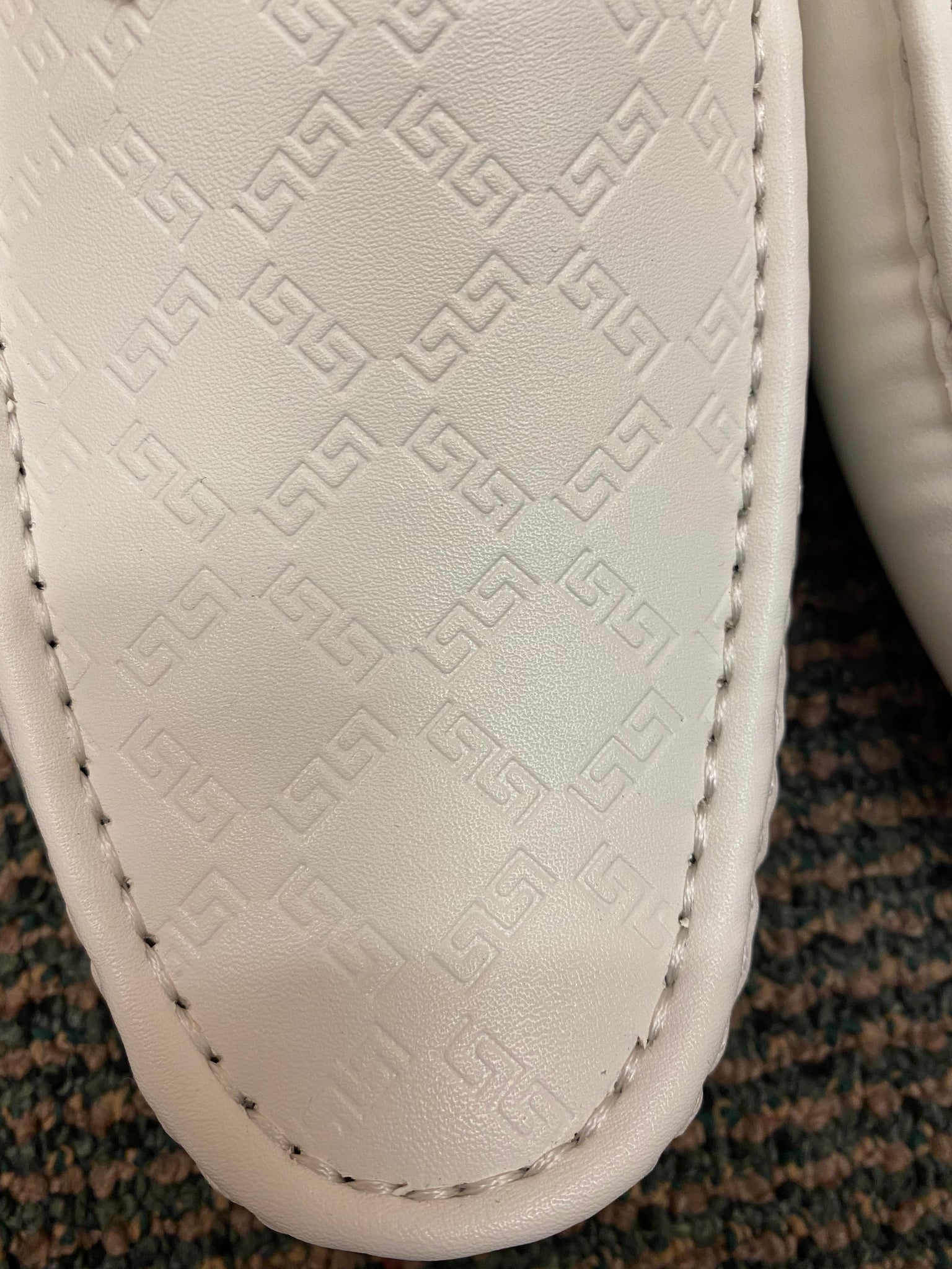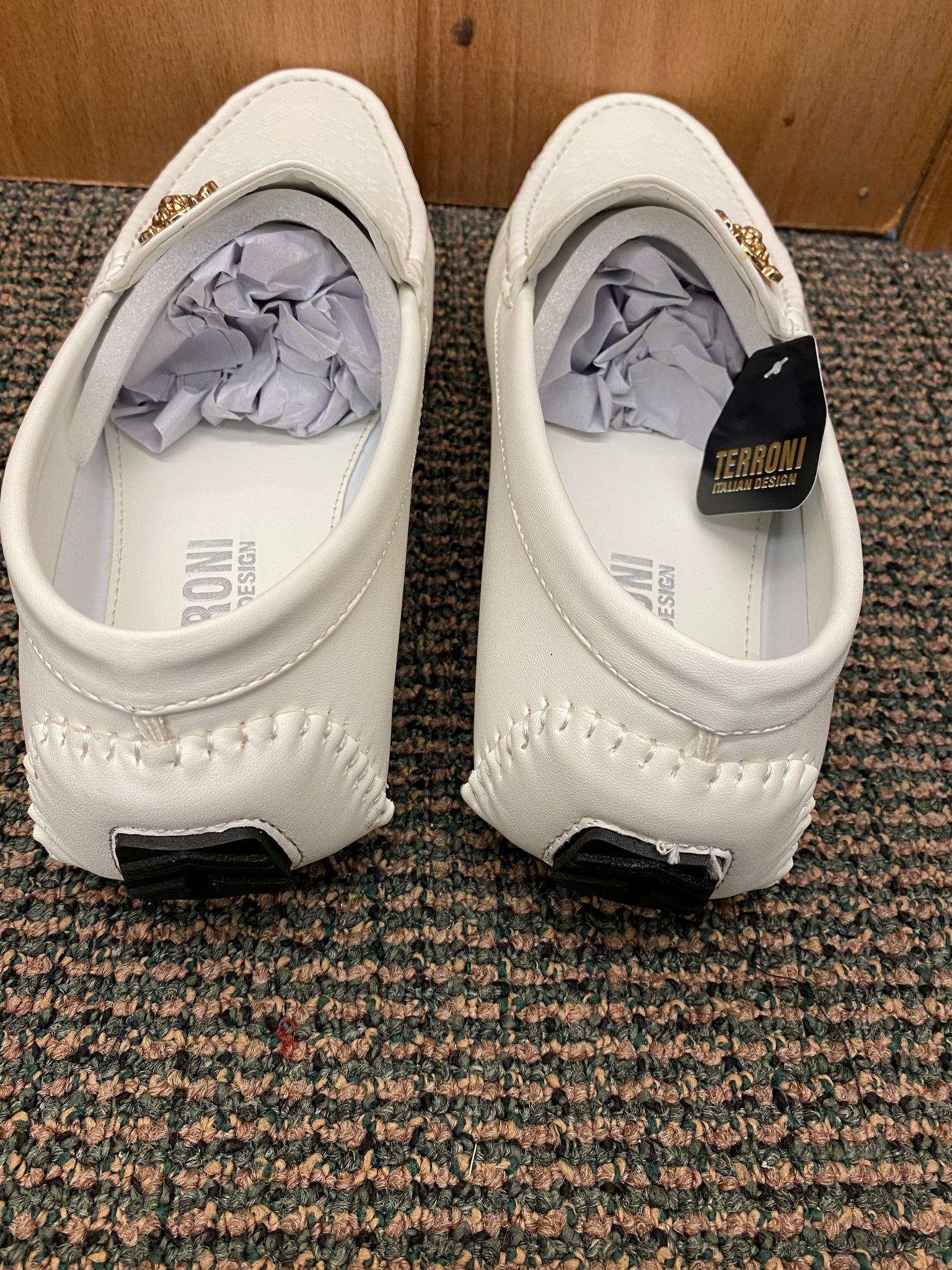 Terroni Italian Design White Men's Slip-on Dress/Driver Shoe with Gold Lionhead