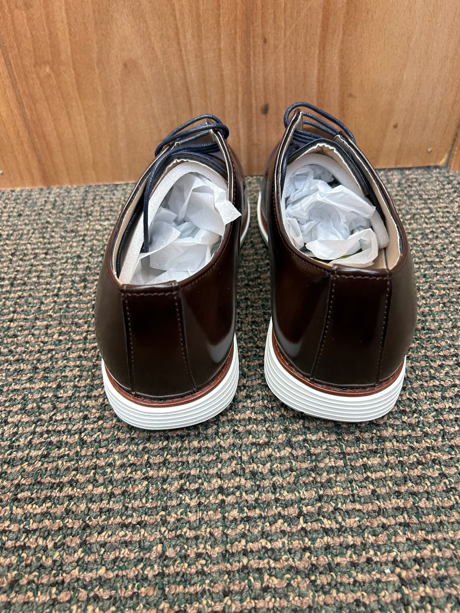 Experience luxury and sophistication with our Terroni men's dress shoe. The lace-up design, white slip resistant sole, and burnished toe provide a stylish statement while the tennis shoe sole offers all-day comfort. Lightweight and perfect for work and travel, elevate your wardrobe with this exclusive and tasteful must have shoe.