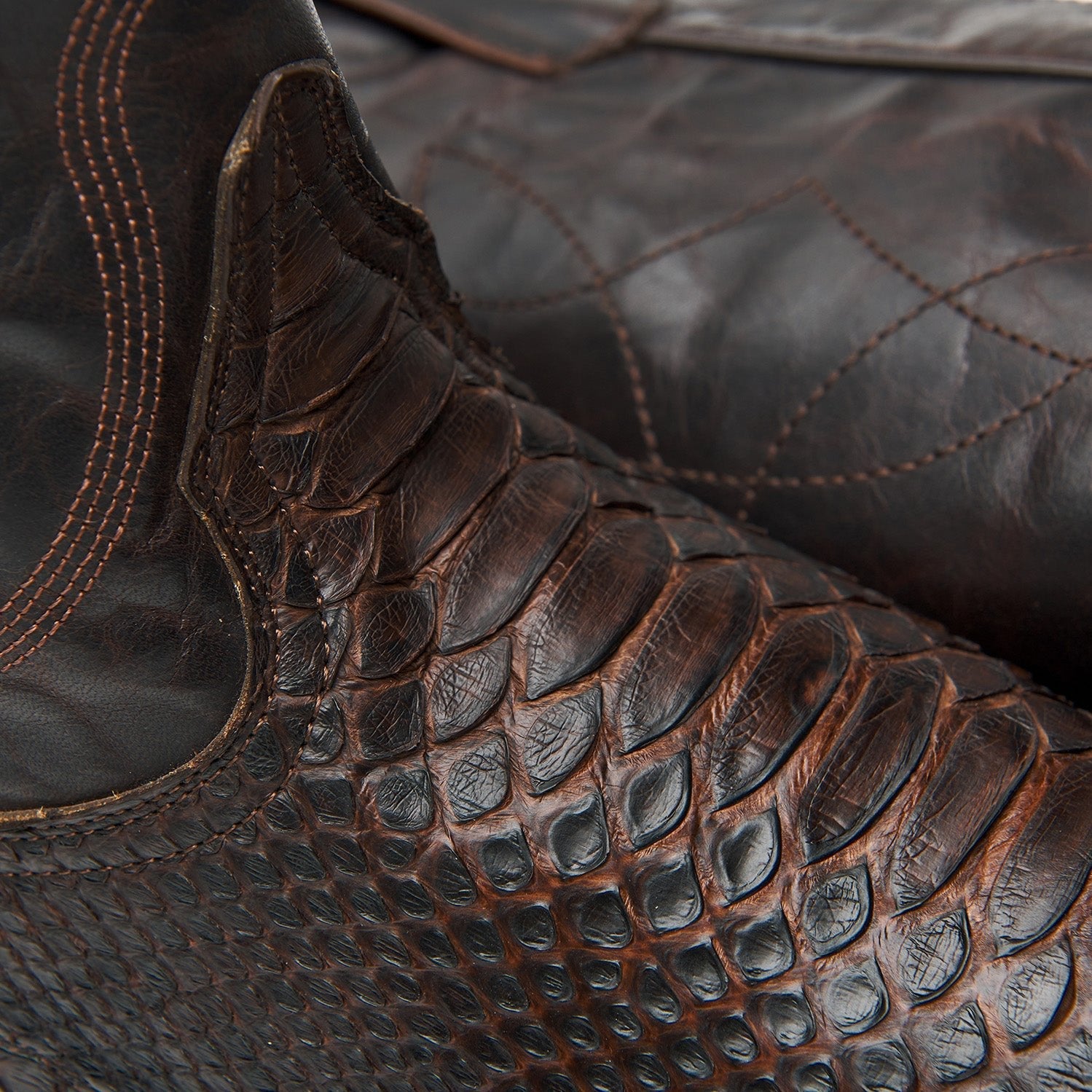 But do python boots make you a badass? Or do badasses gravitate toward python boots? Science has no answer, but it’s true that you’ll usually see python boots worn by the cooly confident, the calmly competent, and the generally badass.