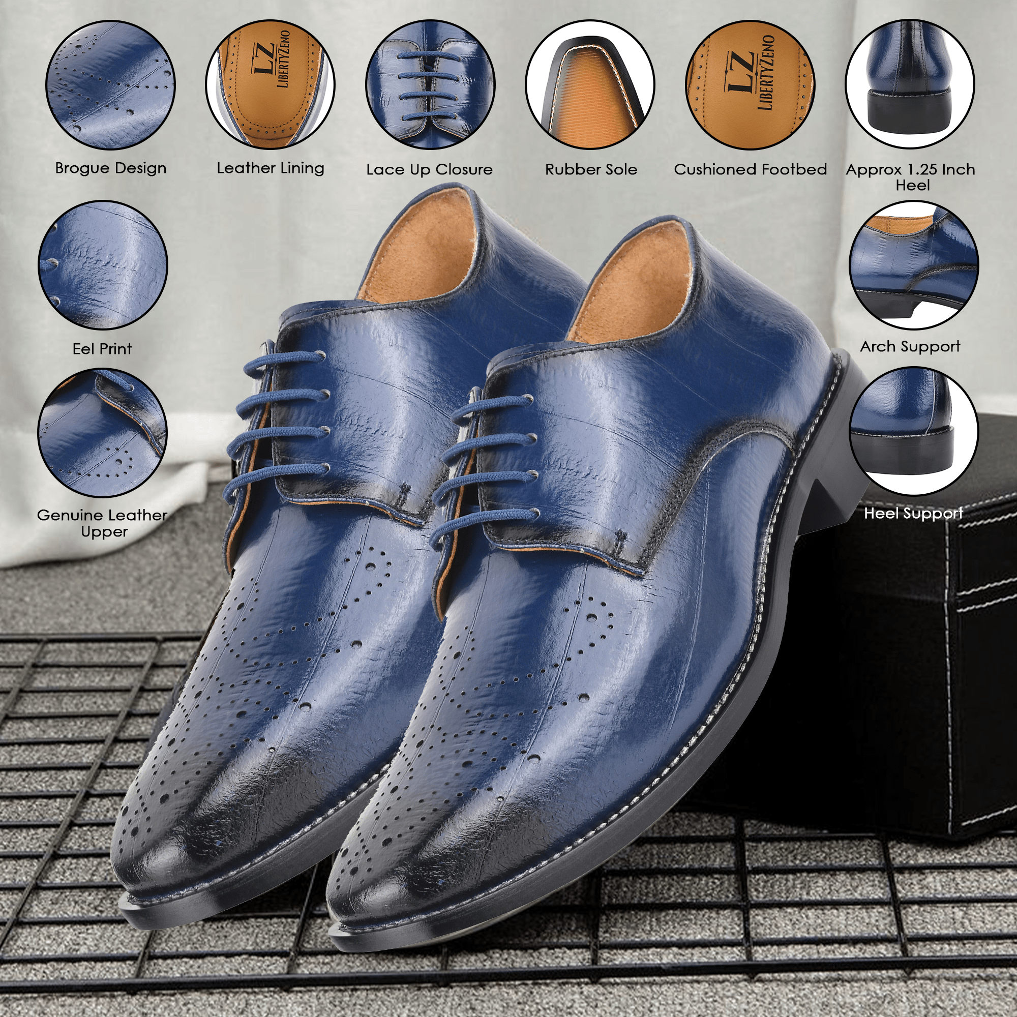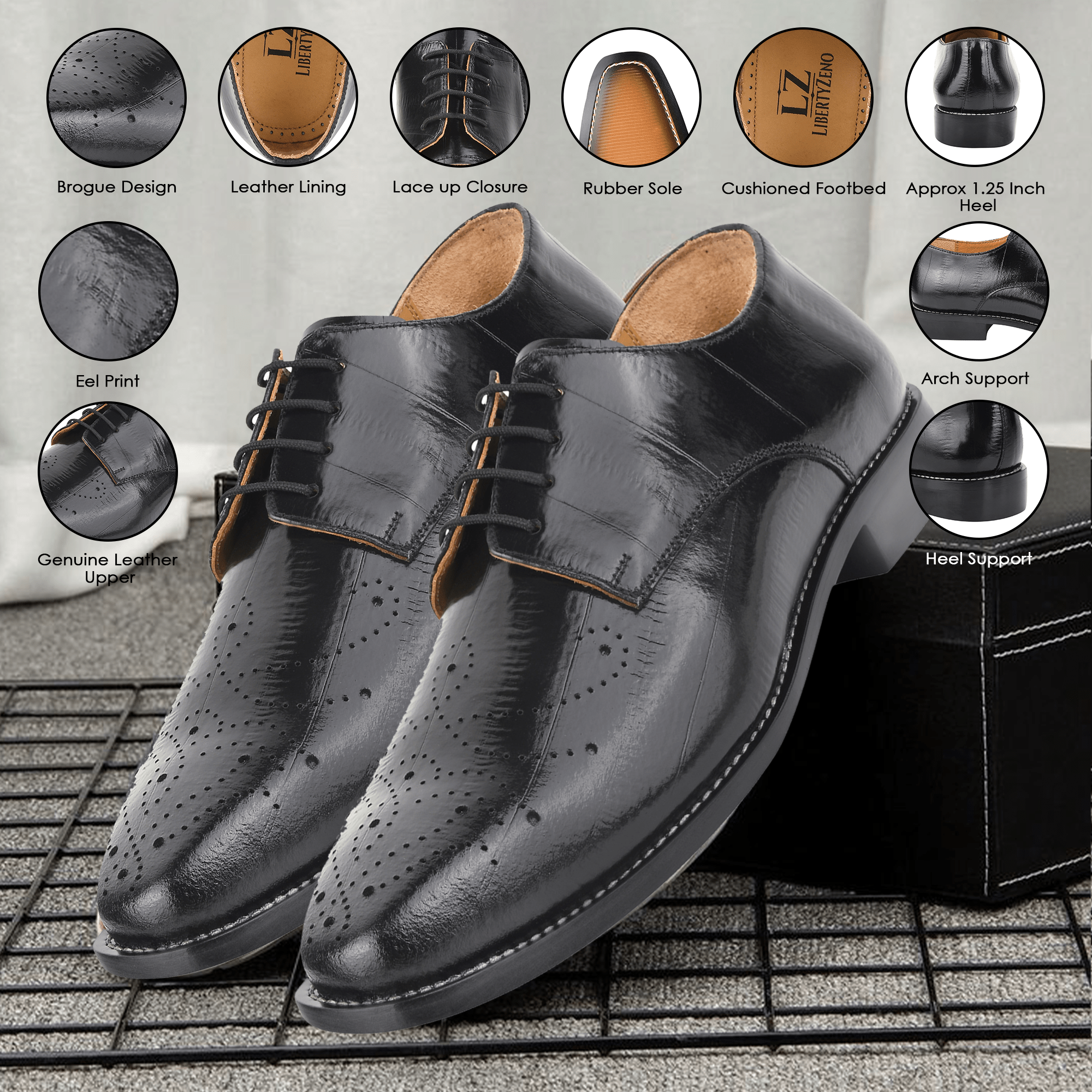 - Get a luxury look with LIBERTYZENO Mens Perforated Burnished Toe EEL Print Lace Up Male Oxford Dress Shoes.