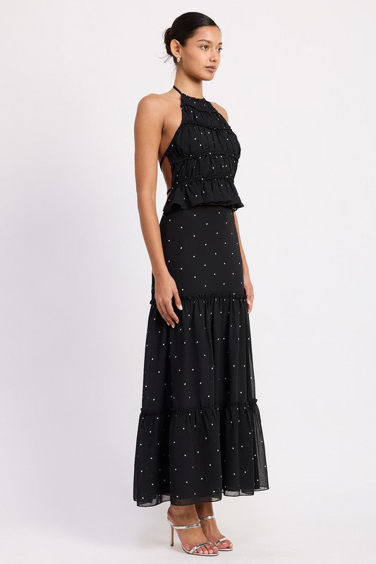 • Load image into Gallery viewer, TIERED RUFFLE MIDI SKIRT