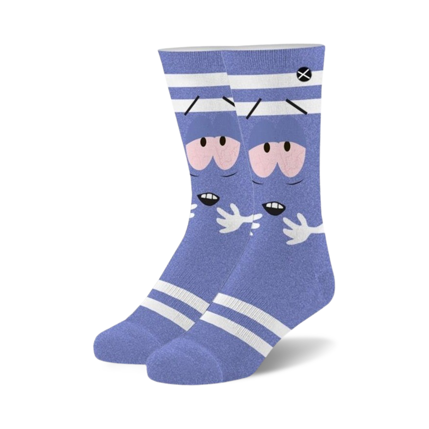 Purple and white socks featuring everyone's favorite towel-loving blue friend Towelie from South Park. These socks are loud, so get ready to turn heads.