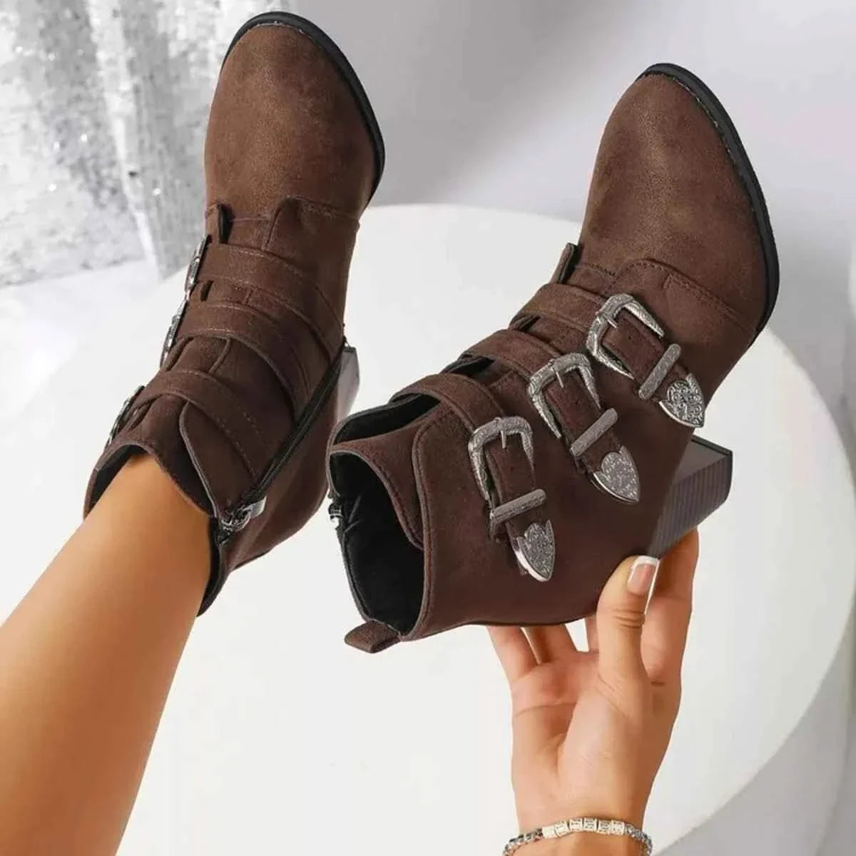 Trendy ankle boots with silver buttons are the perfect addition to your shoe collection. The sleek design and metallic accents add a touch of modern flair to any outfit. Whether you're dressing up for a night out or keeping it casual for a day at the office, these boots will elevate your look with their stylish appeal.