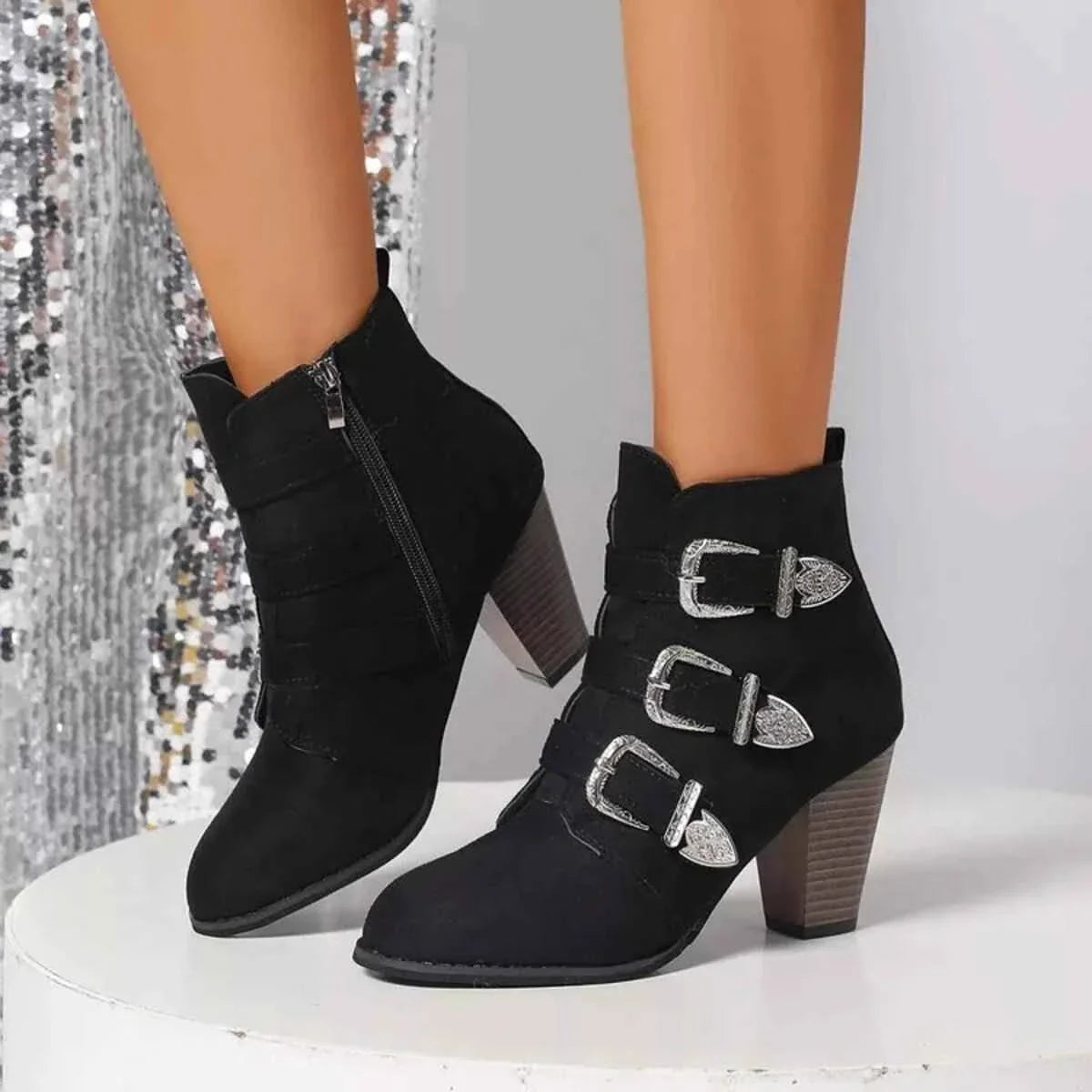Not only do these ankle boots make a bold fashion statement, but they also prioritize comfort. With a cushioned insole and durable construction, you can wear these boots all day without sacrificing style for comfort. The low heel provides added support, making them ideal for walking or standing for extended periods.