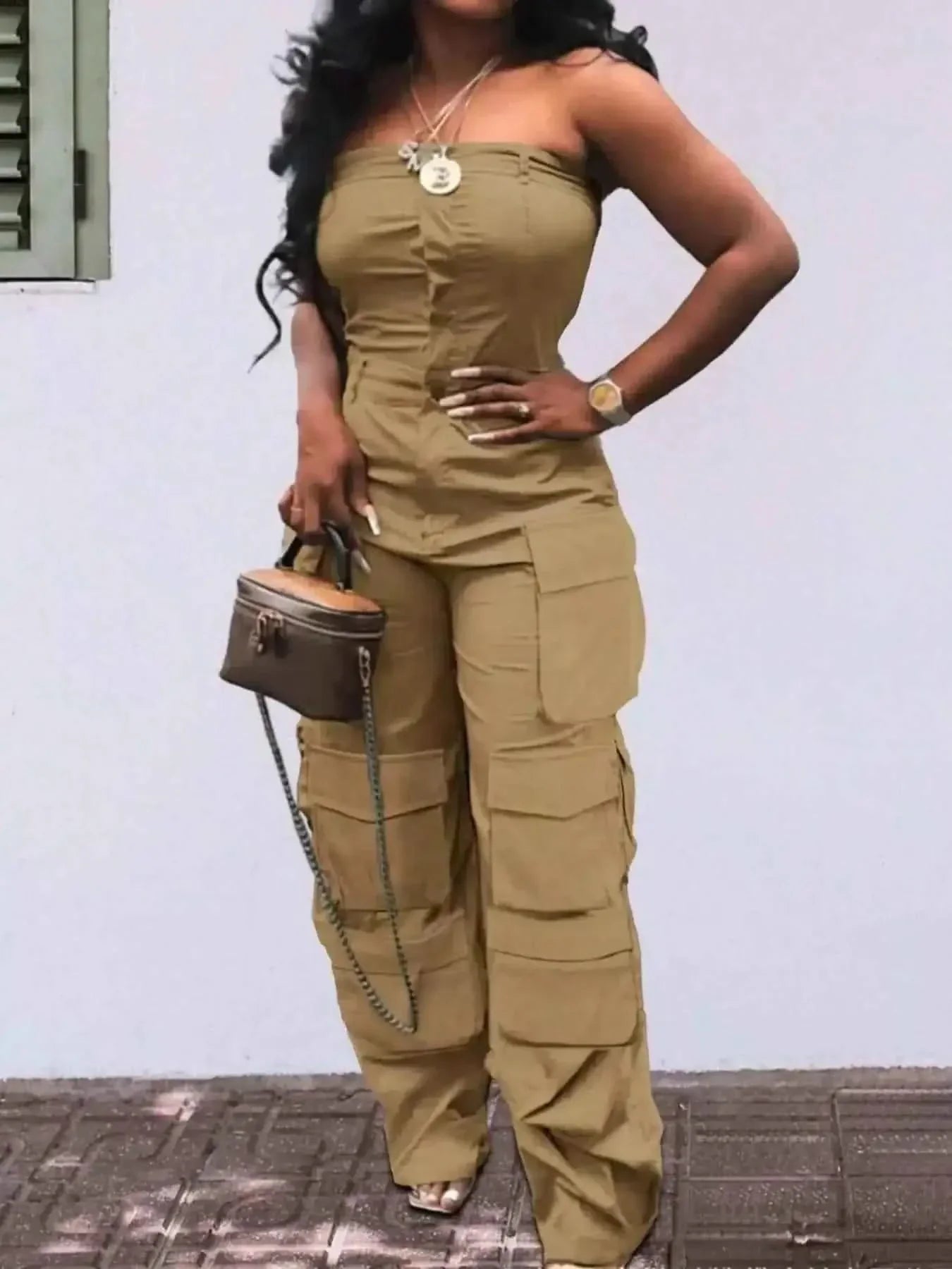 We understand the importance of comfort, which is why this jumpsuit is designed with your comfort in mind. The soft fabric feels gentle against the skin, making it ideal for all-day wear. The adjustable waist tie allows you to customize the fit to your liking, while the wide legs add a laid-back vibe. Say goodbye to uncomfortable outfits and hello to effortless style with our Tube Snap Down Cargo Jumpsuit.