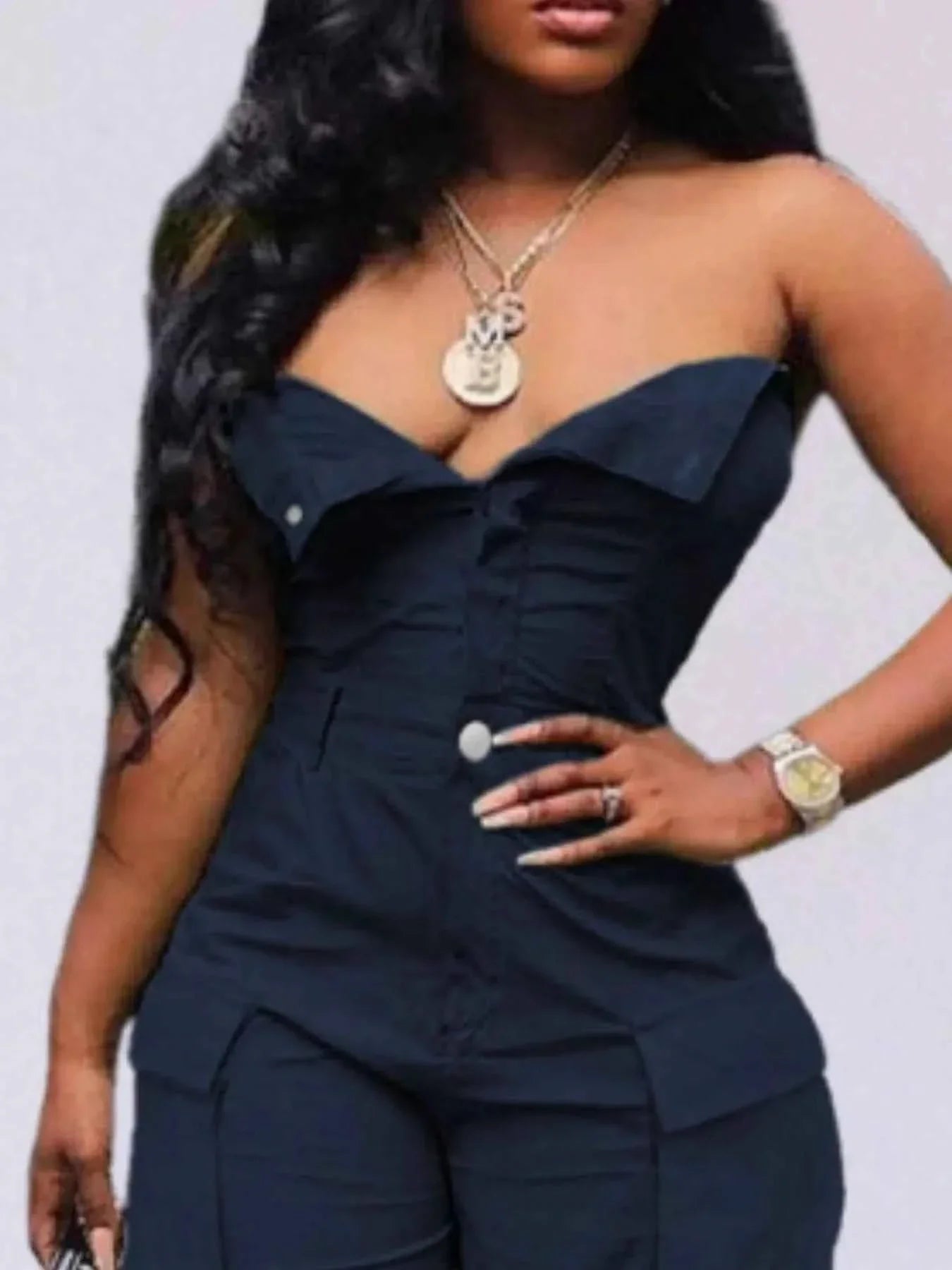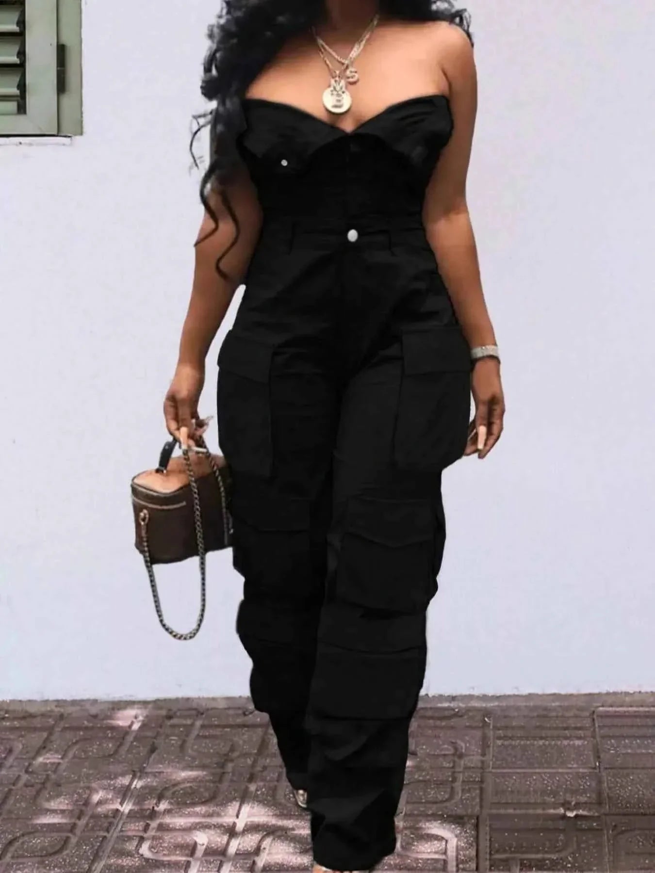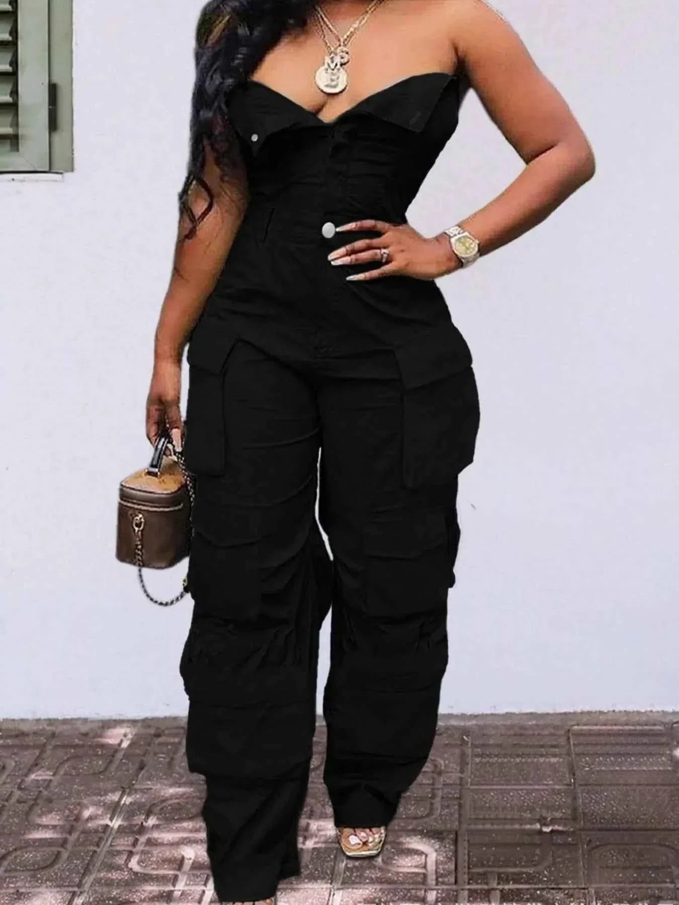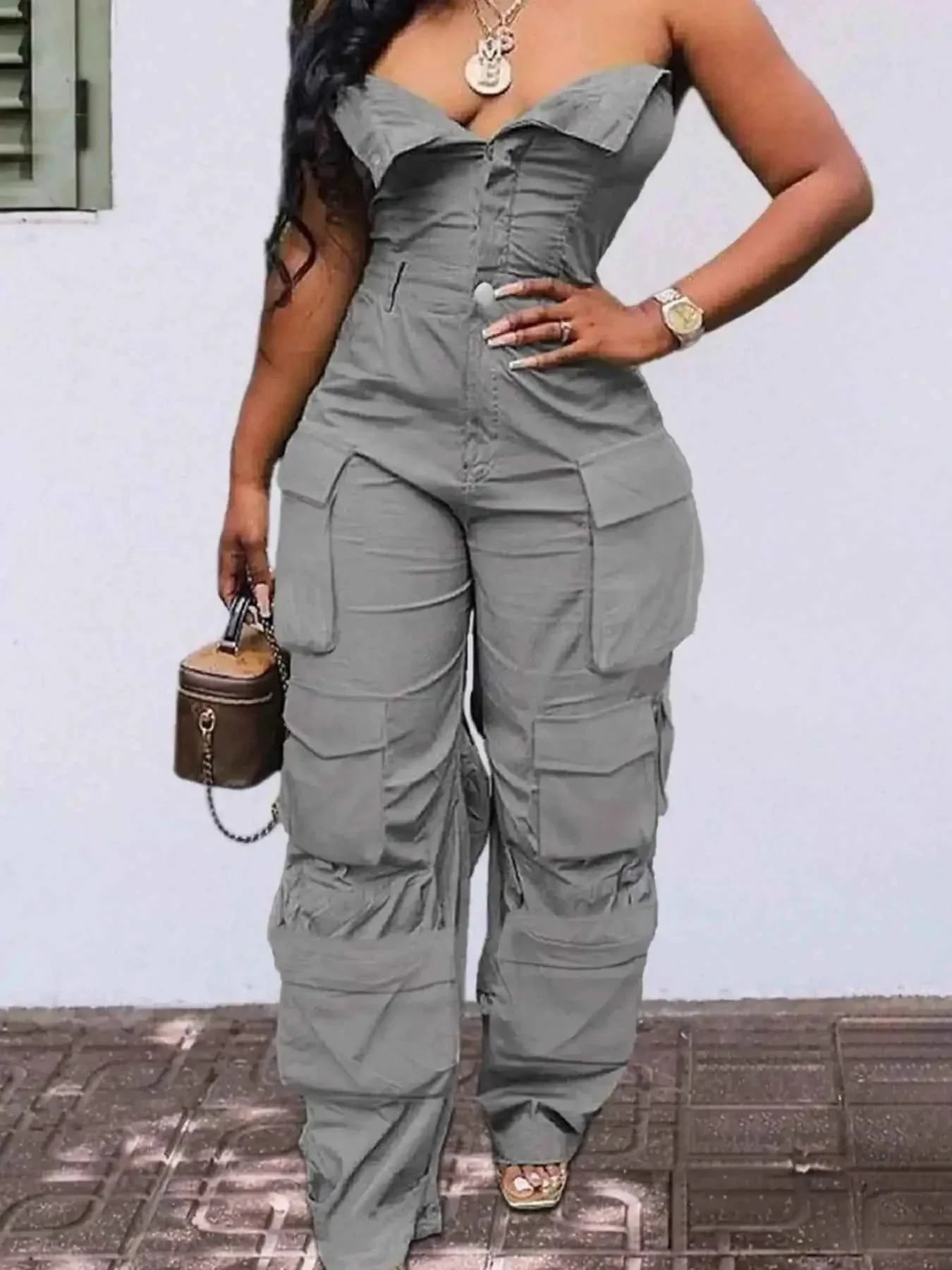 Introducing our Tube Snap Down Cargo Jumpsuit, the perfect blend of comfort and style. Made from high-quality materials, this jumpsuit is designed for the fashion-forward individual who wants to make a statement. The cargo pockets add a touch of utility chic, while the snap-down detailing gives it a modern edge. Whether you're running errands or hitting the town, this jumpsuit will have you looking effortlessly cool.