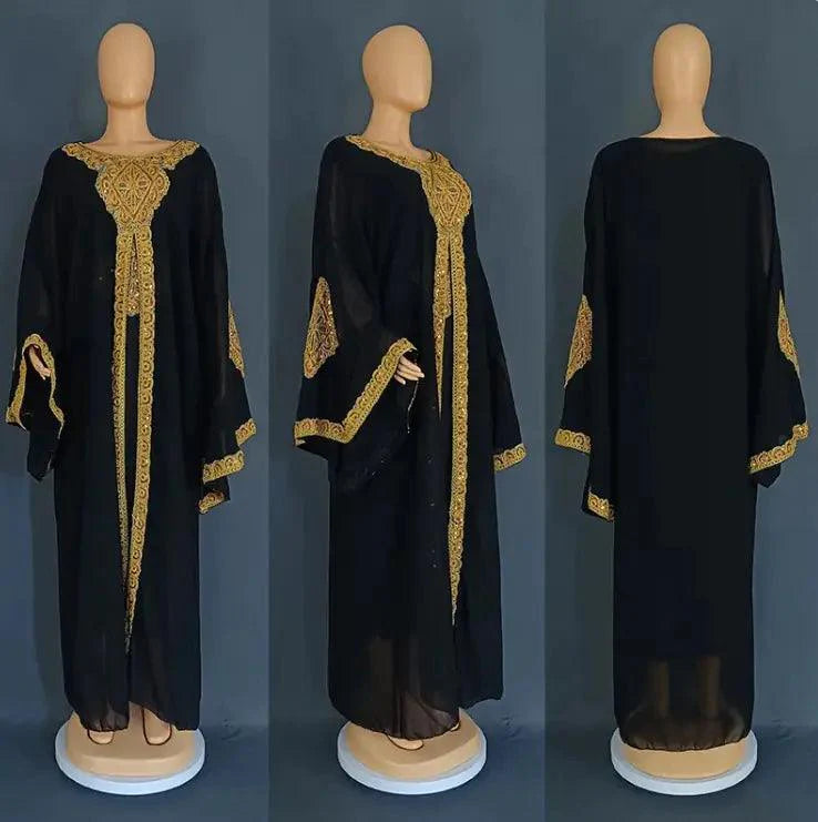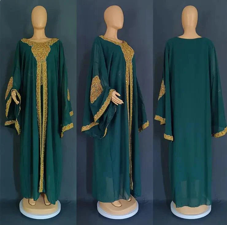 Two-Piece Gold Embroidered Kaftan Abaya Dress Set