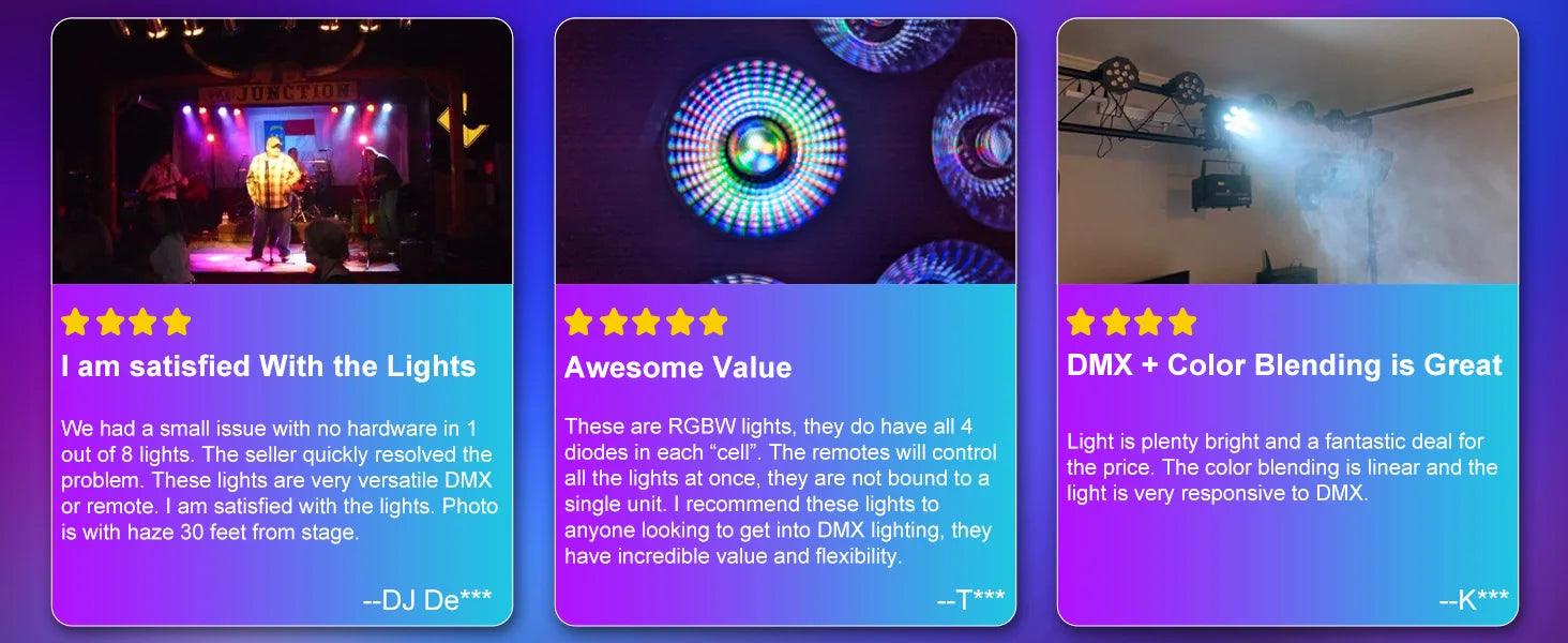 High Power Output: 80W for bright, dynamic lighting that stands out. Versatile Lighting Effects: RGBW color mixing for stunning displays tailored to your event. Easy Installation: Quick setup with self-contained units. Durable and Reliable: Built with high-quality materials and compliant with CE, FCC, and RoHS certifications. Remote Control: Operate from a distance of 5-10 meters for ultimate flexibility.