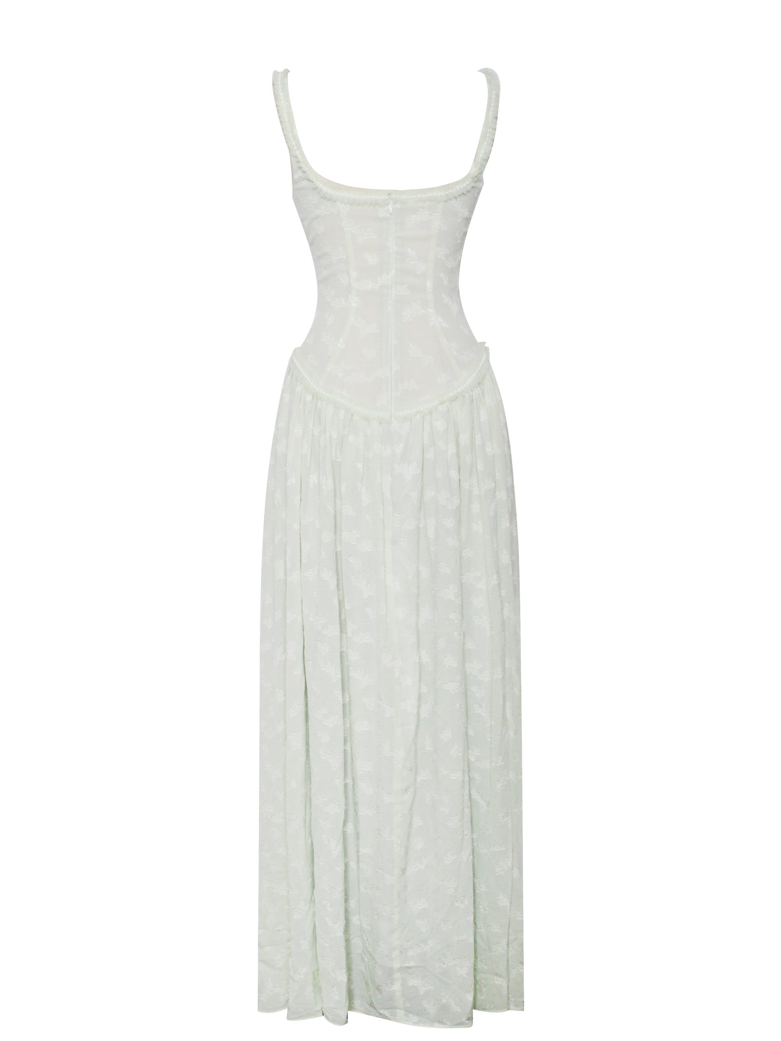 Meet the Ulissa dress, a fusion of elegance and modern sophistication. Fully lined for ultimate comfort, this jacquard textured maxi dress boasts a striking square neckline embellished with pearl decorations. The drop waist seamlessly transitions into a high-slit skirt, lending a dramatic flair to the silhouette. Delicate pleated mesh trim adds a touch of femininity, while an invisible zipper at the center back ensures a flawless finish. Suitable for any formal occasion, this dress effortlessly blends timeless charm with contemporary style, making it a standout piece in any wardrobe.