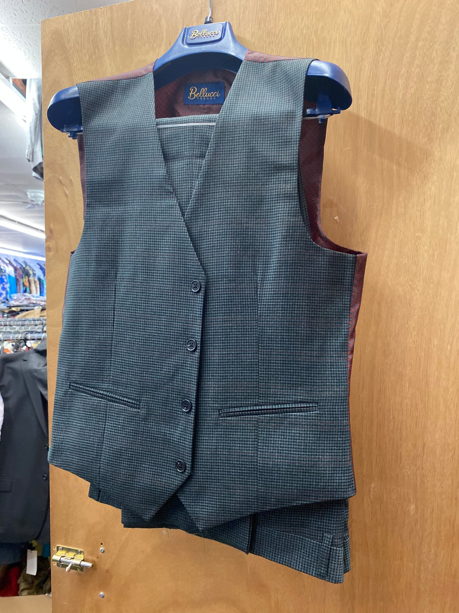 Bellucci Trends Valentino B842 Green Checkered 3-Piece Slim Fit Suit